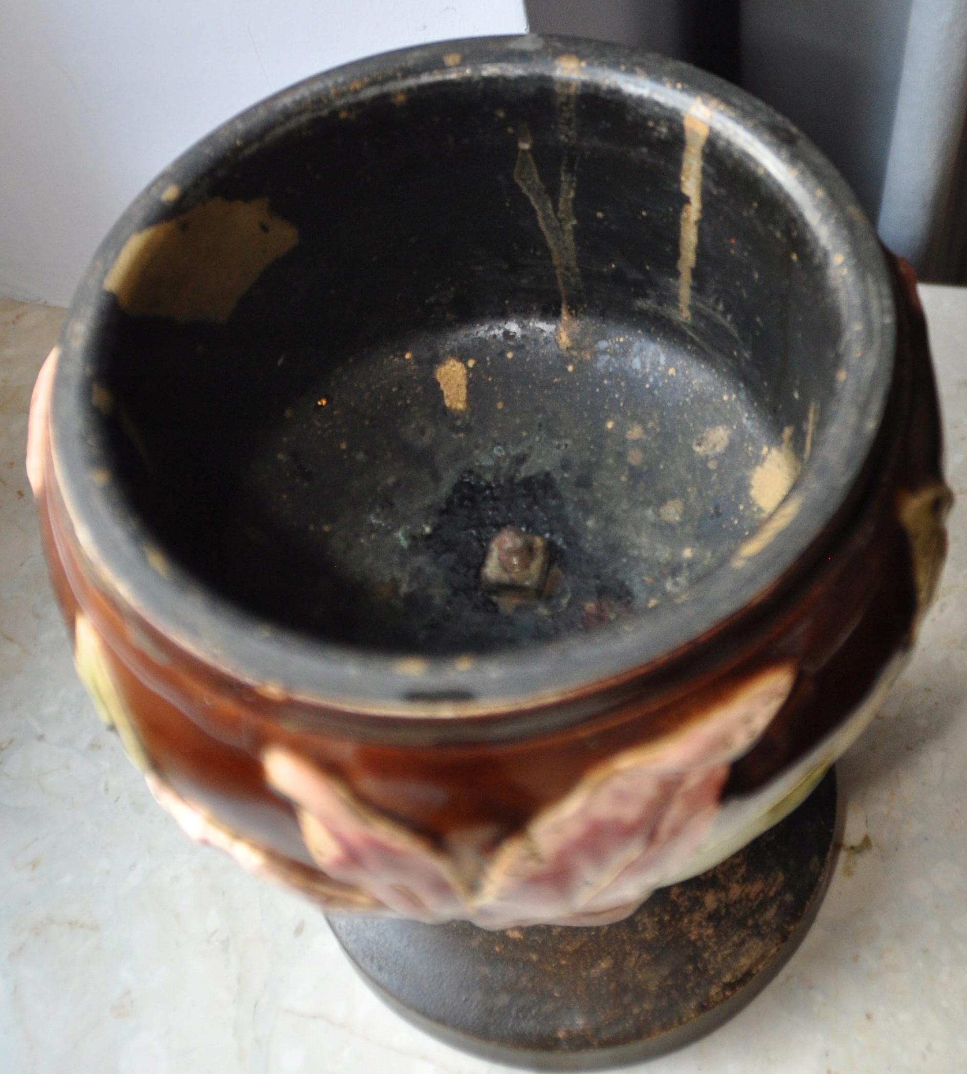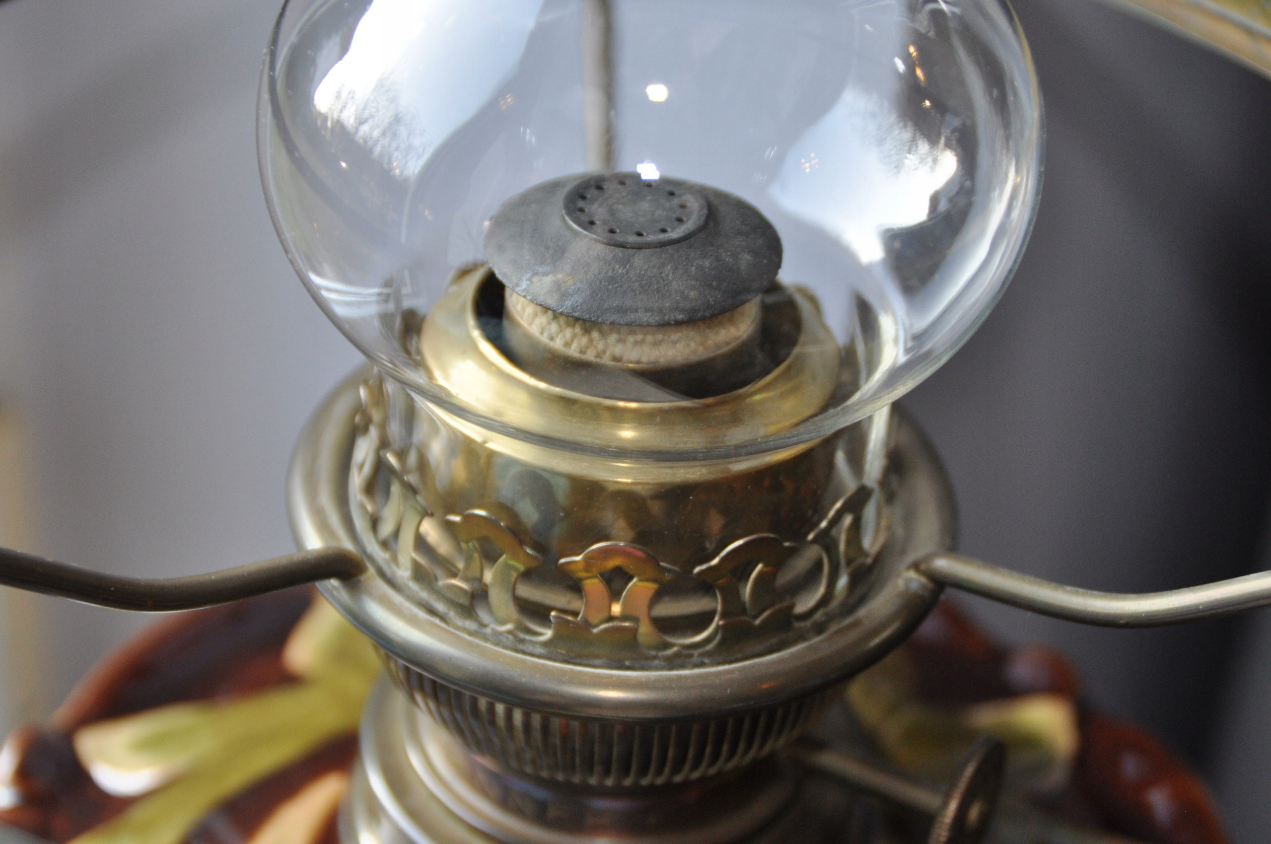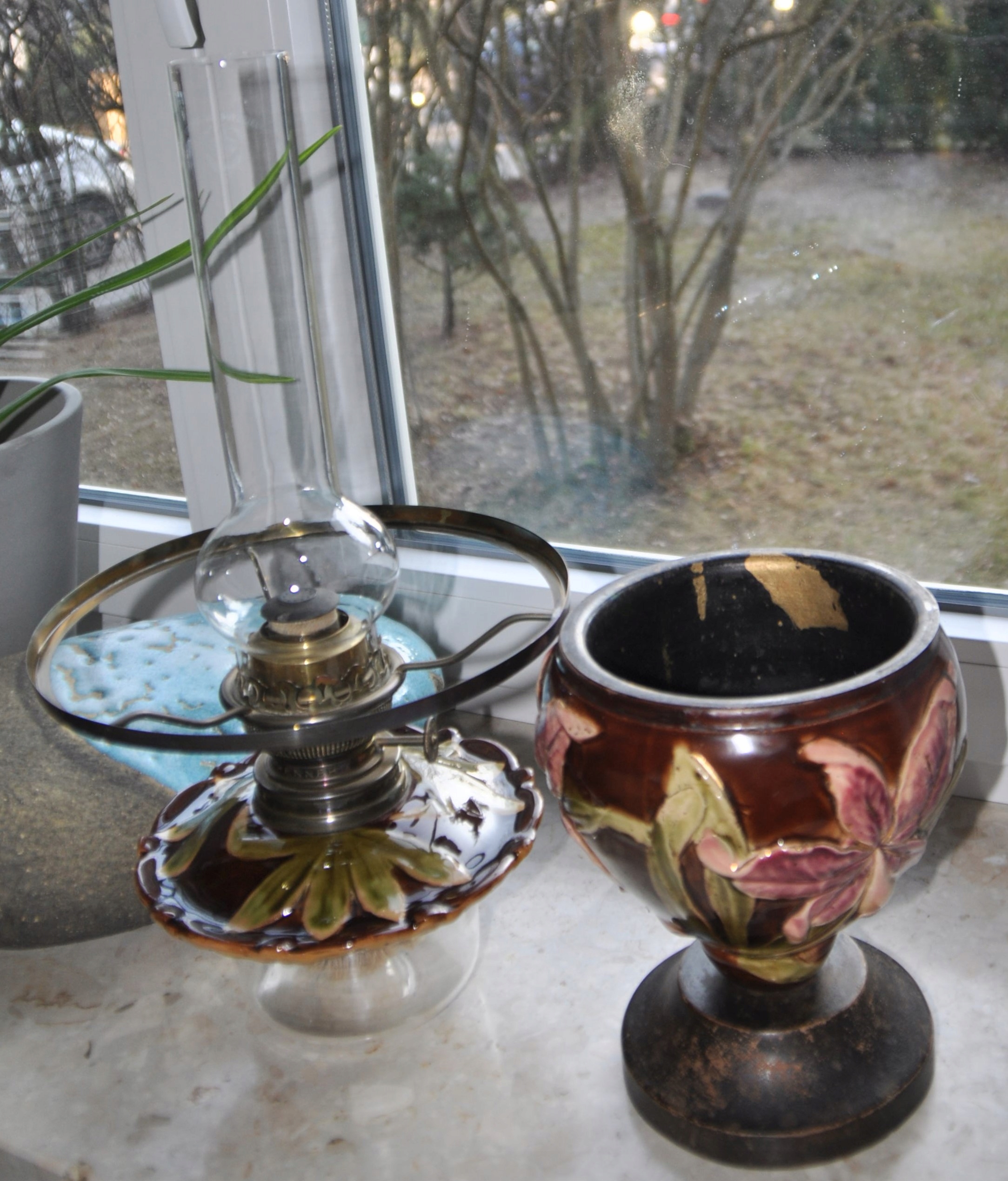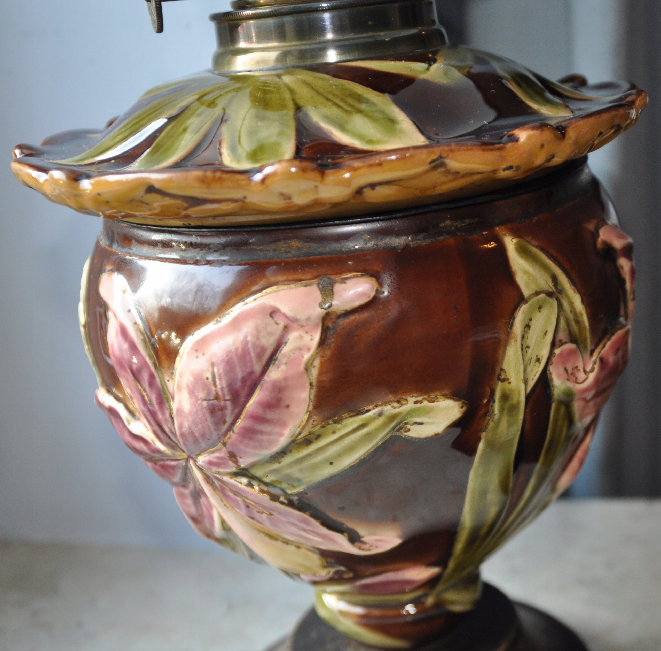 Старая керосиновая лампа Маджолика Матадор? Высота 59 см.