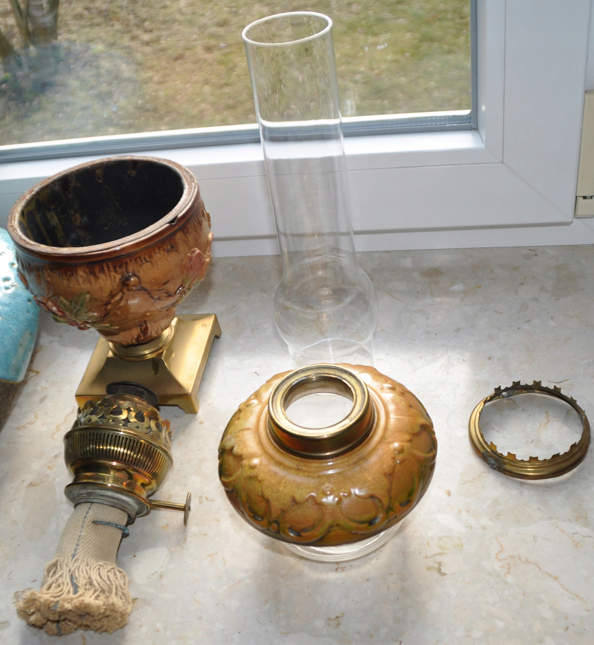Старая керосиновая лампа Маджолика Матадор Высота 51 см.