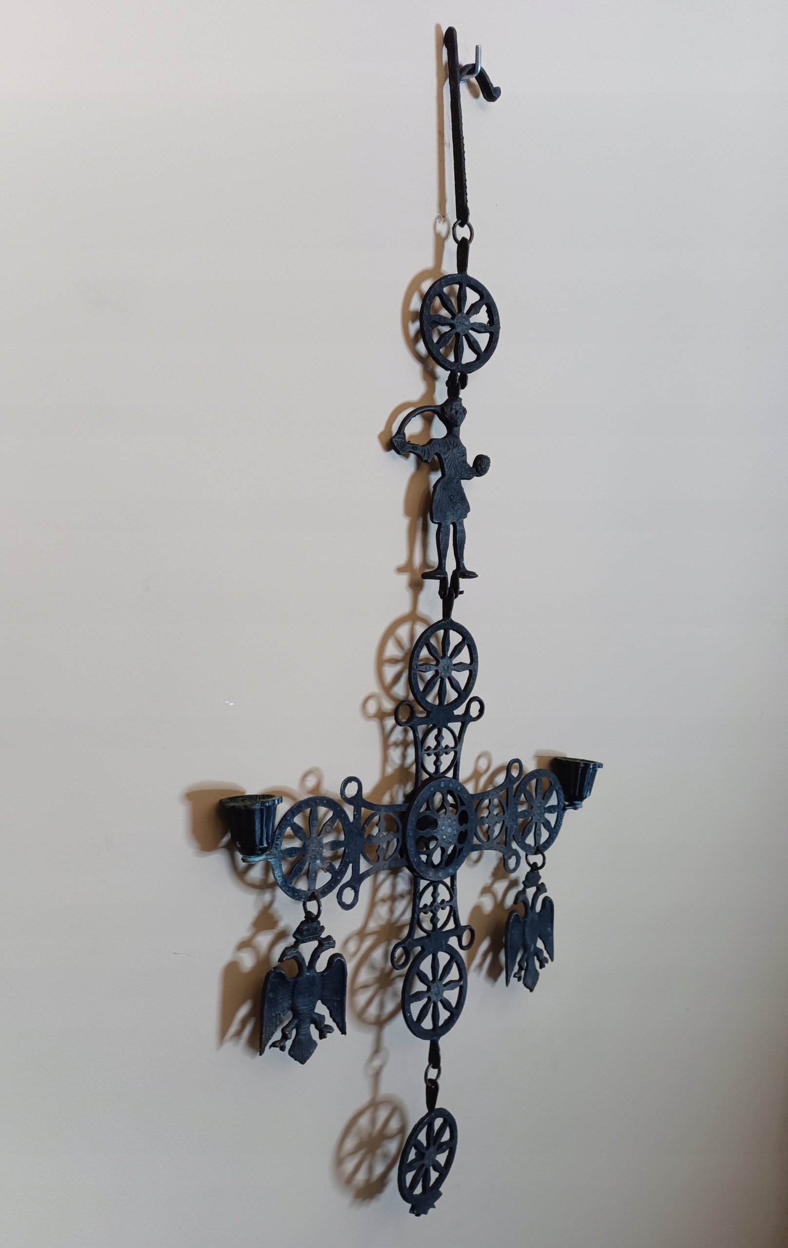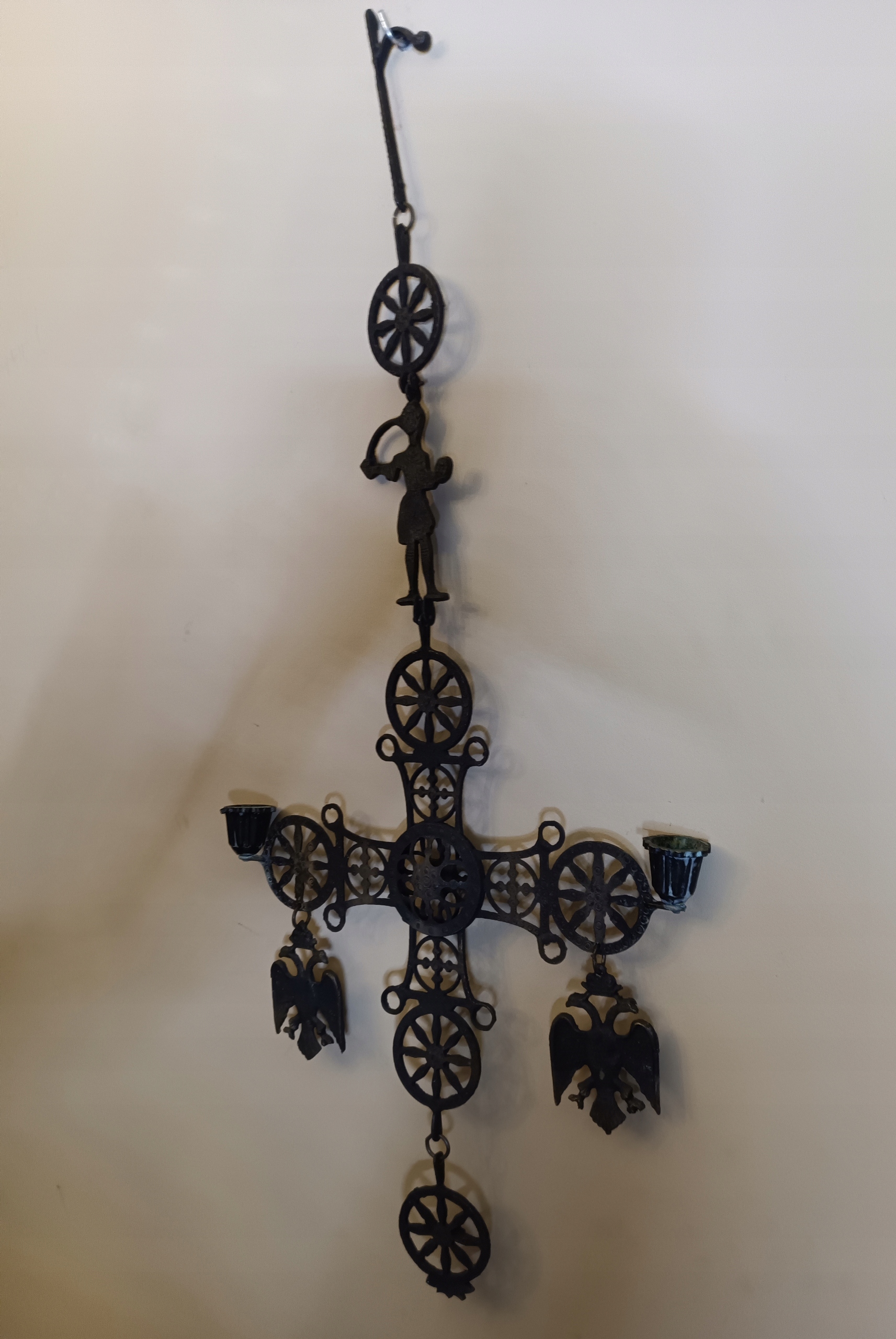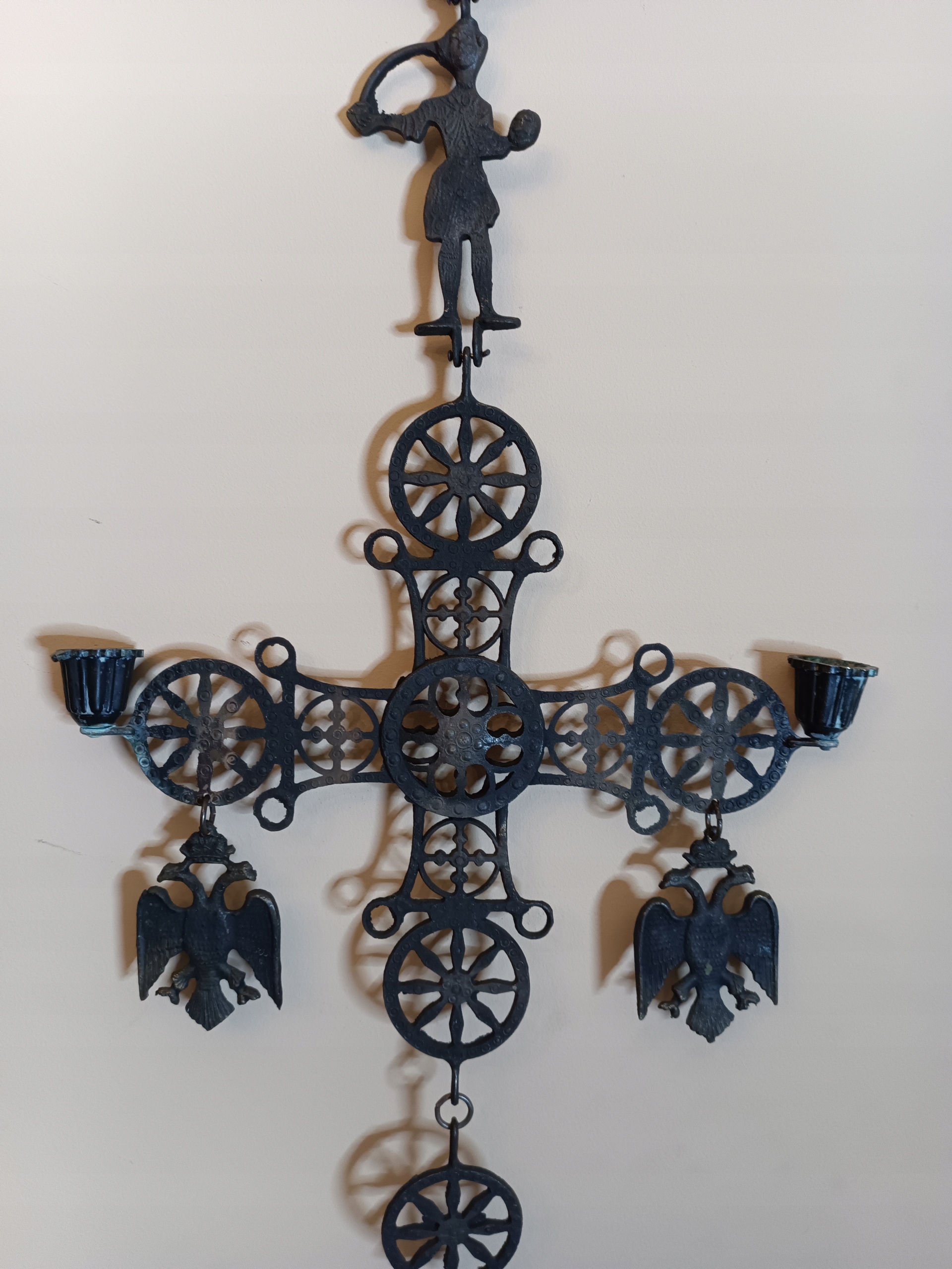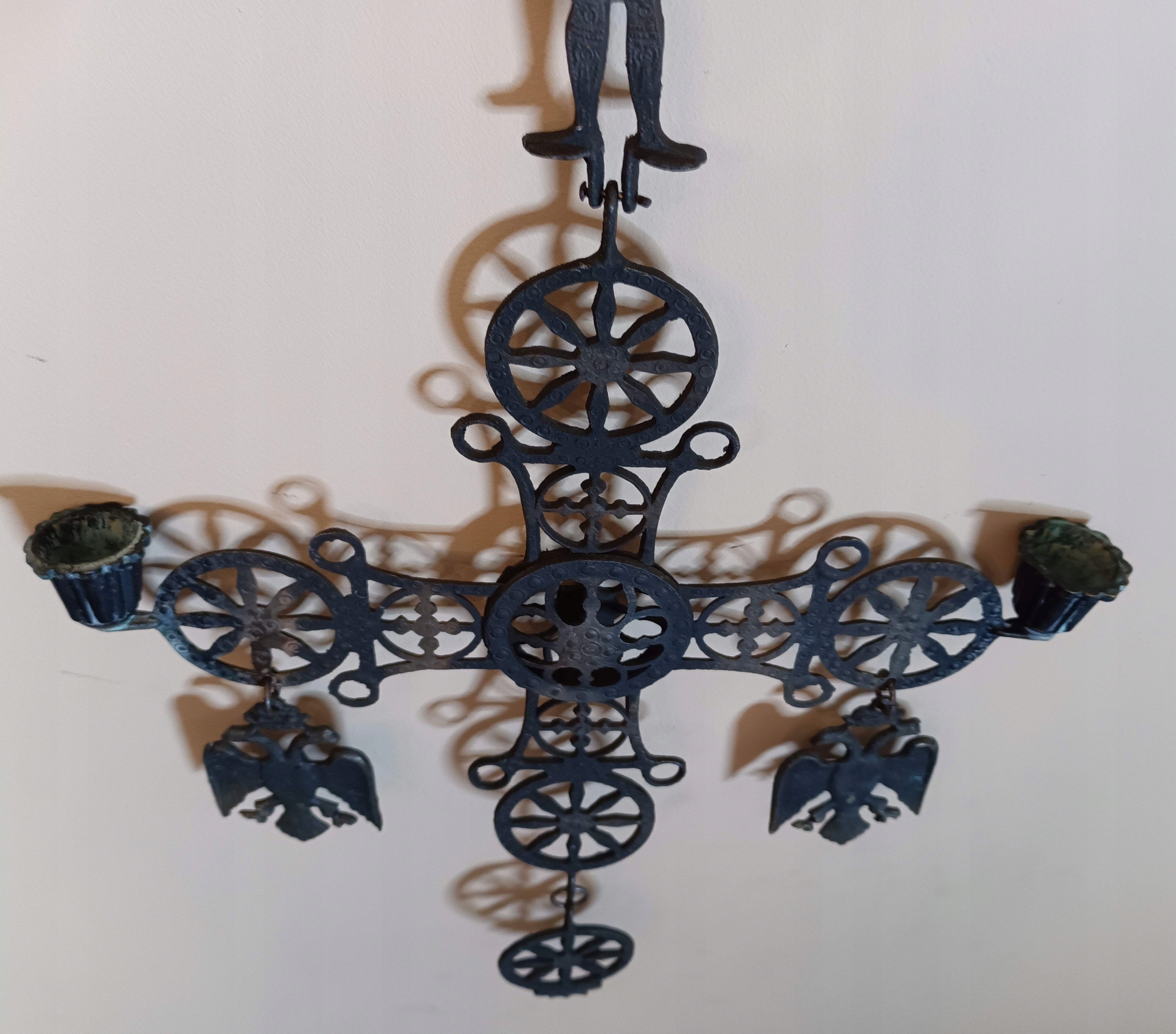 Старый латунный византийский крест с 2 орлами, висящими подсвечниками - большой 72 см