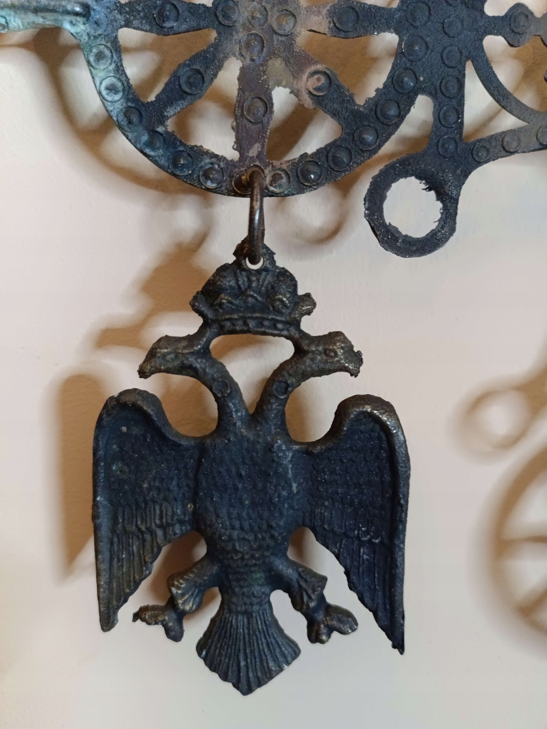 медный византийский крест с 2 орлами, висящими винатге, держатель свечи - большой 72 см,