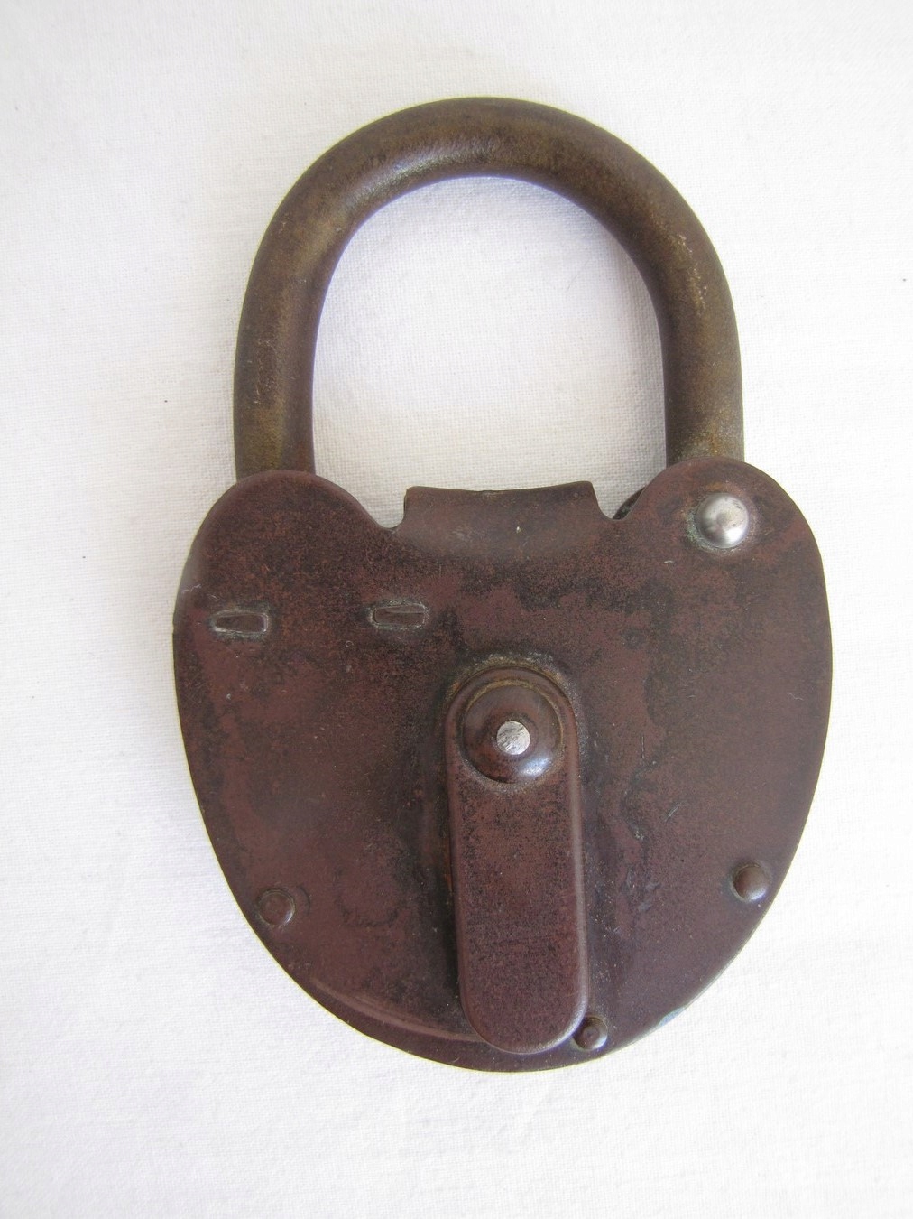 Замок видим на картинках, хорошее состояние. Нет ключа, сломанные печи (в конце лука). Независимый наплеск. Всего 11,5 см, ширина максимум 7,3 см, высота банки 6,5 см, консервированная толщина 1,5 см.
