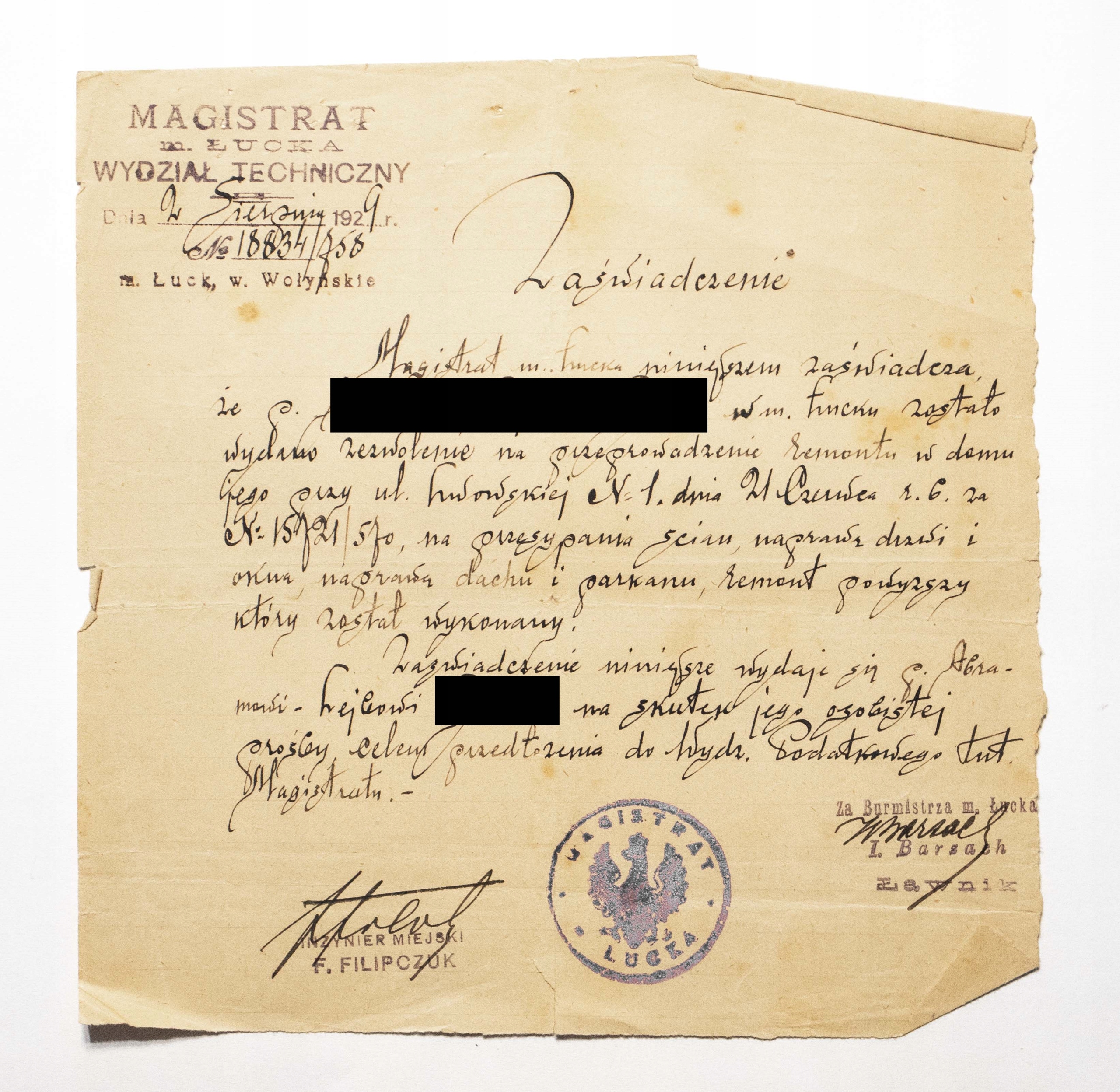 Старая буква - Сертификат на ремонт дома, łuck 1929