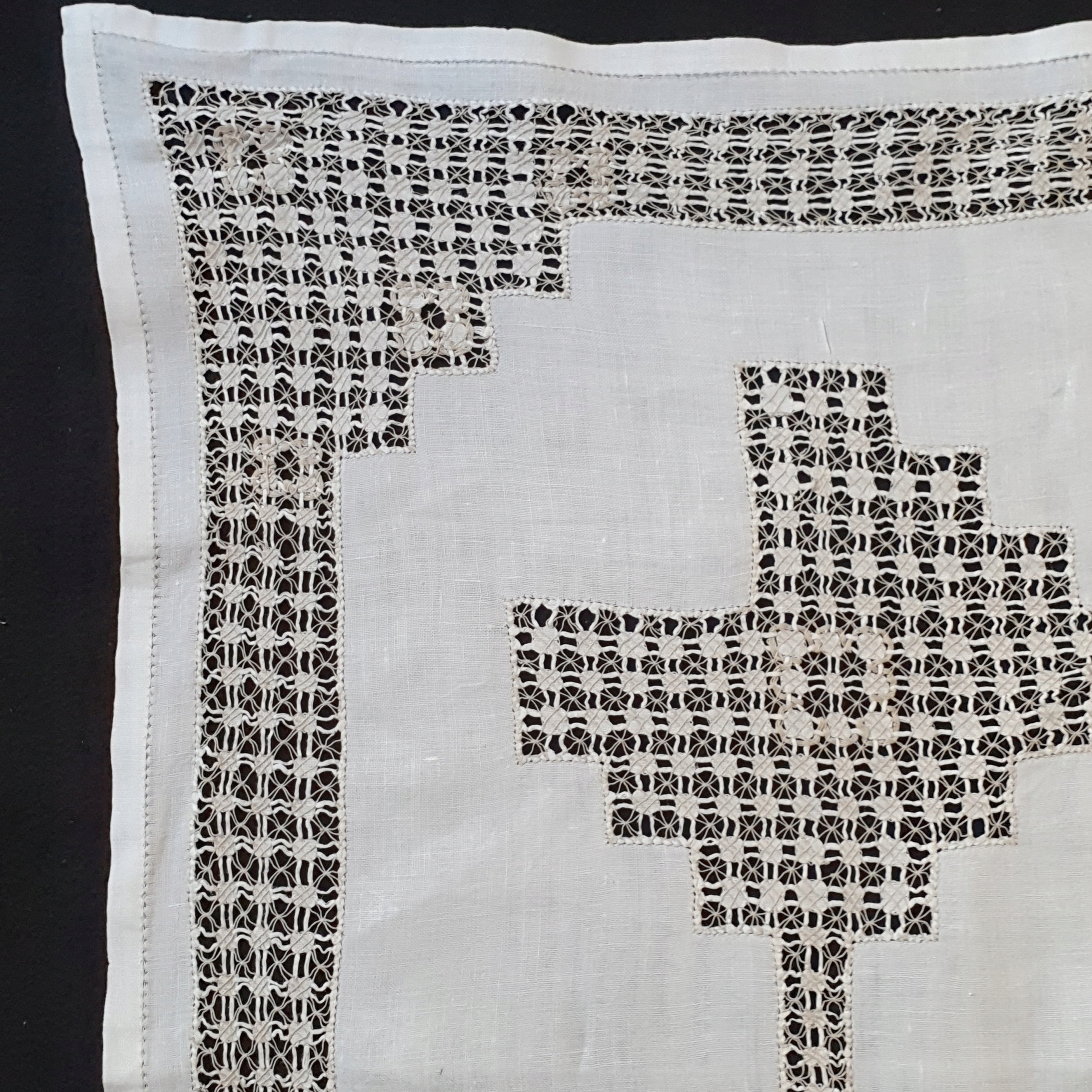 СТАРЫЙ БЕЛЫЙ СКАТЕРЬ ИЗ СТАРОГО ЛЬНА РУЧНОЙ РАБОТЫ.