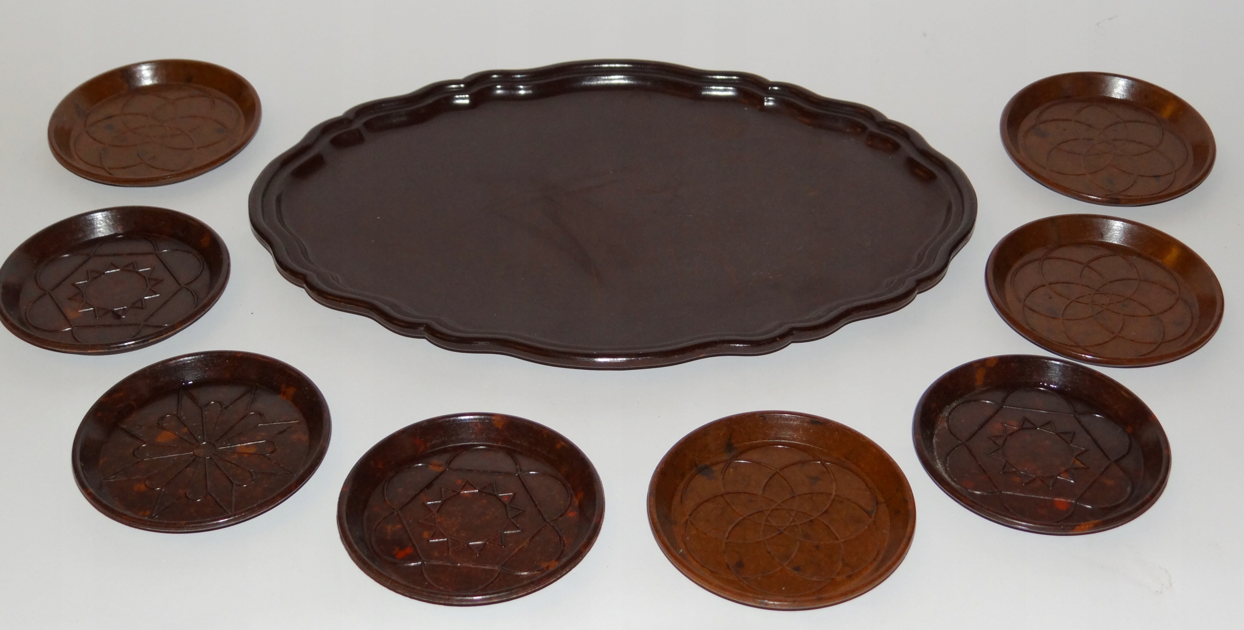 Предмет ПРОДАЖИ — КОМПЛЕКТ ИЗ БАКЕЛИТОВОГО ПОДНОСА И ВОСЕМЬ ПОДСТАВОК