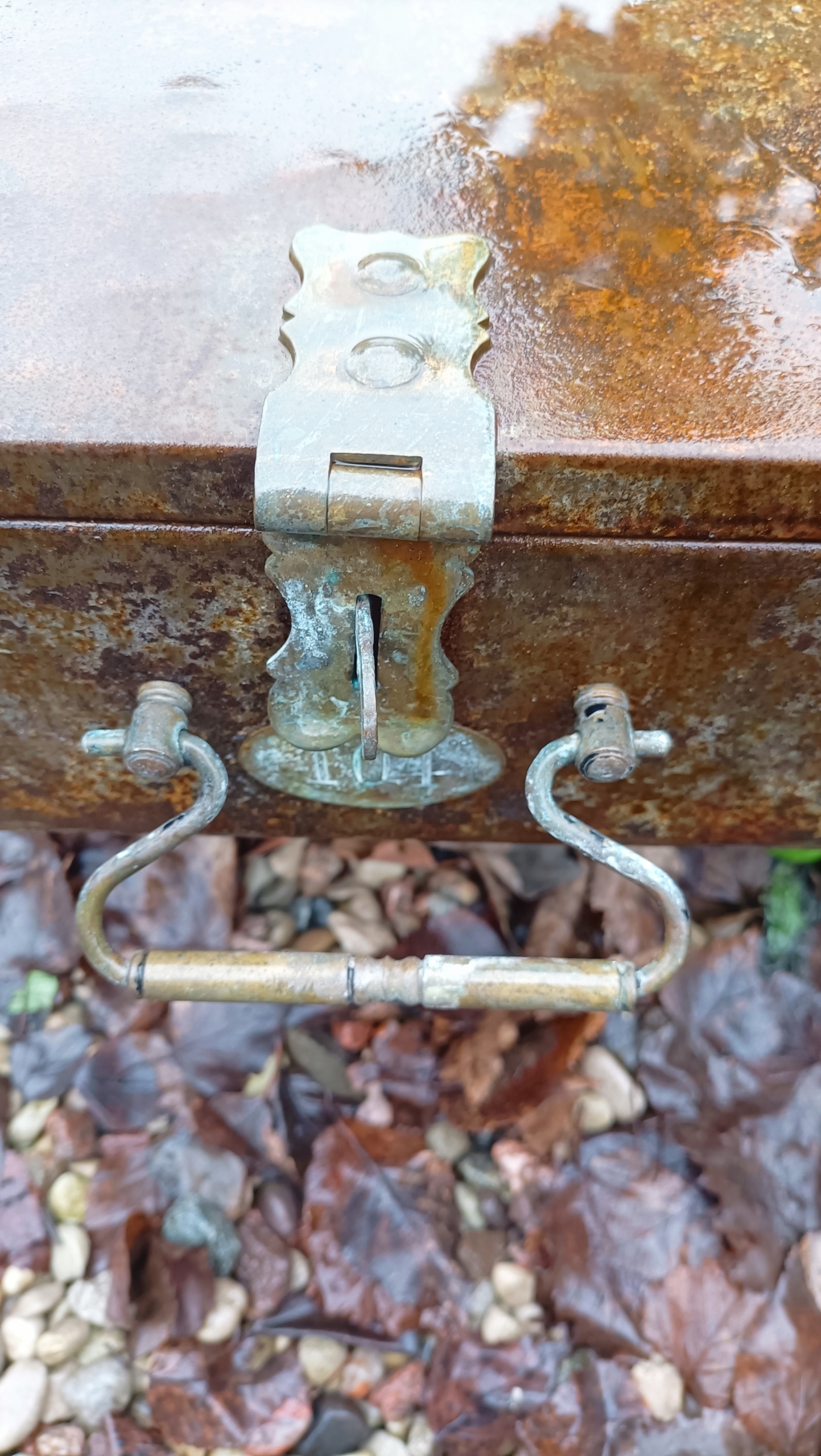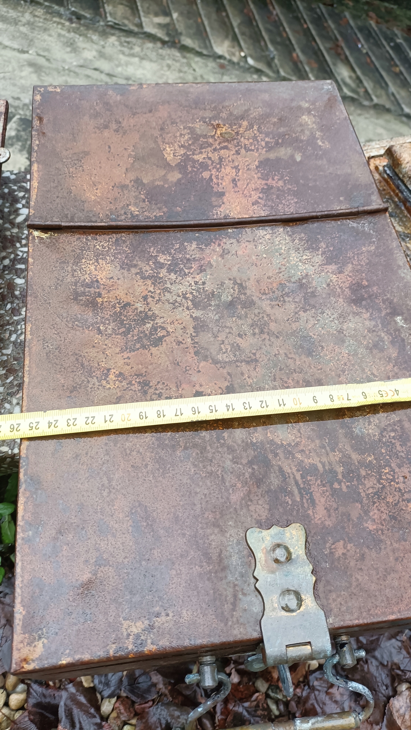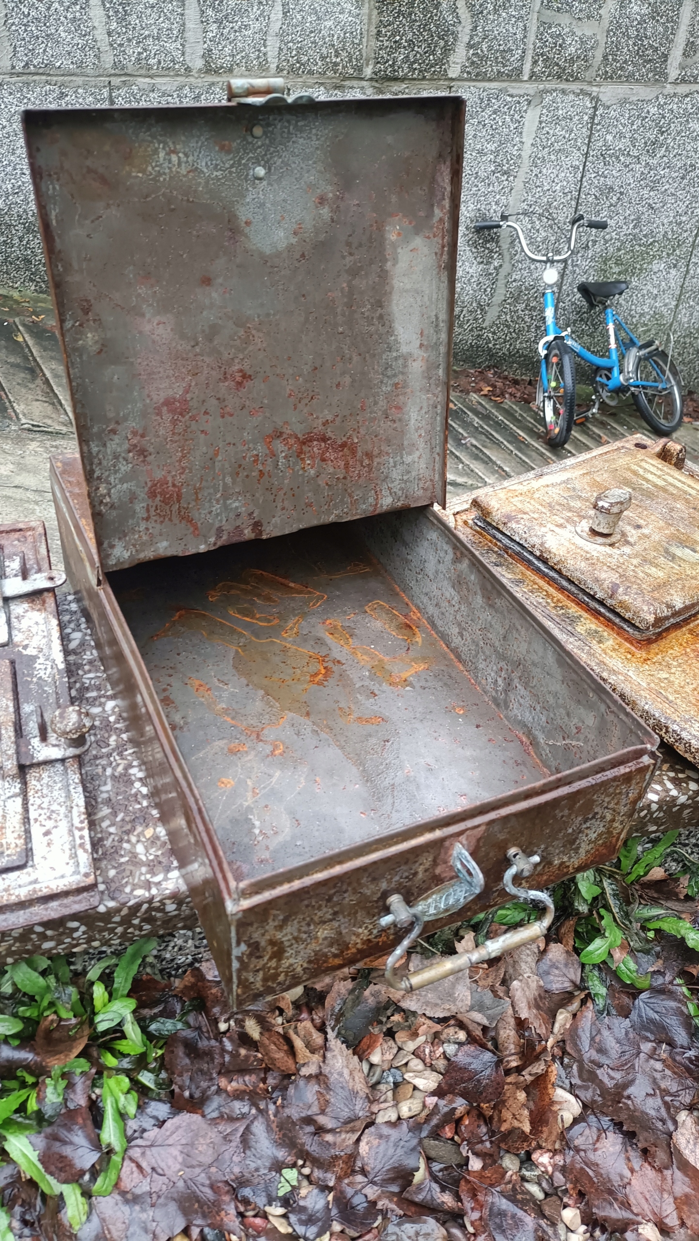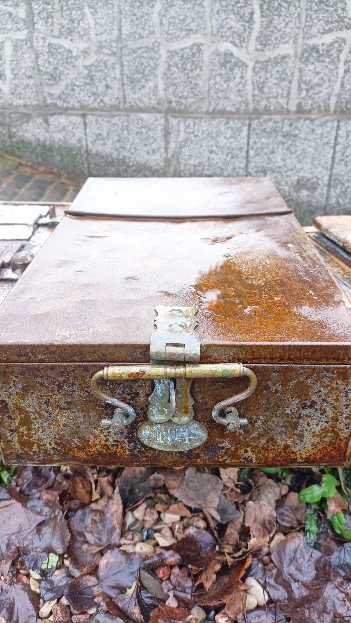Старая металлическая банковская коробка, пронумерованная шкатулка