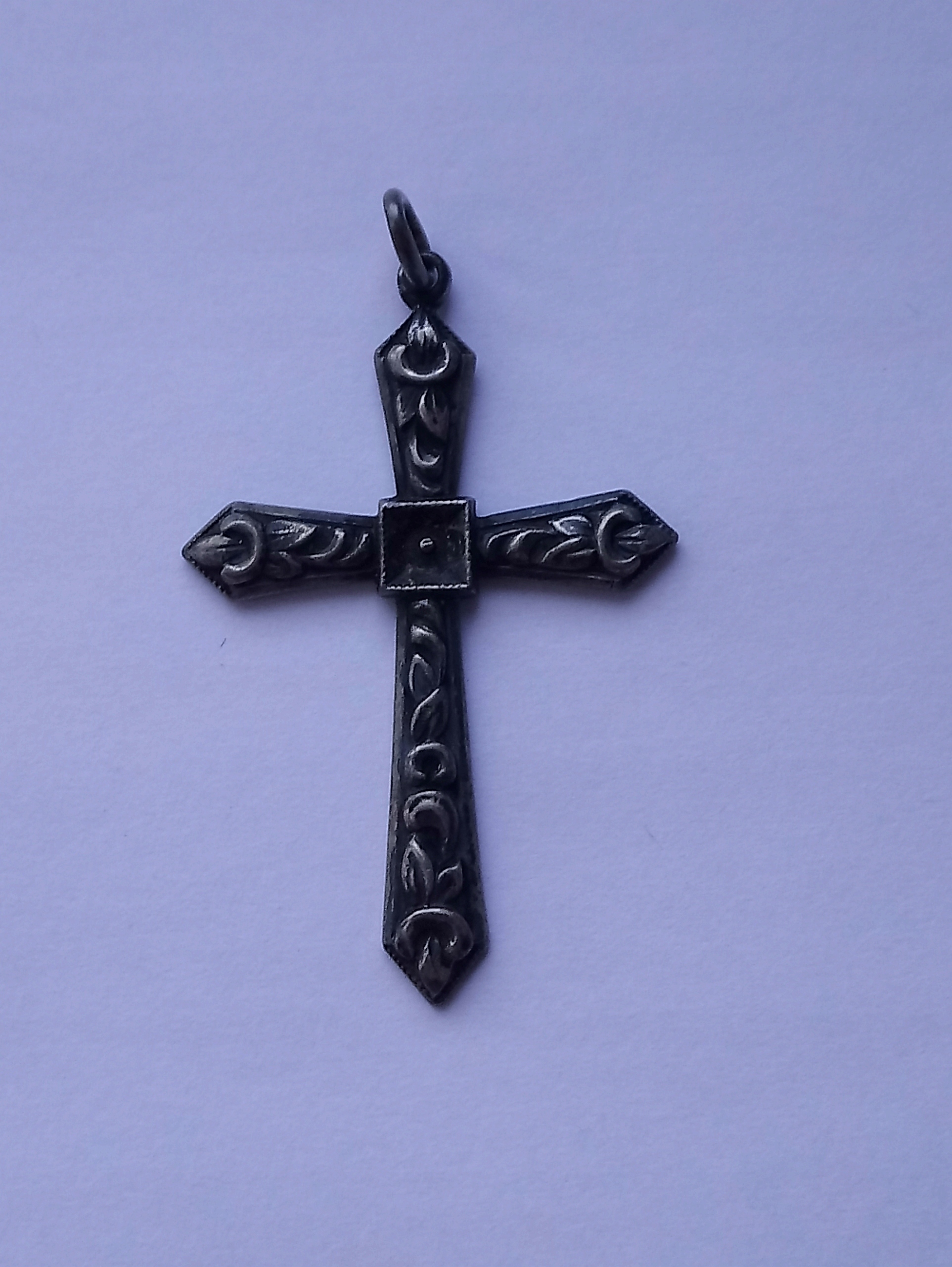 Предмет аукциона – очень старый металлический крест высотой 4 см. Состояние на фото (требует чистки).
