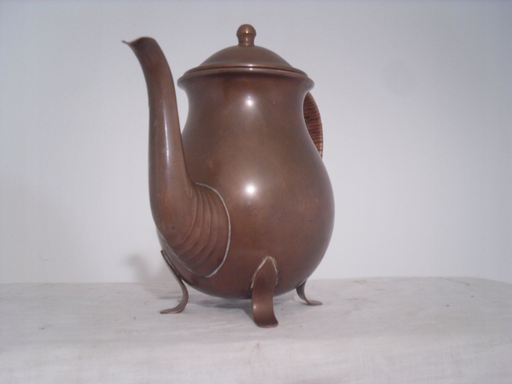 Старый медный чайник, заварочный чайник, медный кувшин, ПОДПИСЬ Дания, плетение