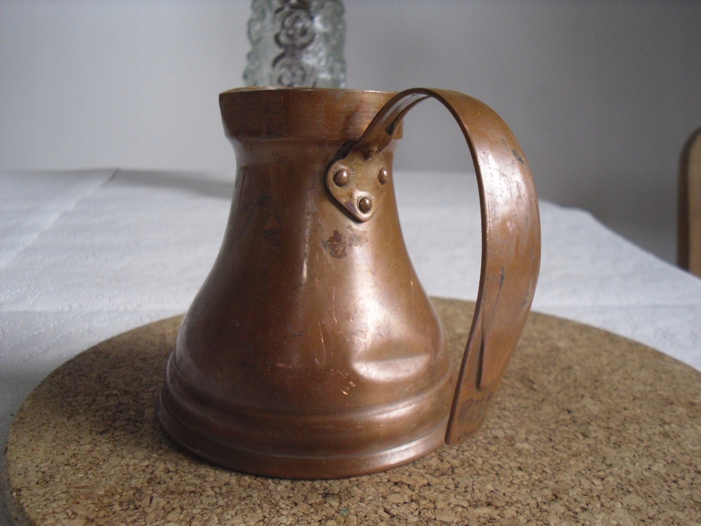 Добро пожаловать на мой аукцион. На аукционах я обычно предлагаю вам предметы периода Польской Народной Республики. На этом аукционе я предлагаю старый медный тигель, кувшин, обычно используемый для заваривания кофе. Тигель в хорошем состоянии, царапины, потертости, локальные налёты, всё от использования. Центр посеребренный, луженый. Ручка с изящным декором. ТУГОЙ. Красивое украшение. Смотрите фотографии.