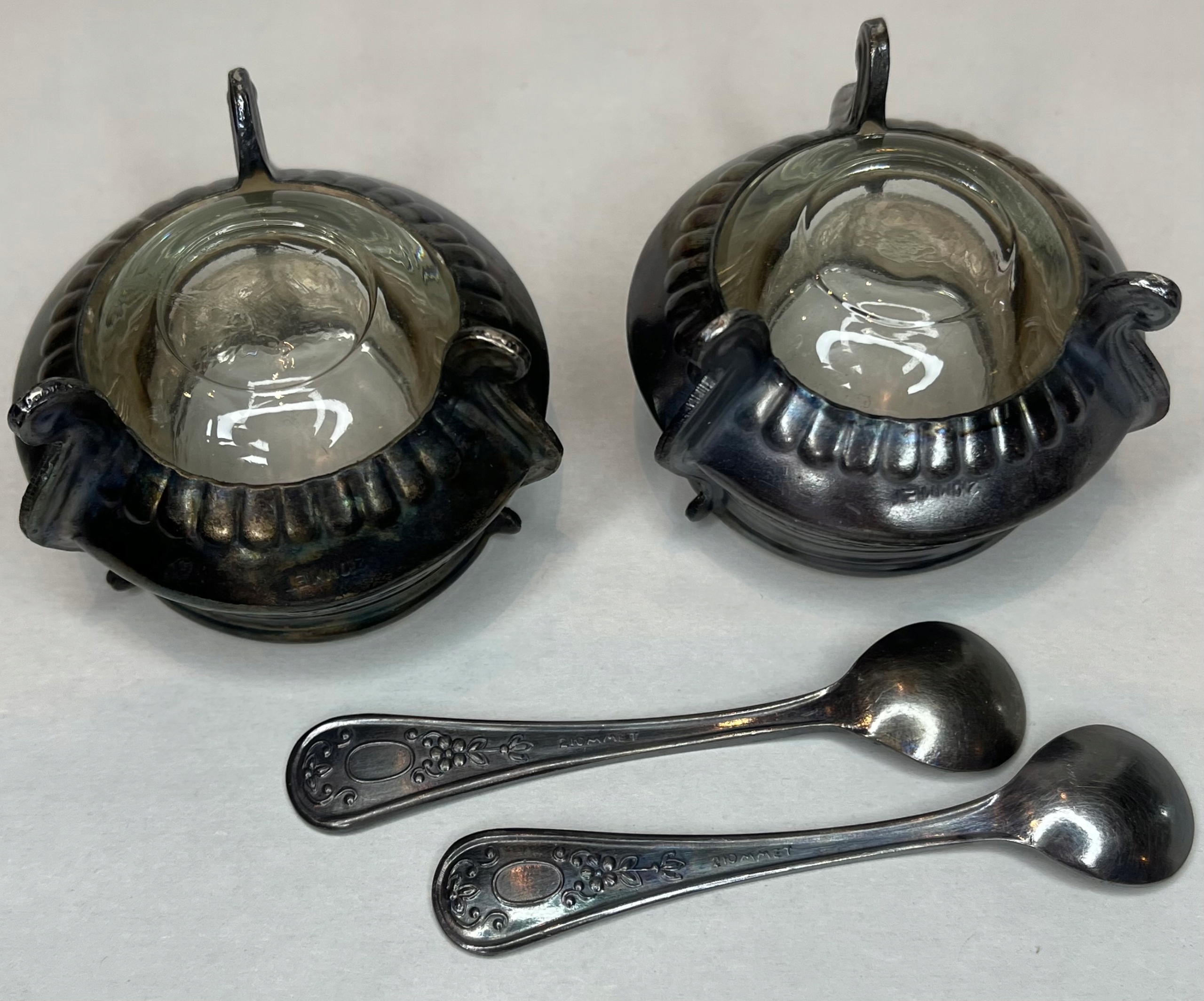 Старый набор солевых шейкеров и перца из России - подписанный, с чайными ложками