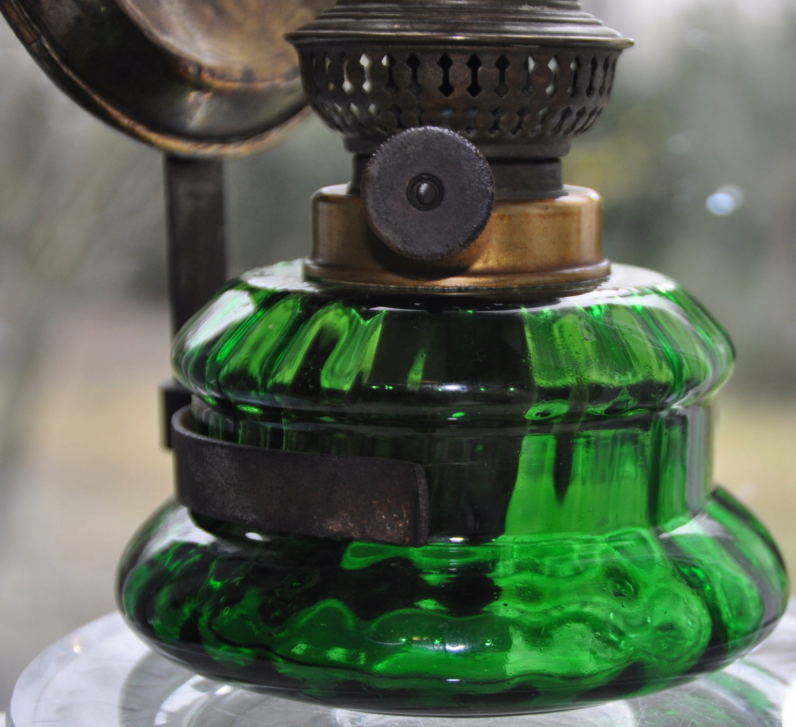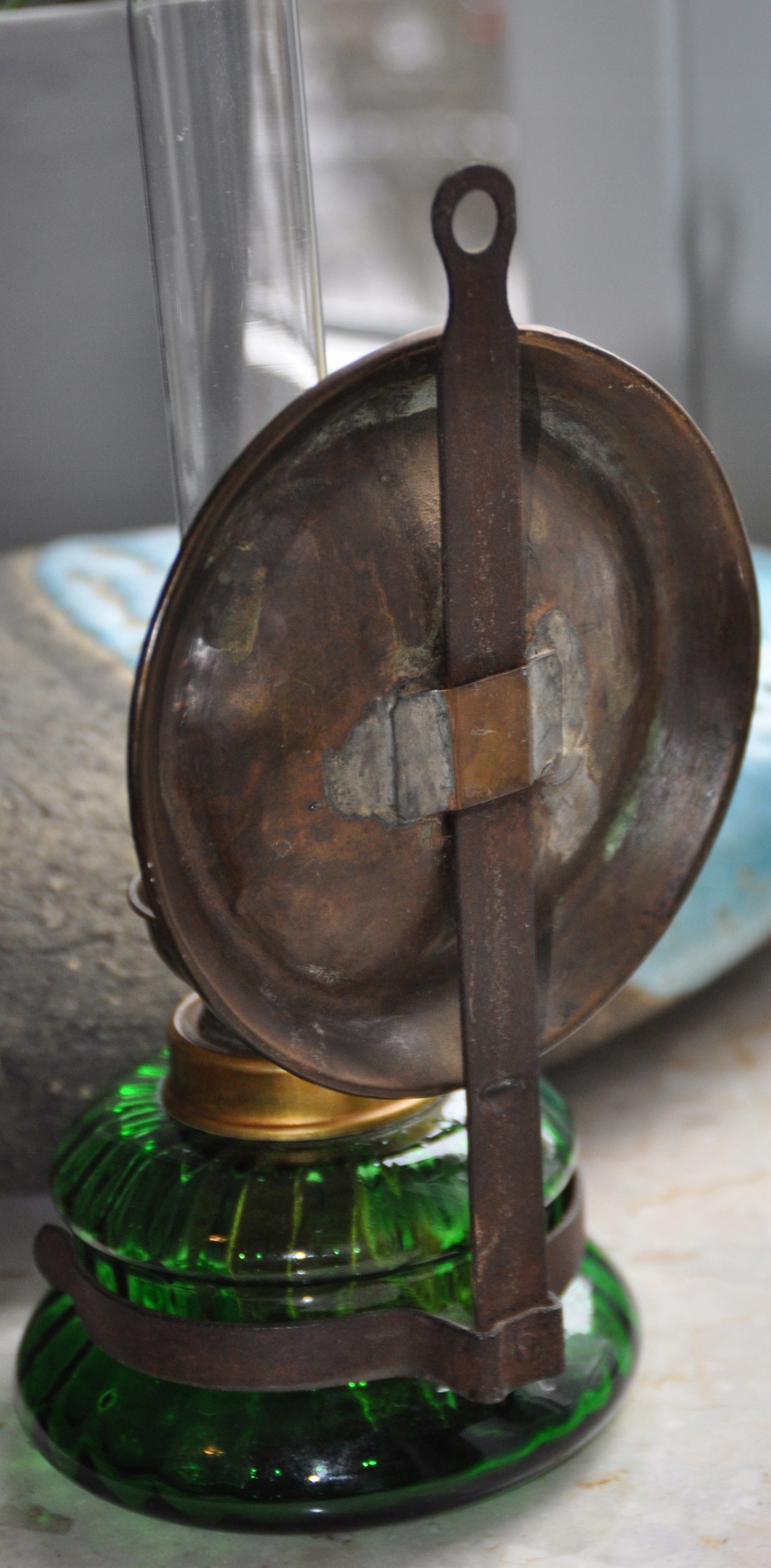 Старая масляная лампа Holmegaard. Высота 34 см. - зеленый