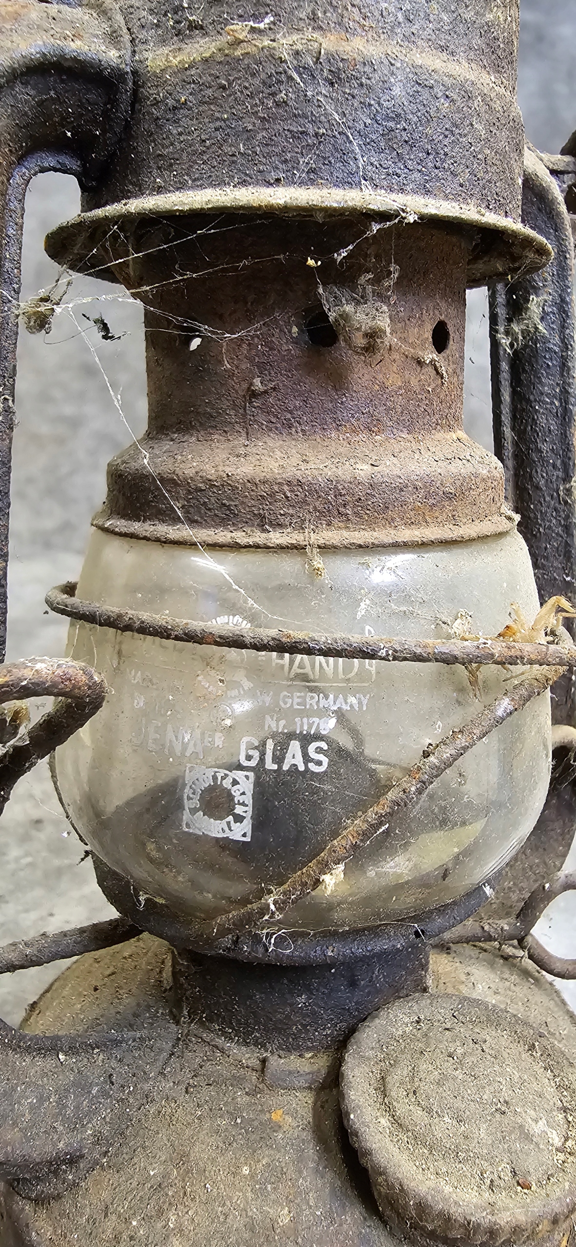 Старая масляная лампа Feuer Hand Jena Glass немцы