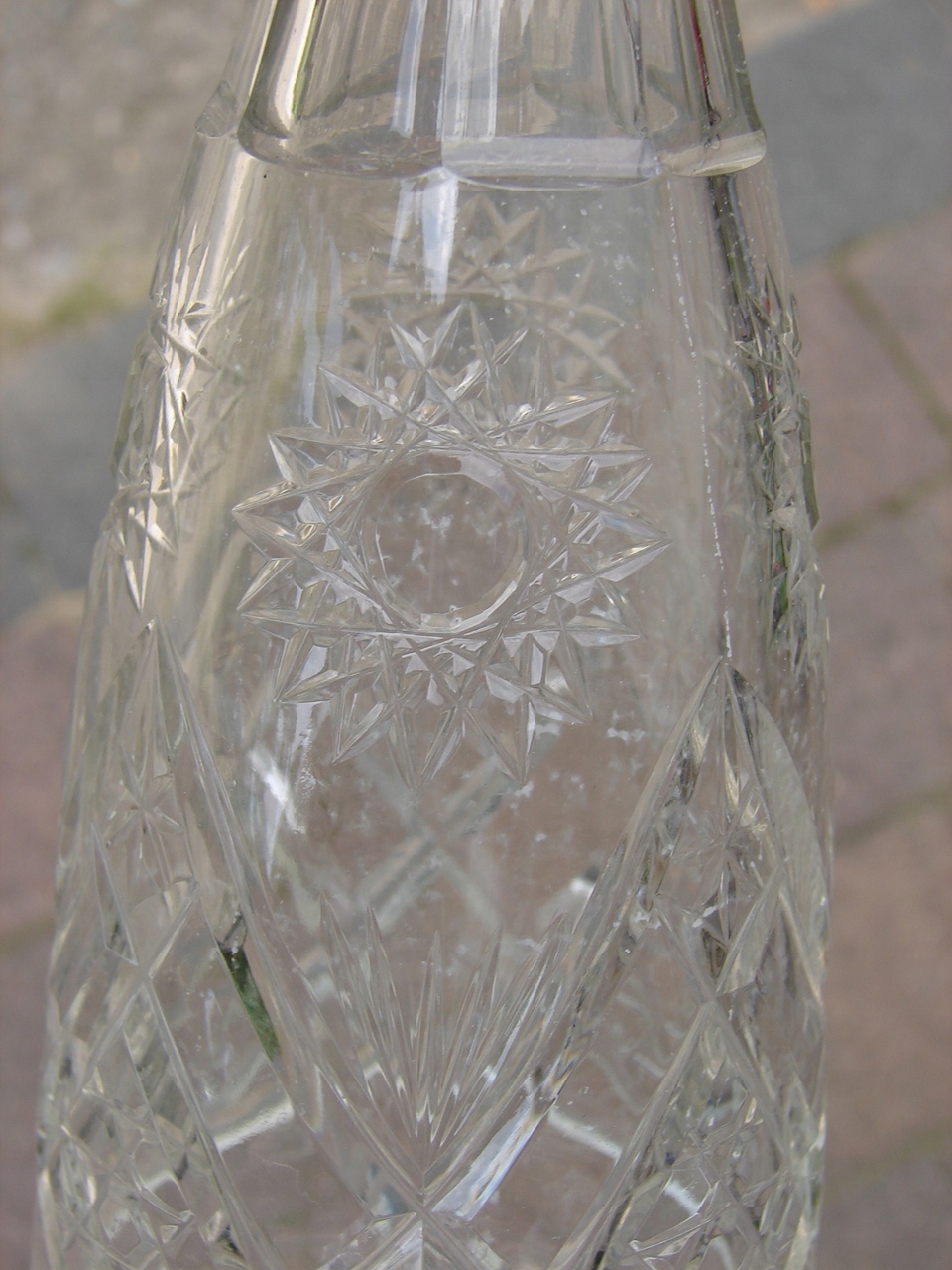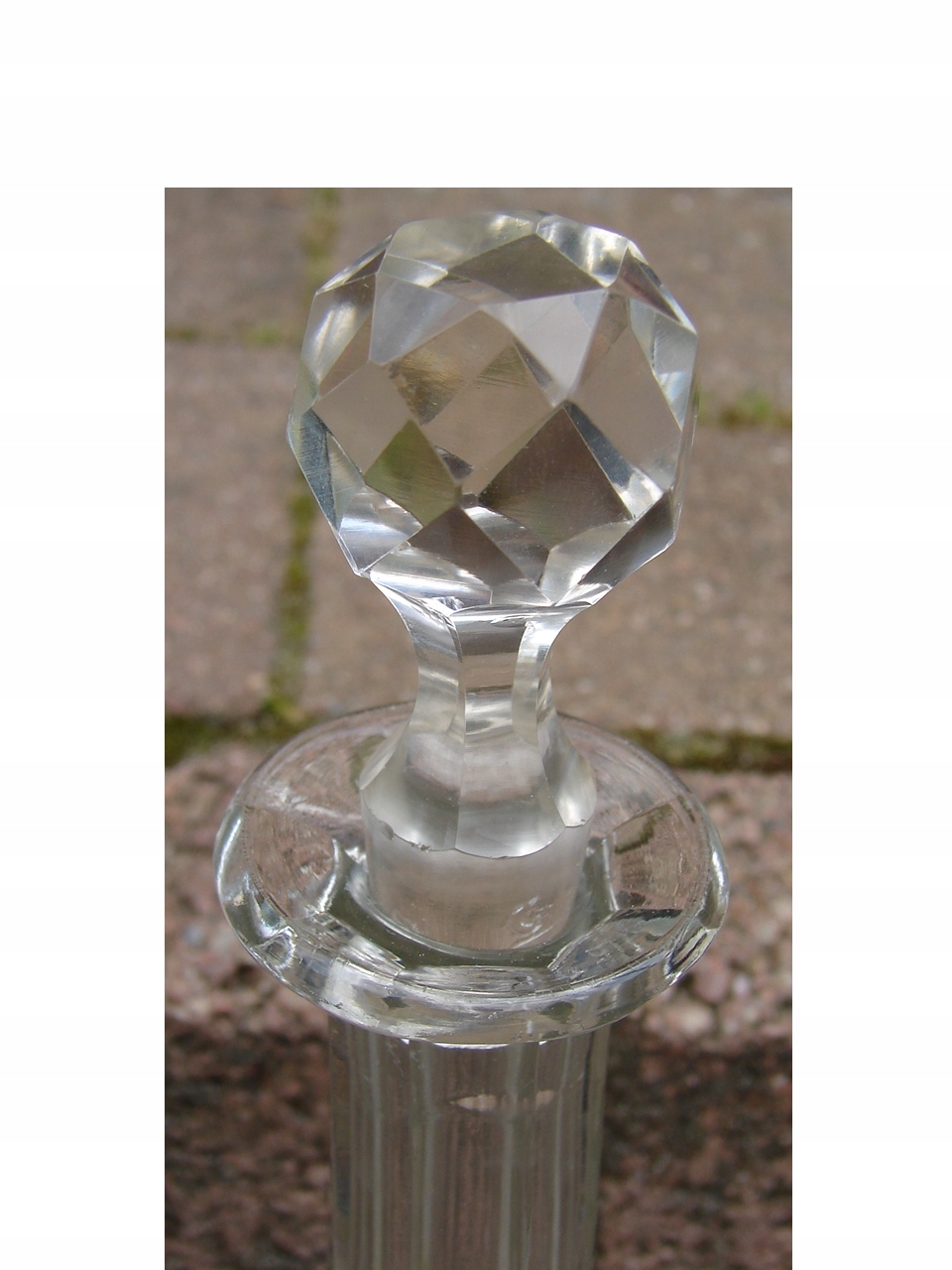 Старый немецкий графин для обслуживания настоек, сделанных в декоративной стильной форме хрустальной стеклянной основы и отшлифованной пробки.
