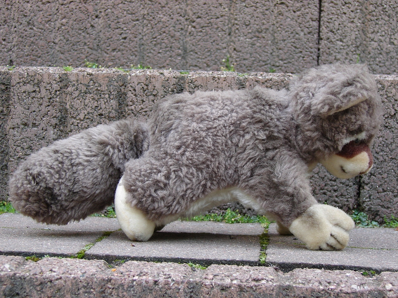 Игрушка имеет в ухе оригинальный фирменный зажим с этикеткой.