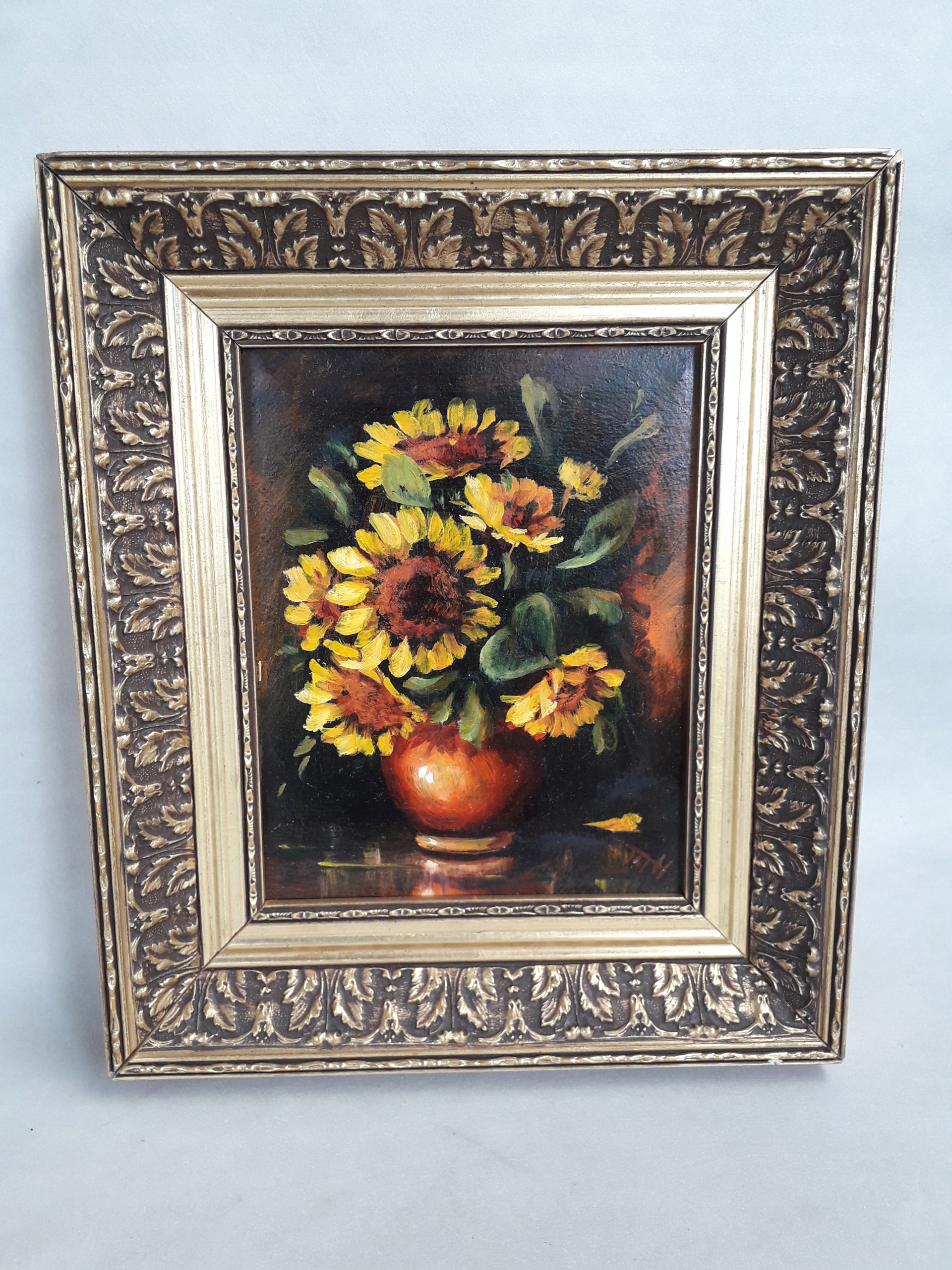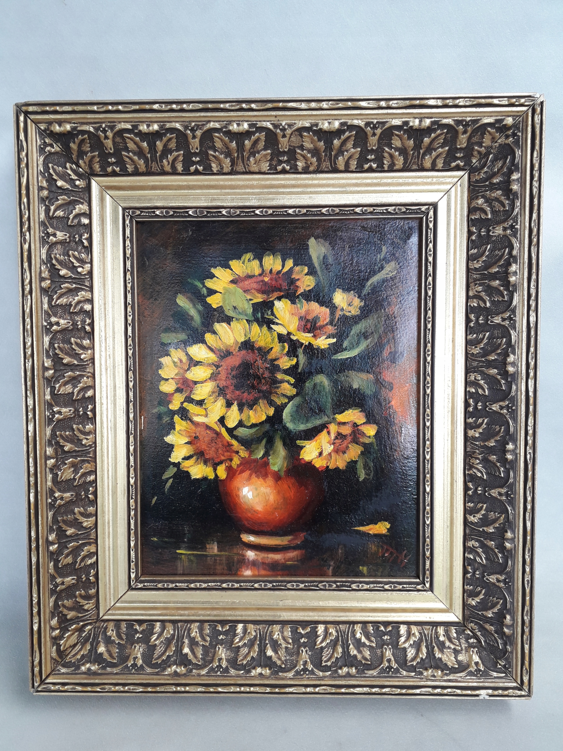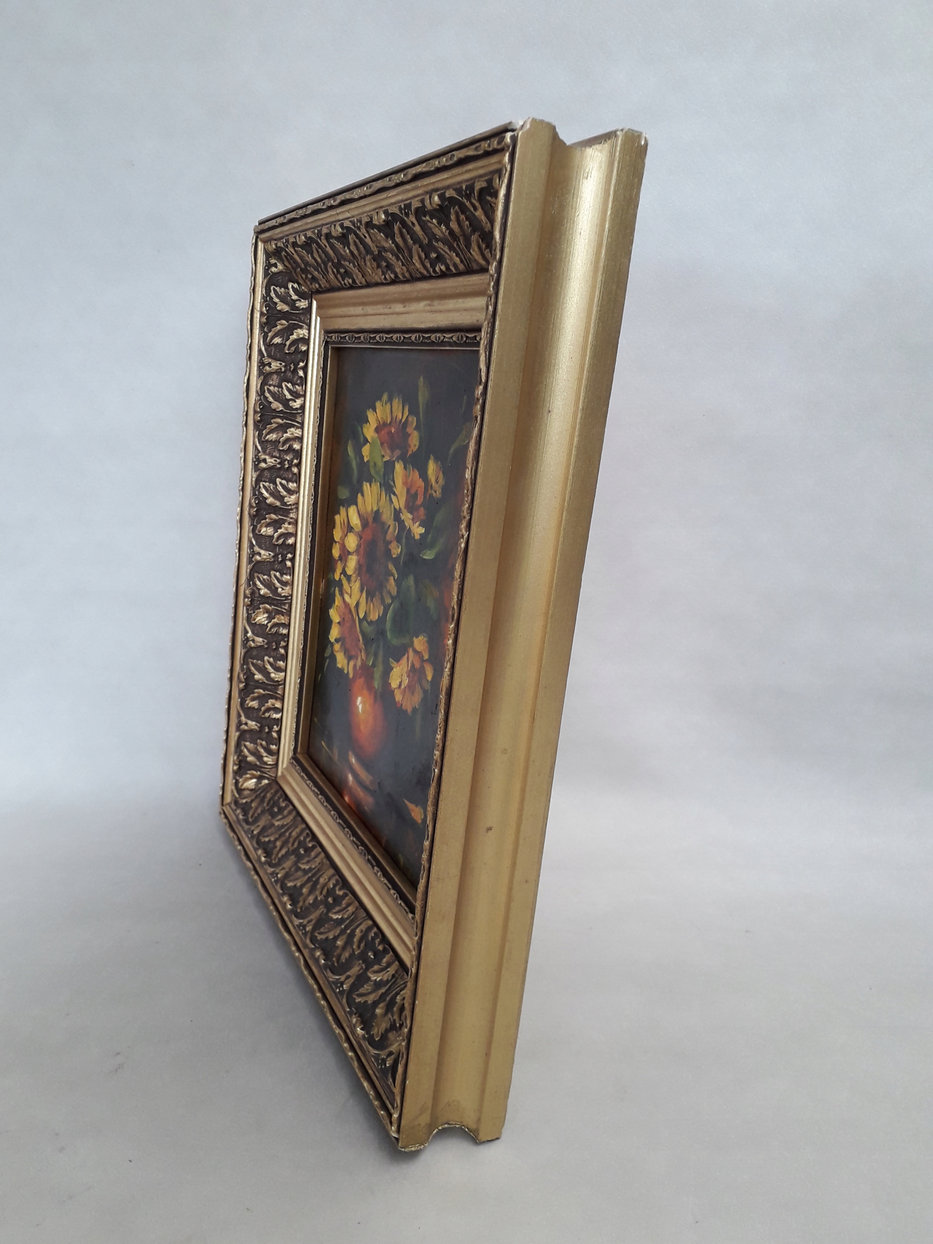 Старая масляная живопись на холсте в деревянной раме натюрморт цветы