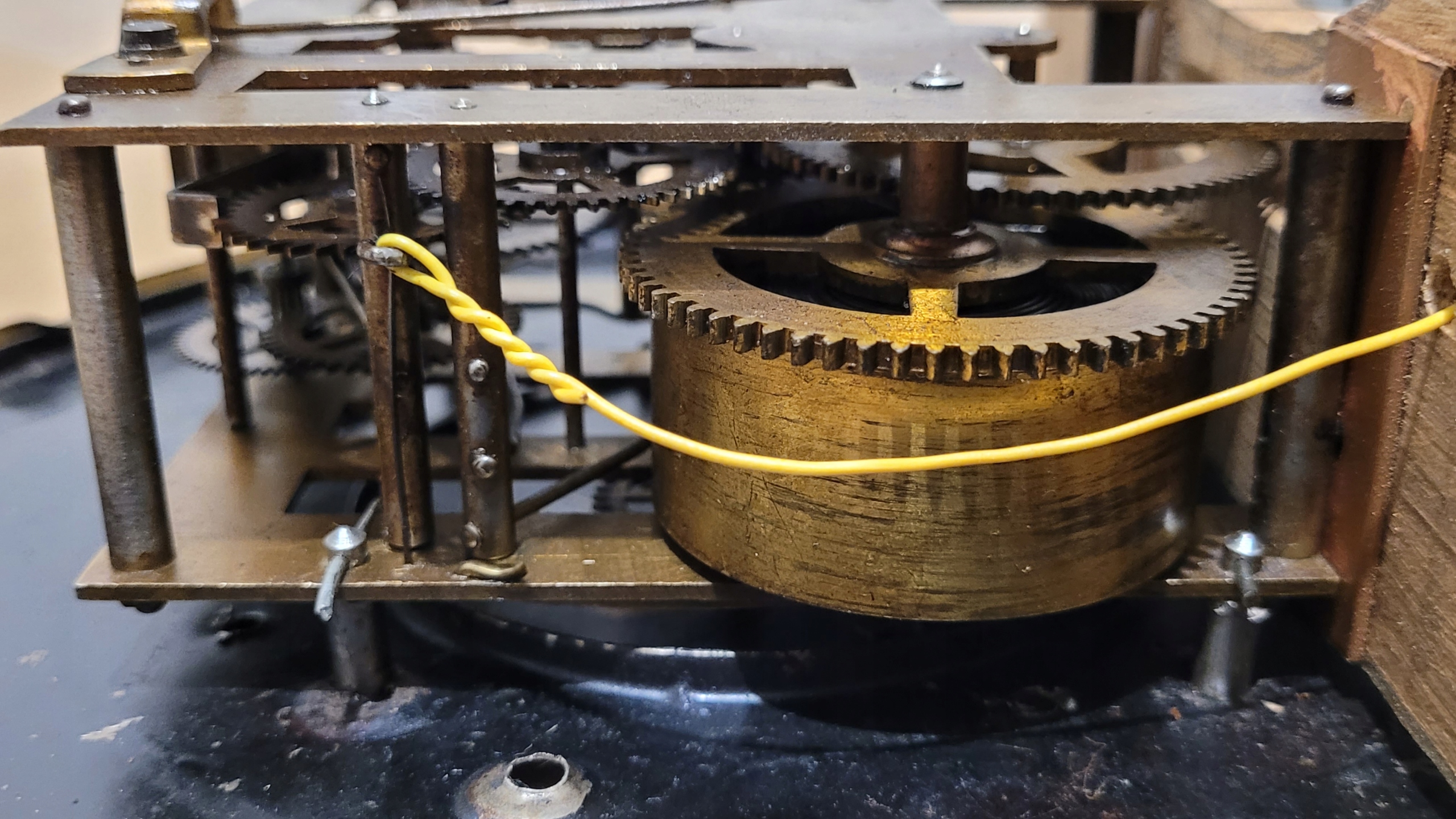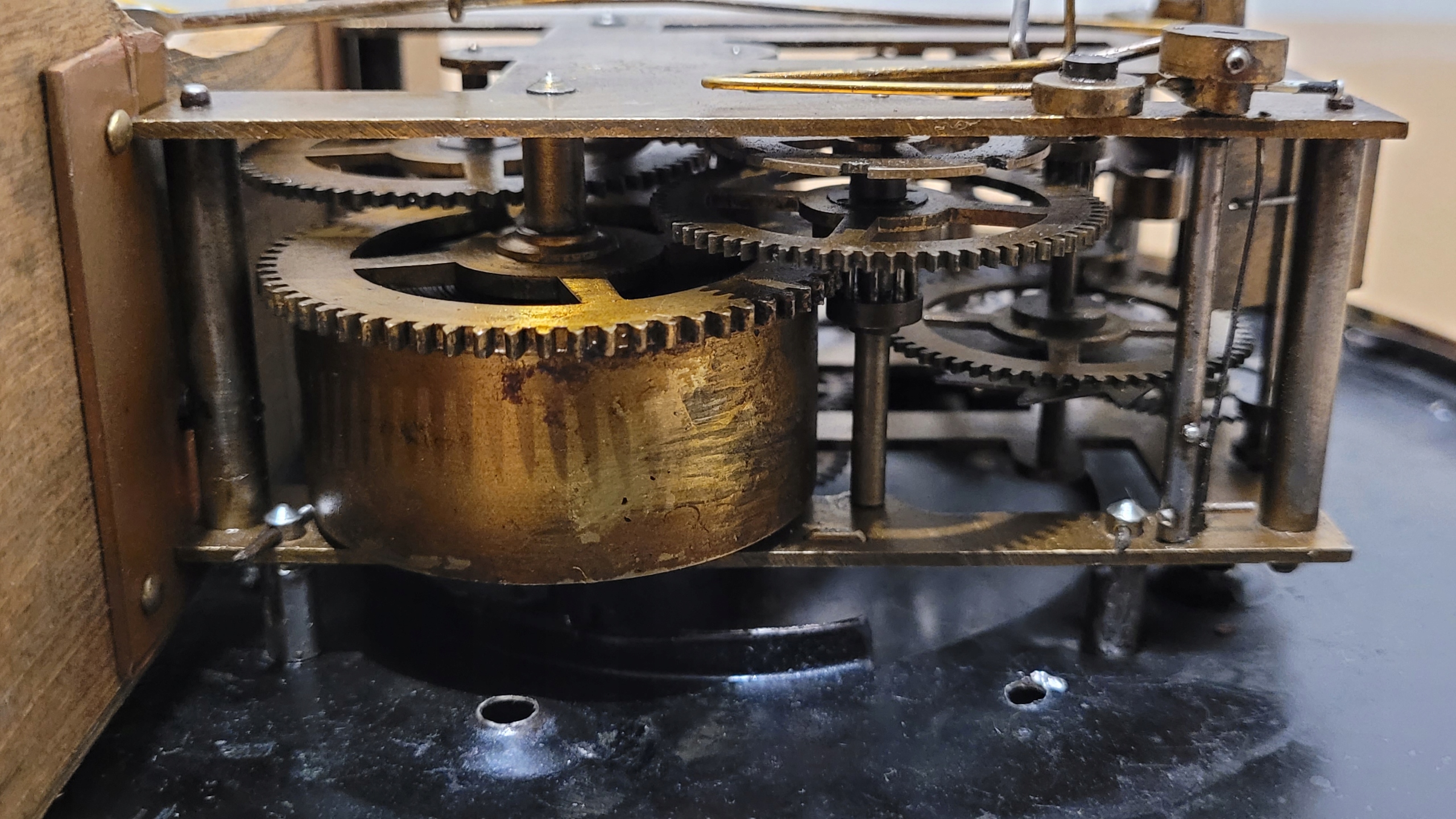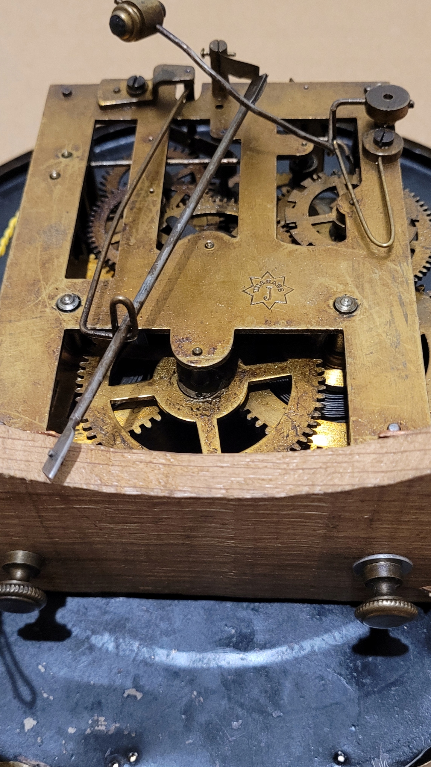 - Часы не работают (после снятия маятника механизм работает исправно, повреждена пружина подвески маятника).