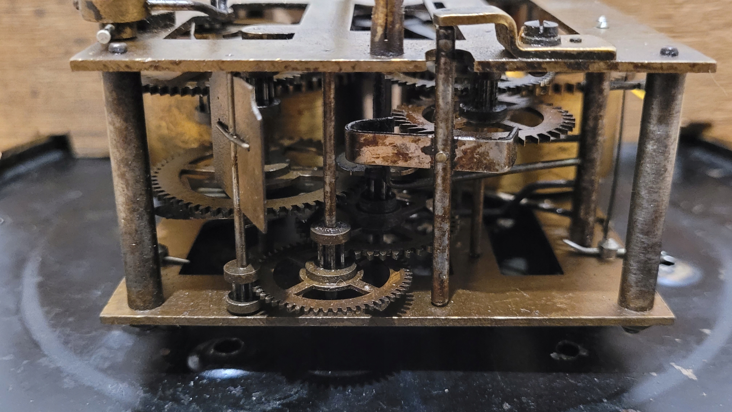 - При переводе стрелки в положение полного часа (полчаса) срабатывает механизм гонга.