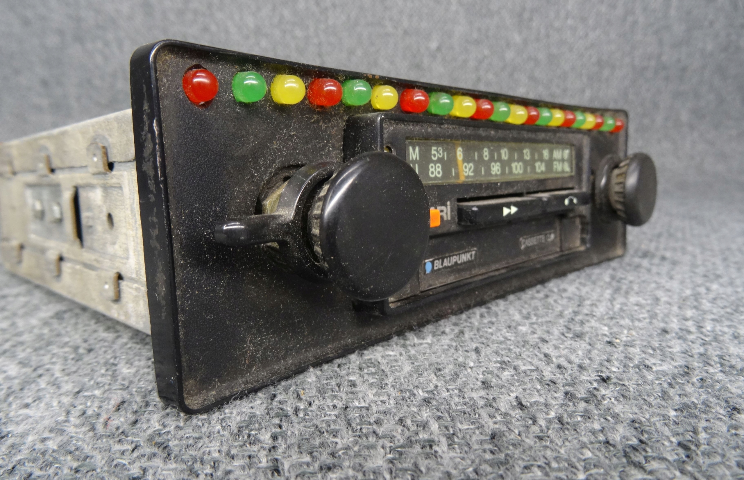 Старый радиочастотный магнитофон Blaupunkt ari. В радиостанции установлены красочные диоды.