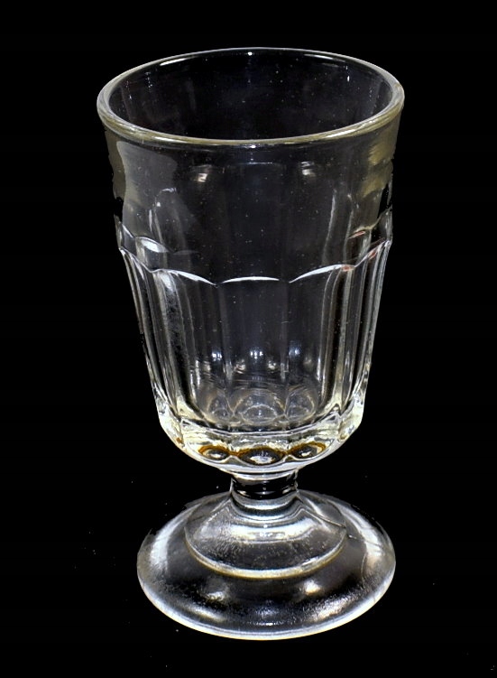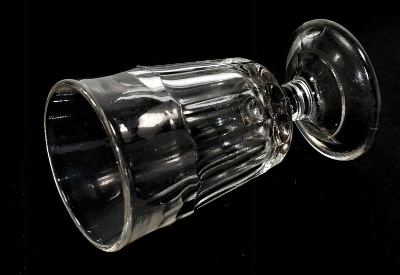 old kieliszek-karczmiak , изготовленный из толстого, бесцветного прессованного стекла. Карцмиак - это ранний отличный и массивный.