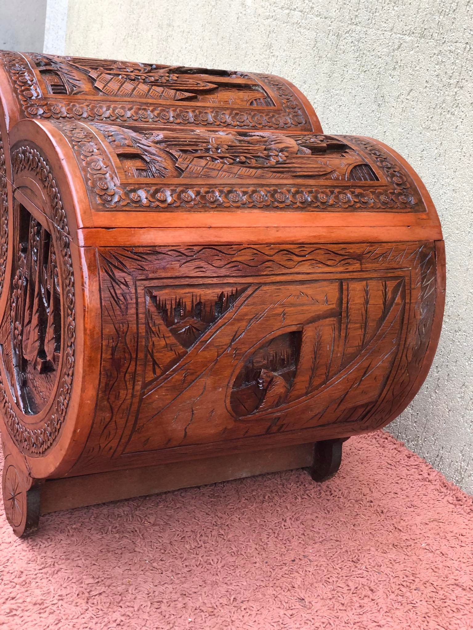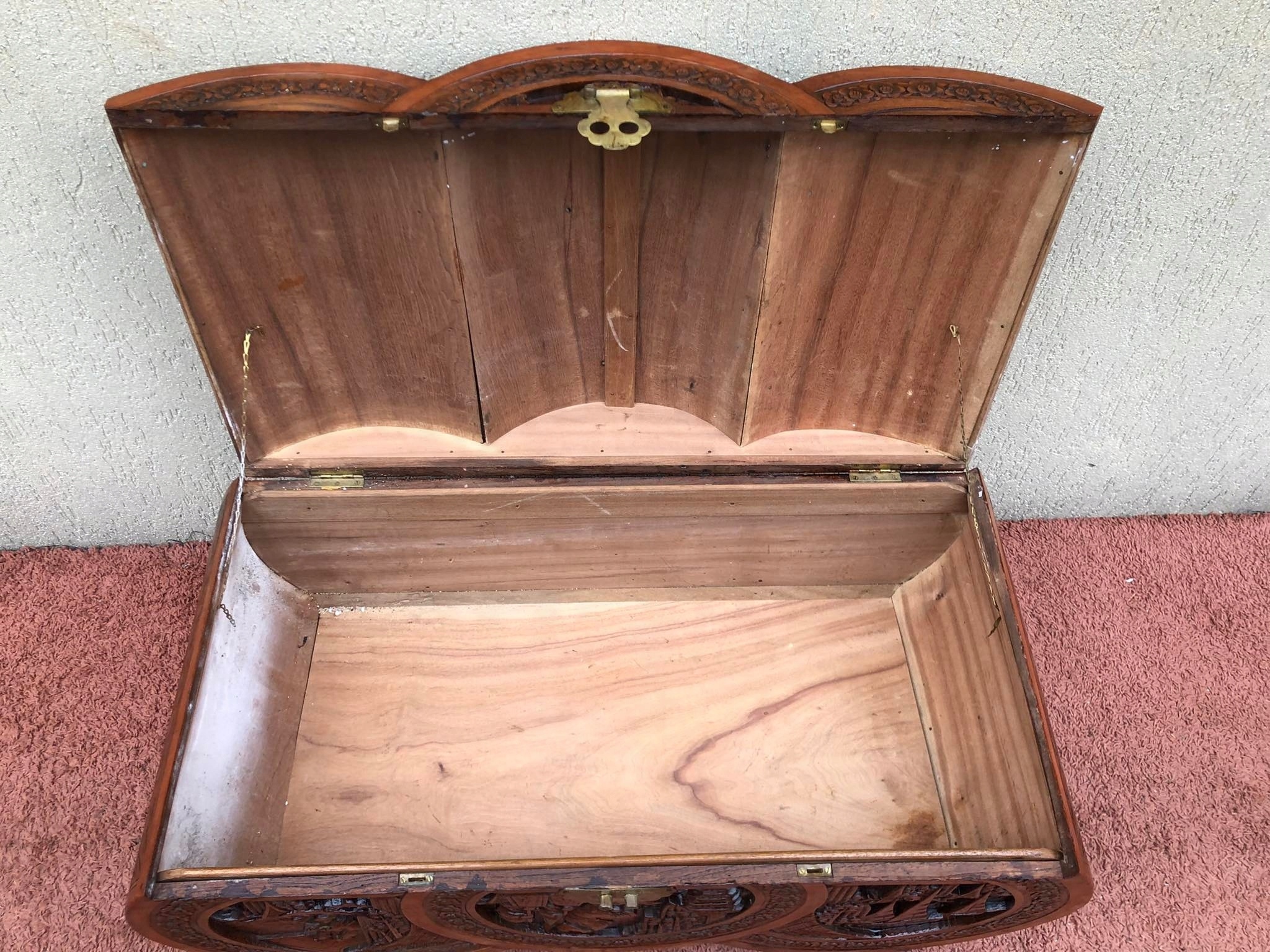 Старый сундук с резной грудью в китайских мотивах