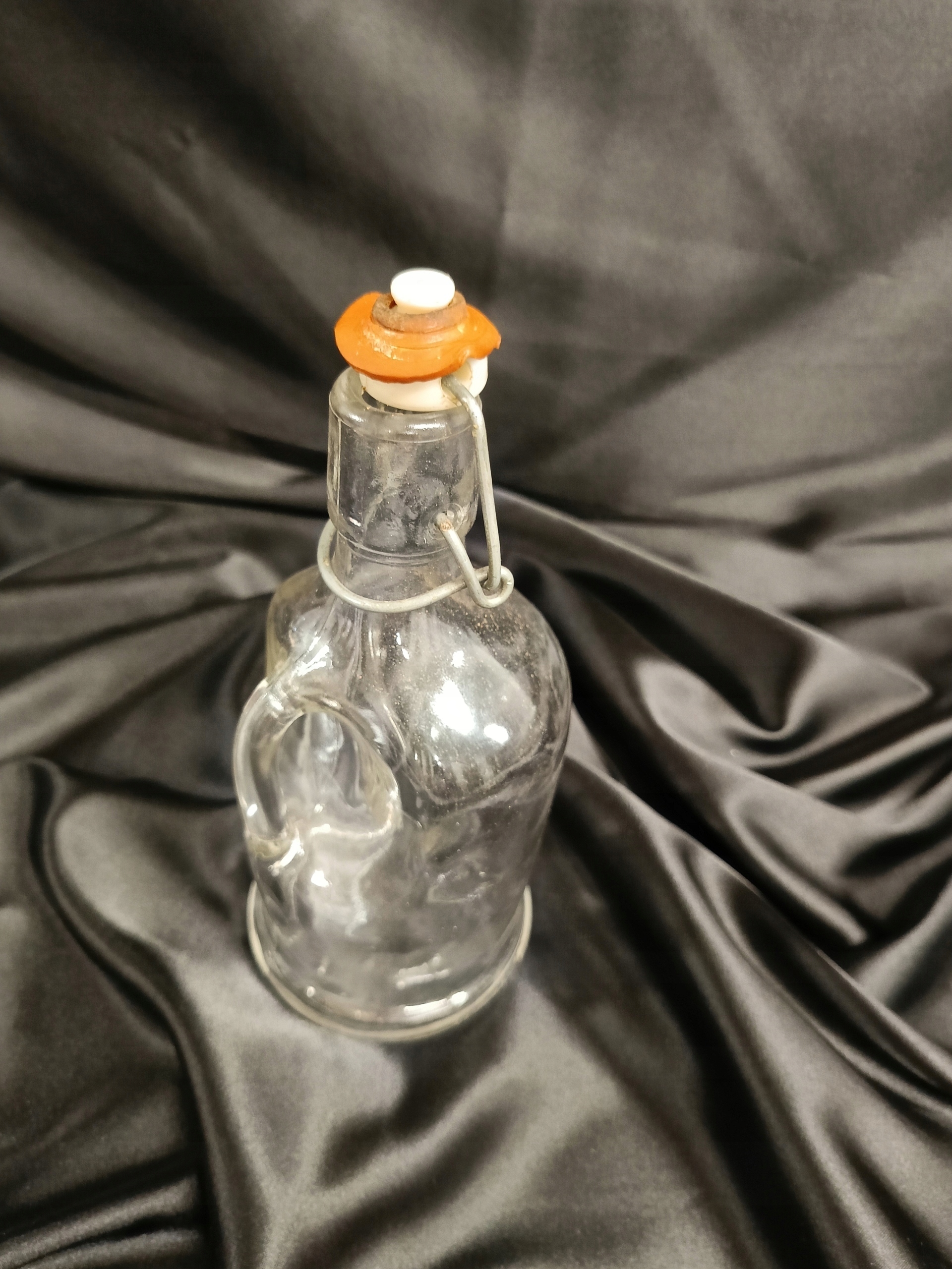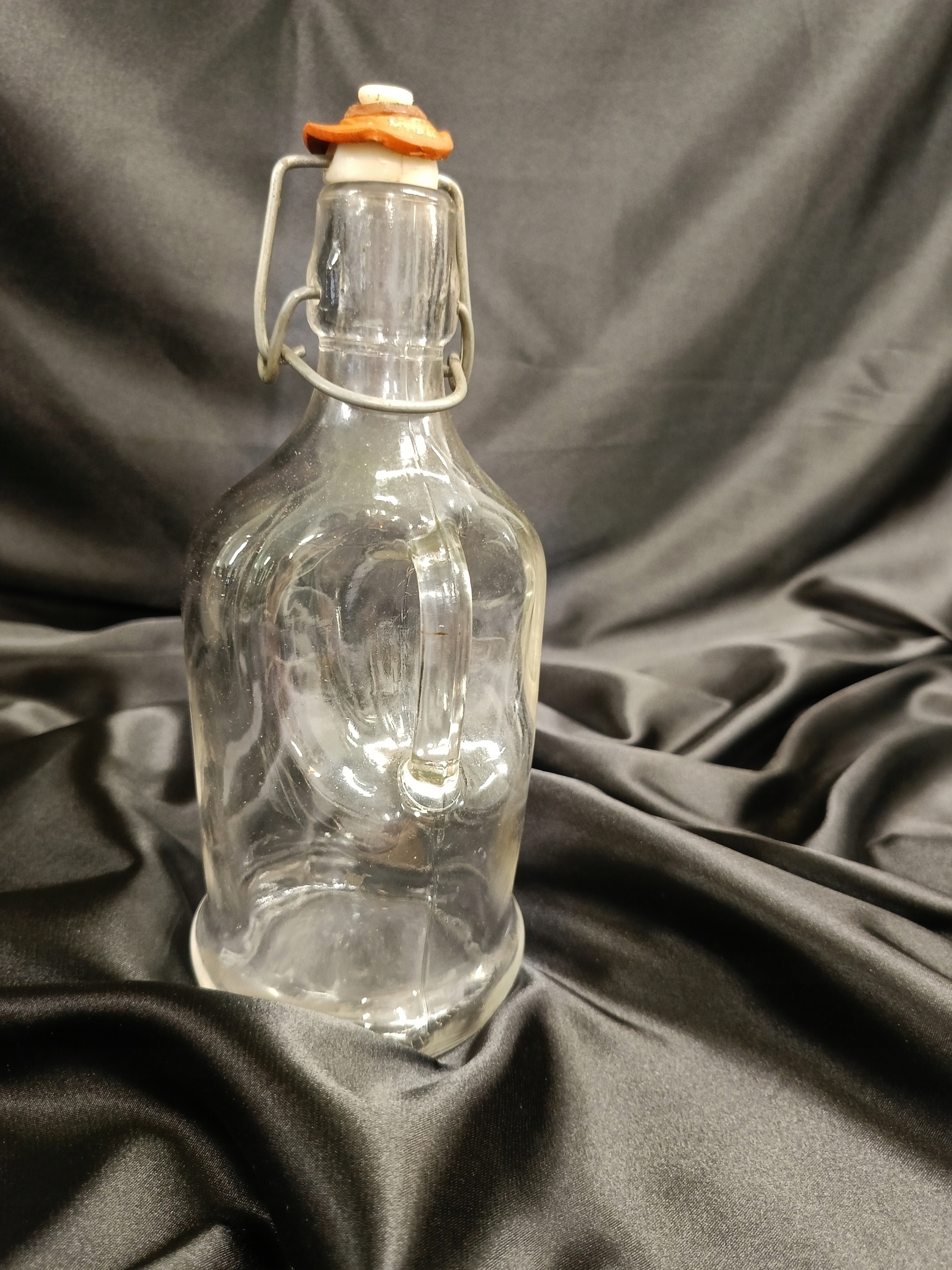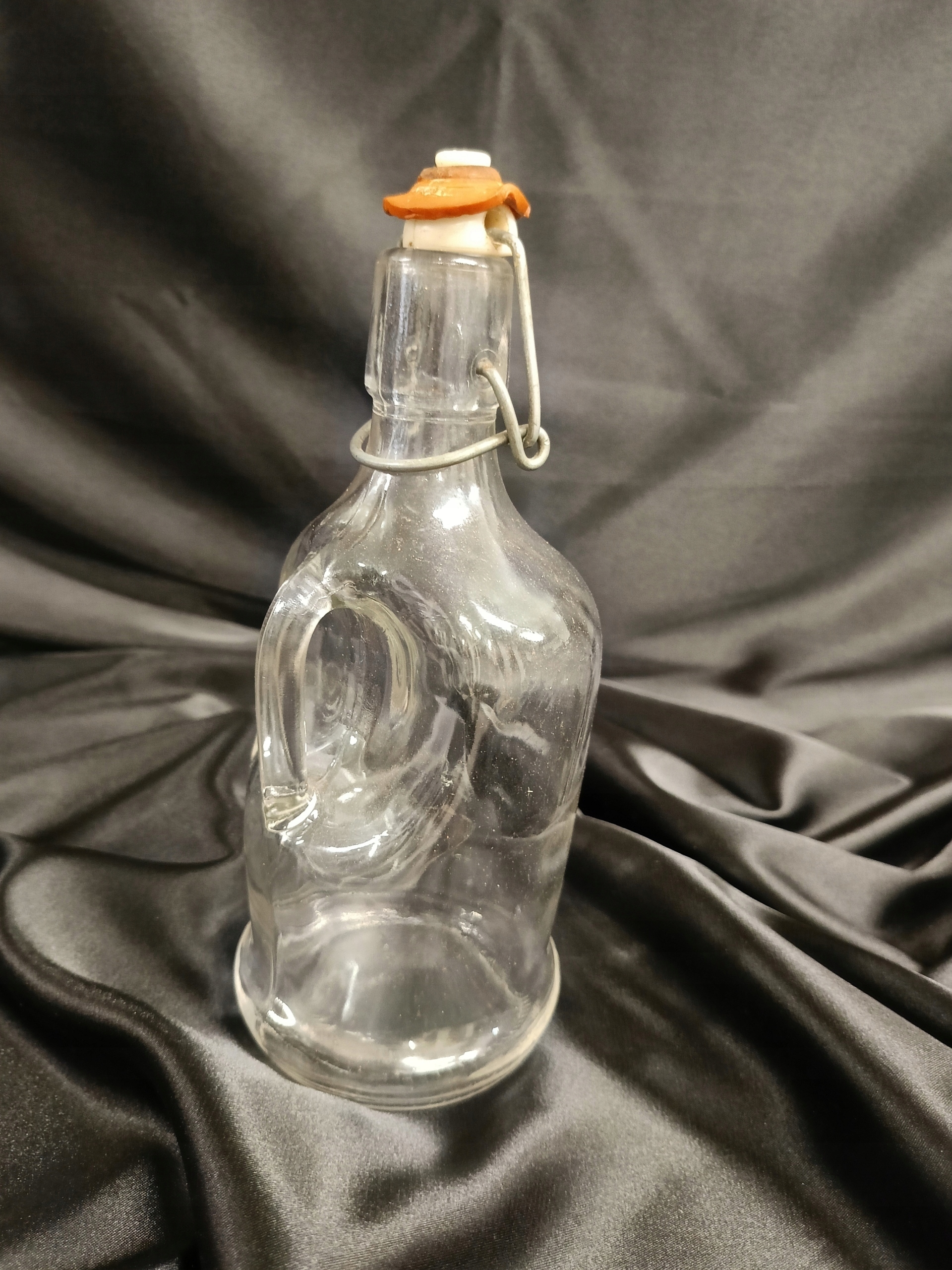СТАРАЯ СТЕКЛЯННАЯ БУТЫЛКА С РУЧКОЙ, галлон с зажимом, ПРЛ