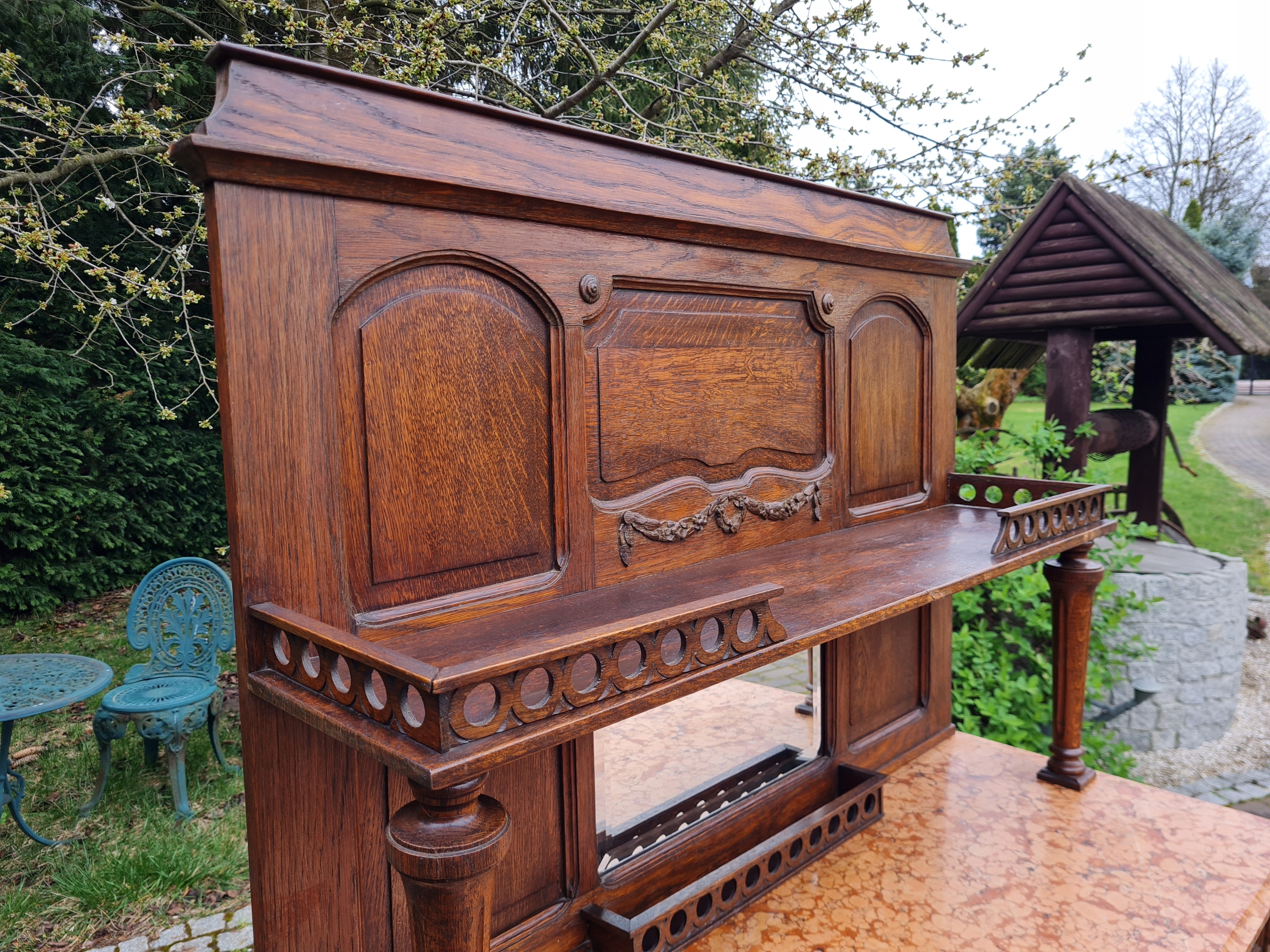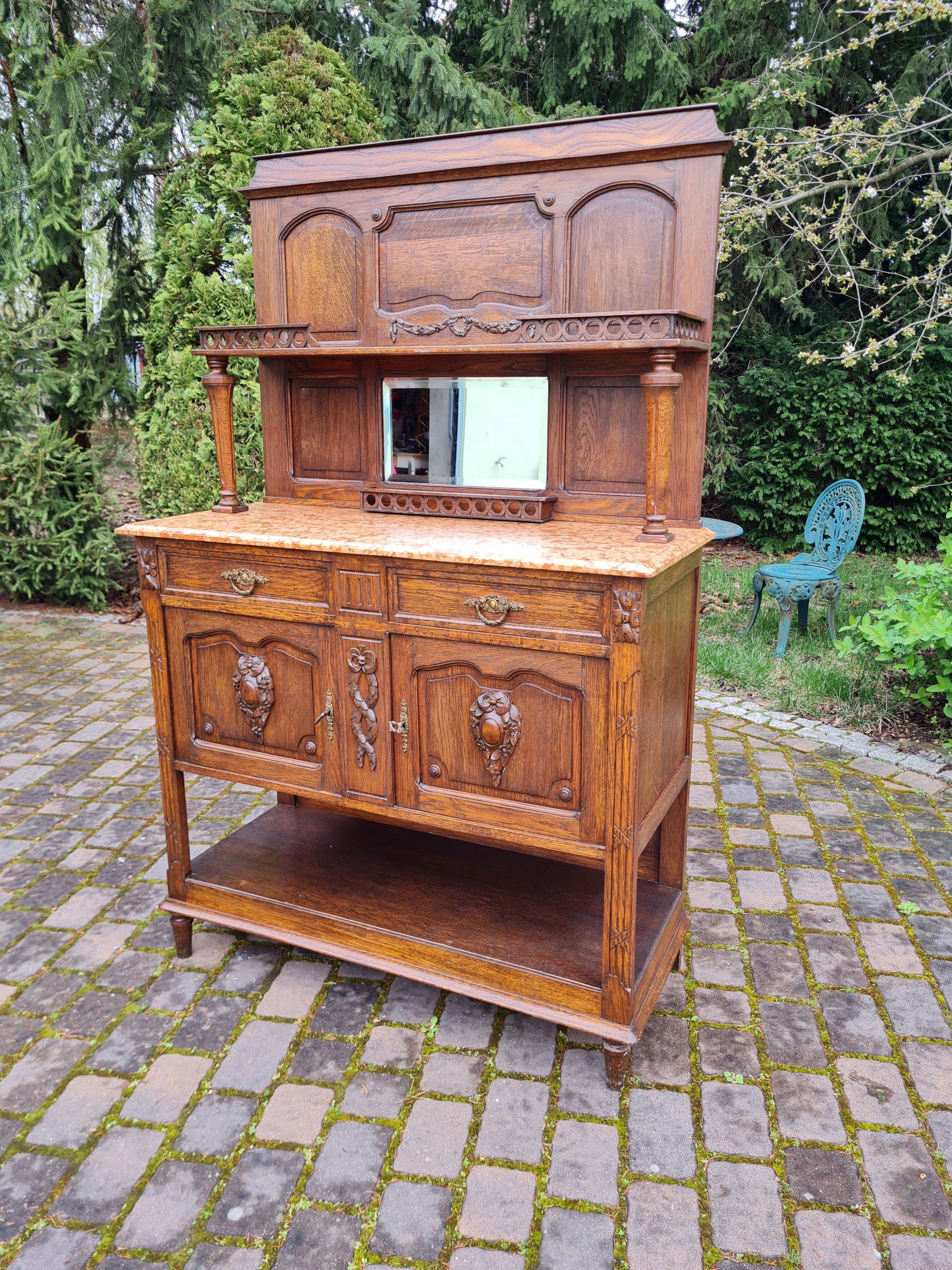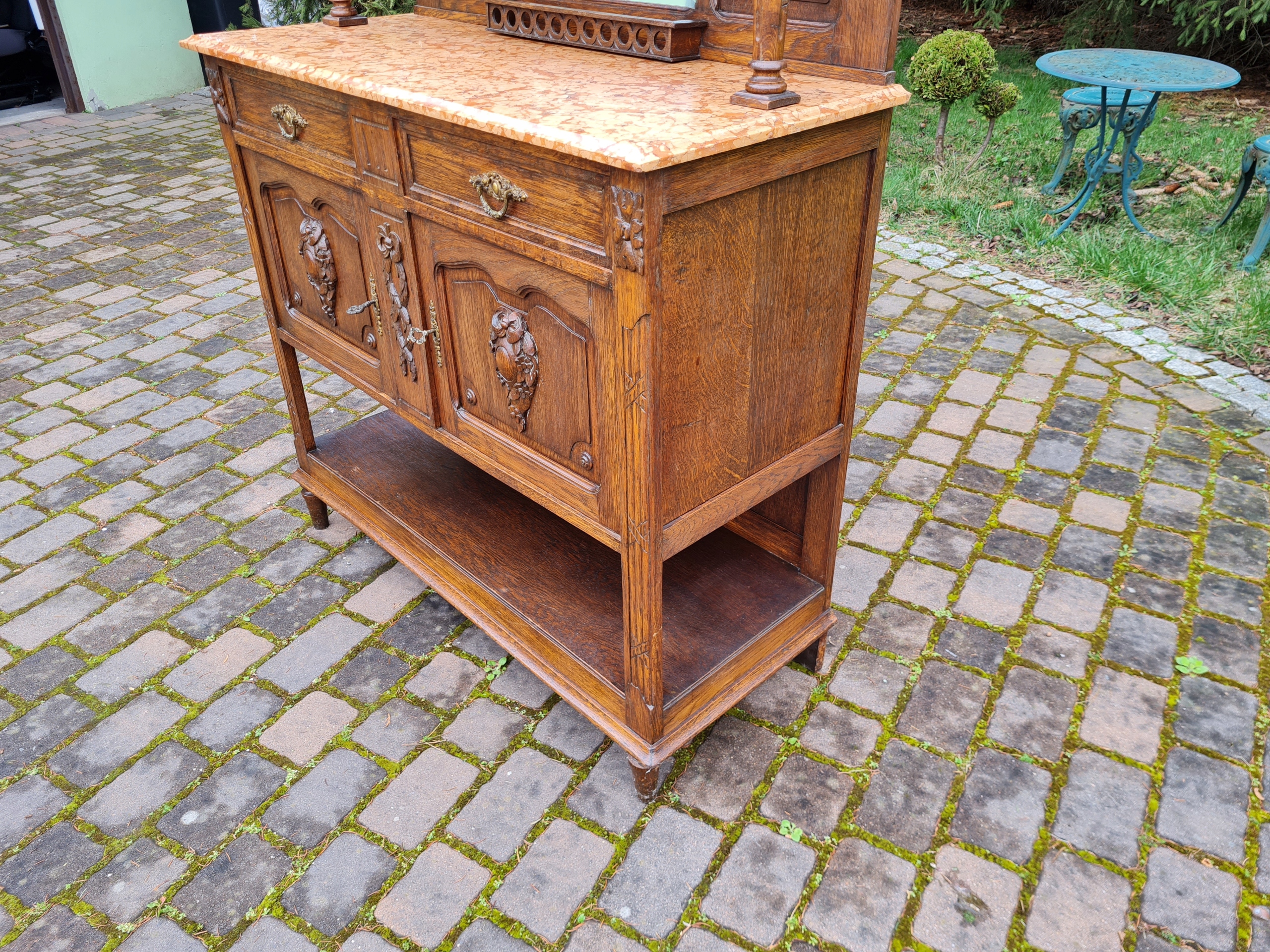 Старый древний угловой буфет с мрамором