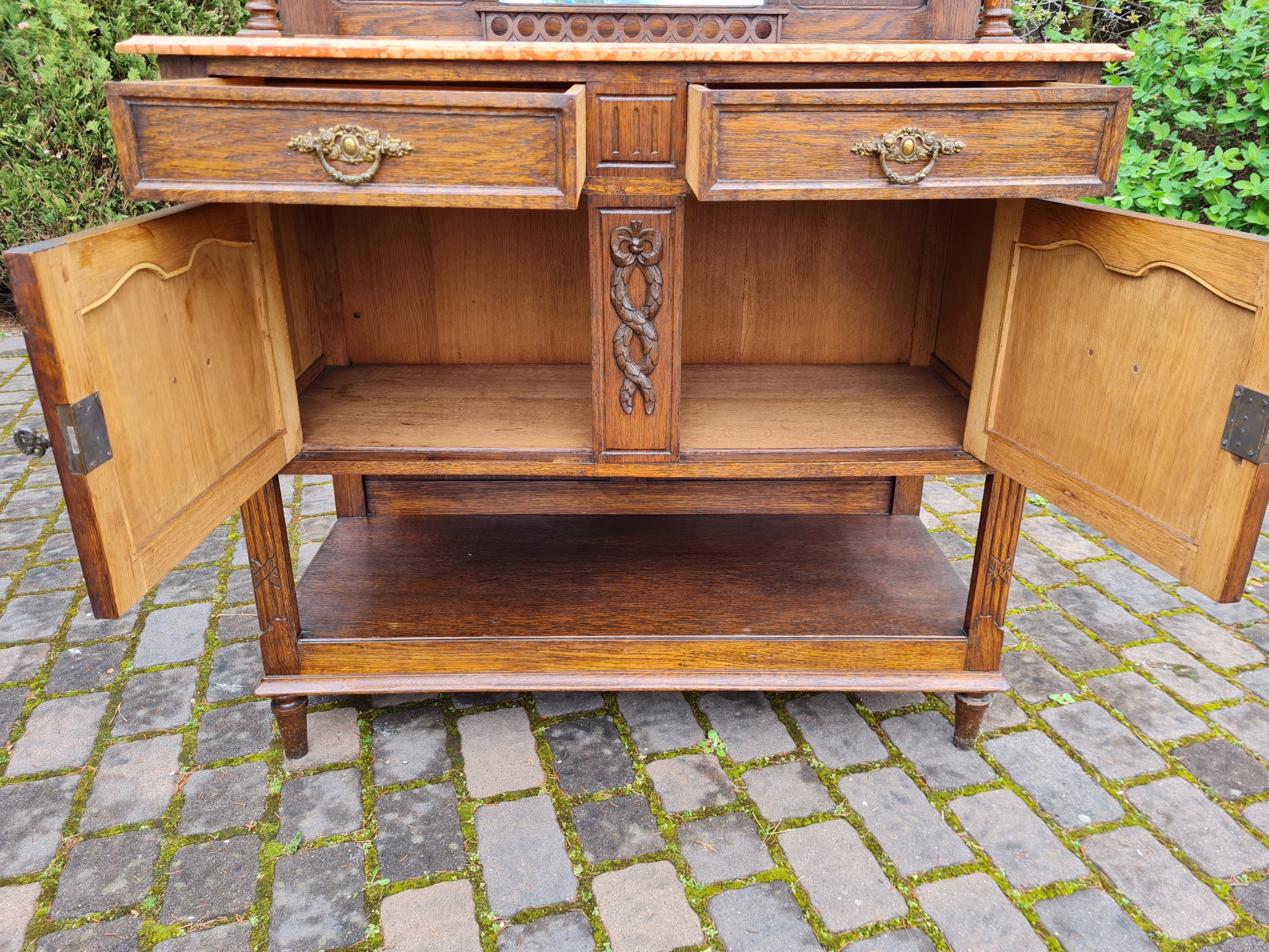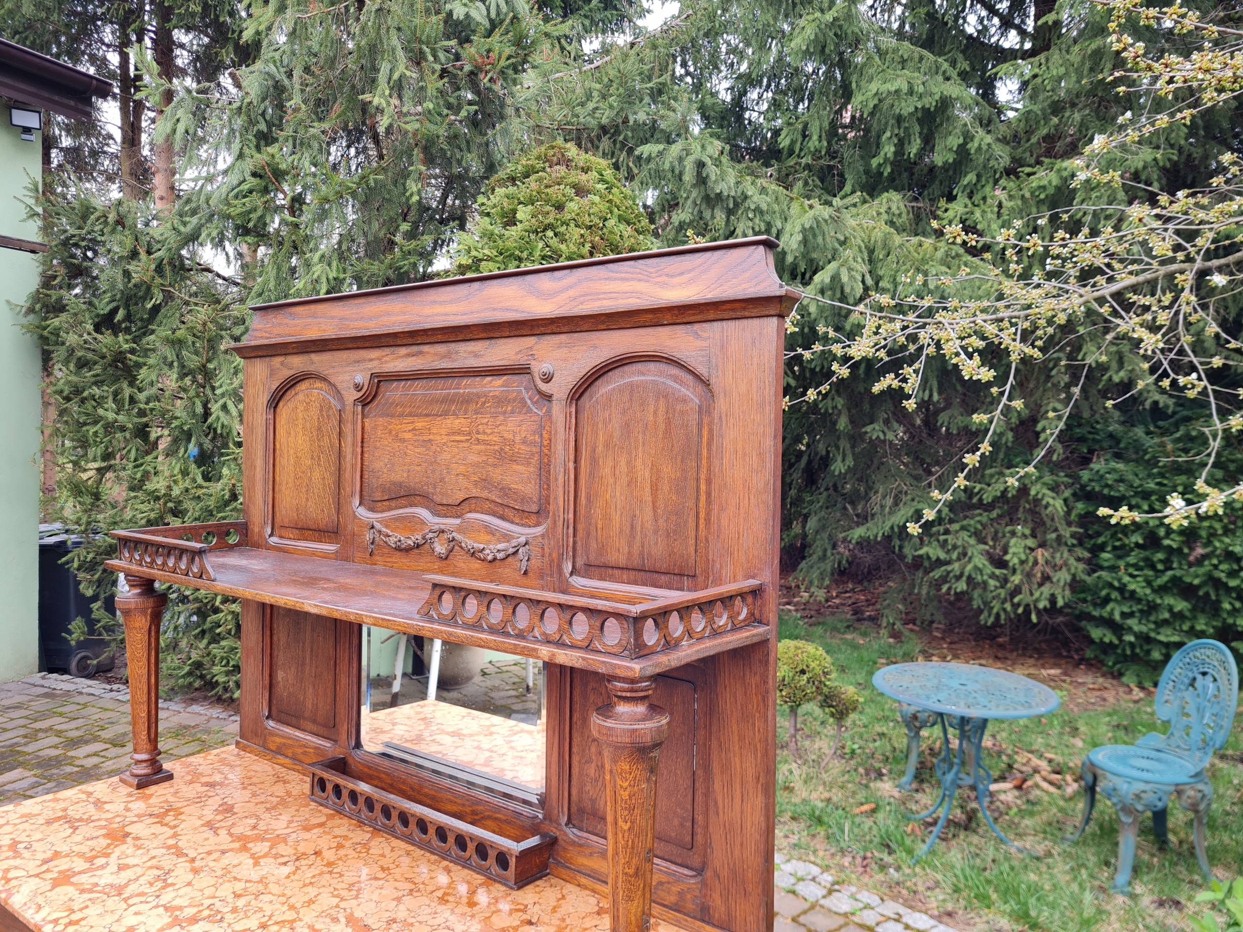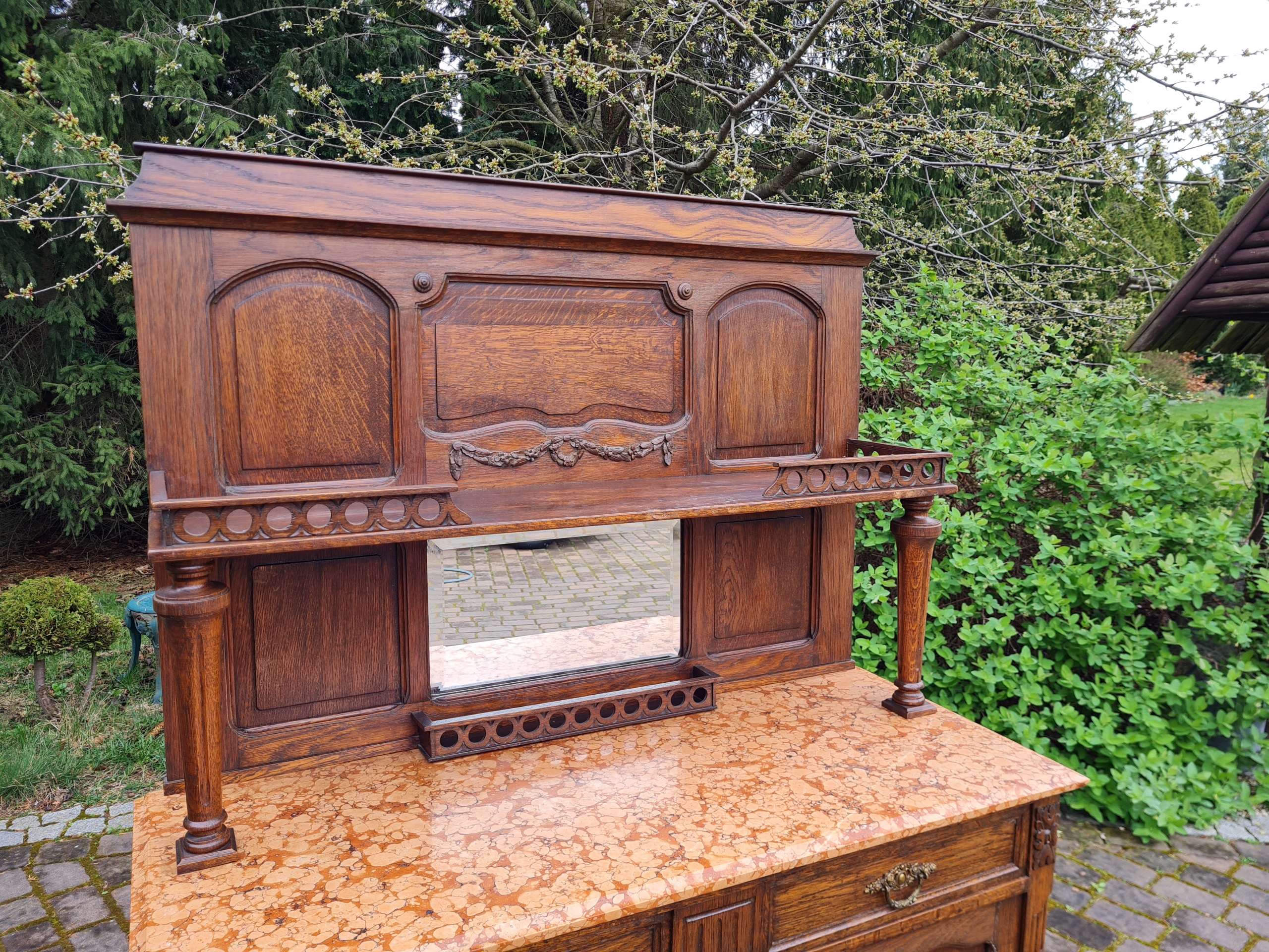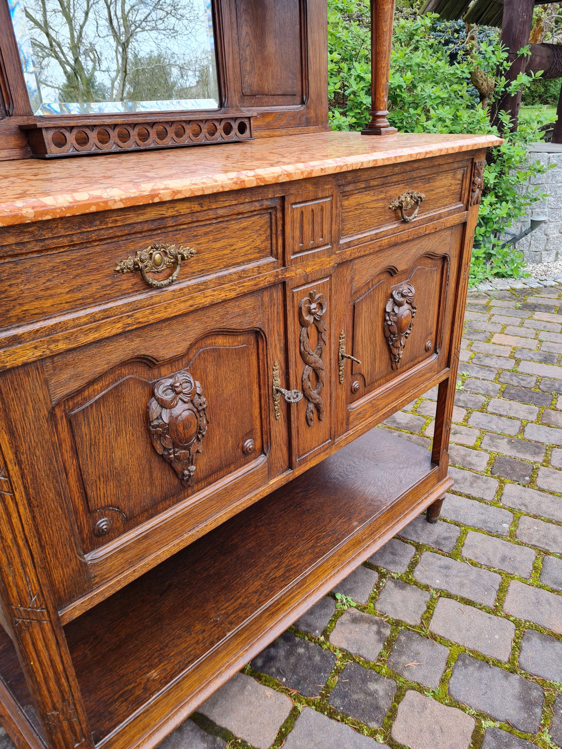 Старый древний угловой буфет с мрамором