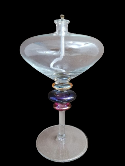 Старая лампа / оливковая подсвечника, сделанная вручную из массового окрашенного в массе, Германия 70 -х годов 20 -го века, фитиль заменяется, устанавливается в стеклянной раме
