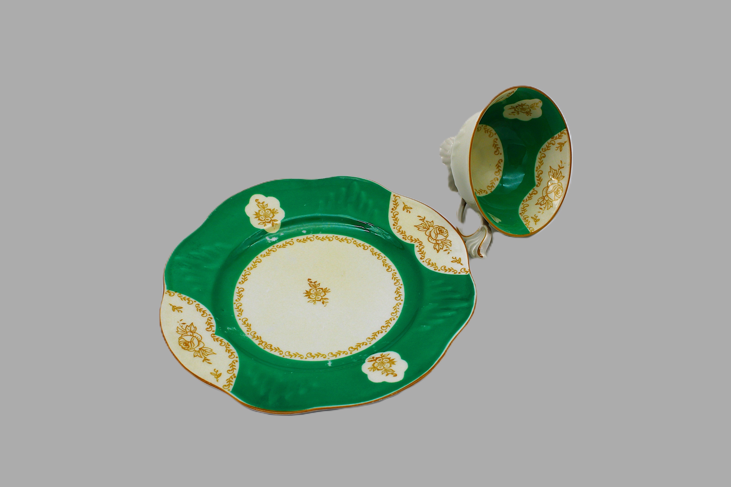 Старая древняя фарфоровая чашка + десертная пластина h1> Фарфоровой Tillowitz - Tułowice 1920 - 1945 h1>