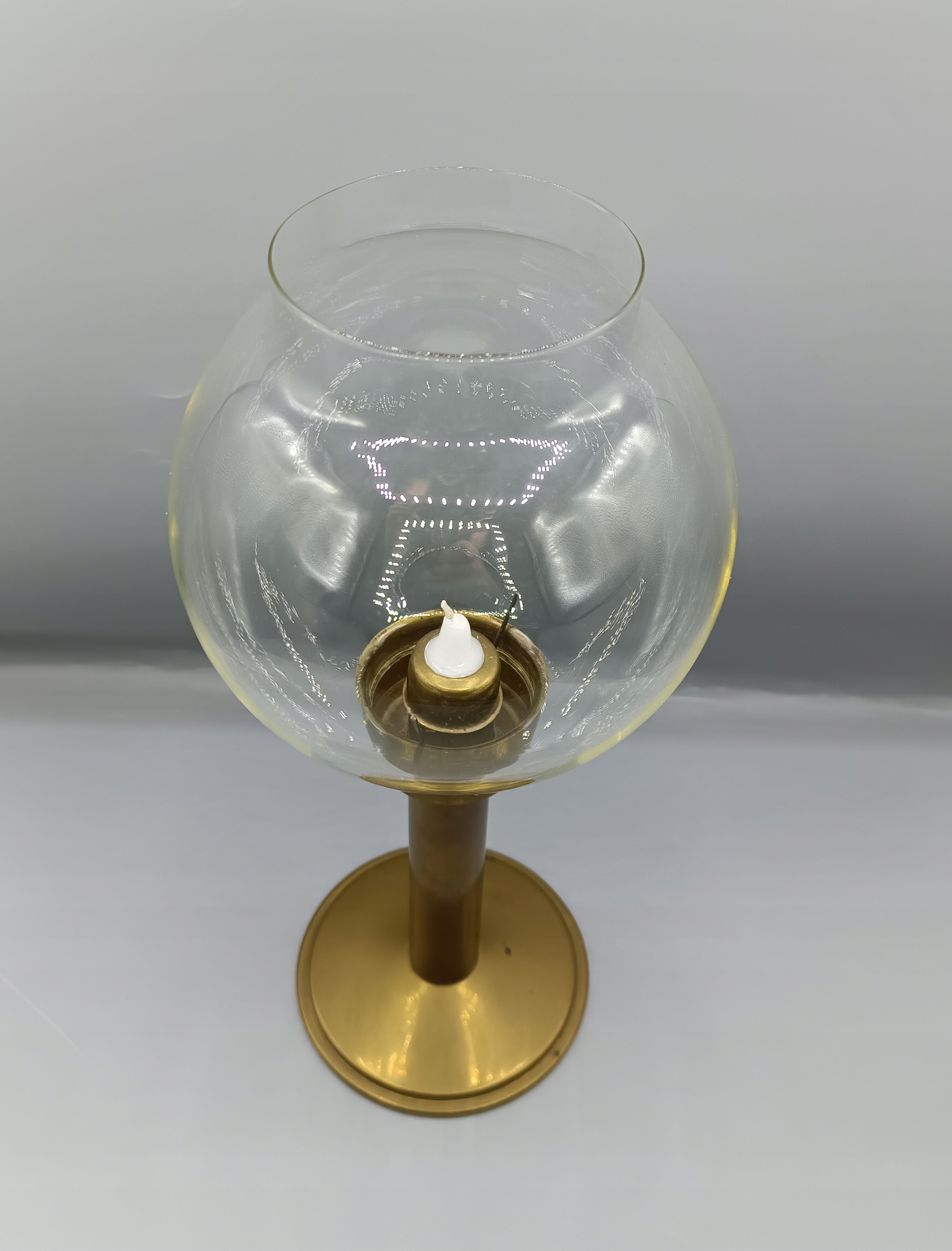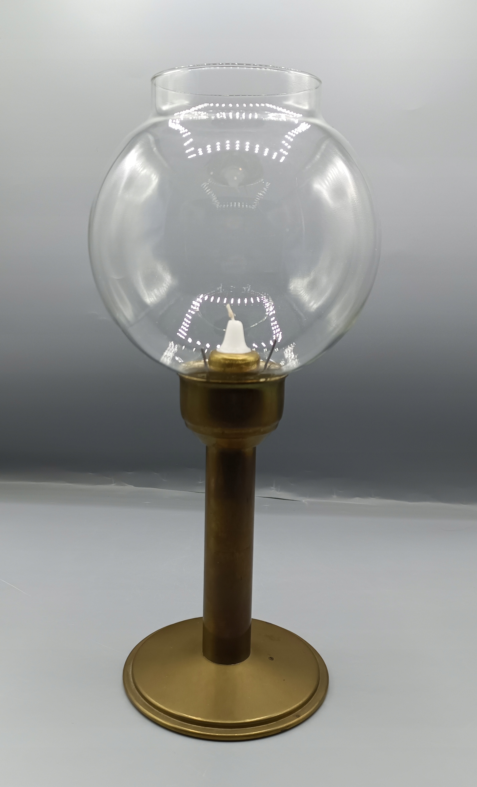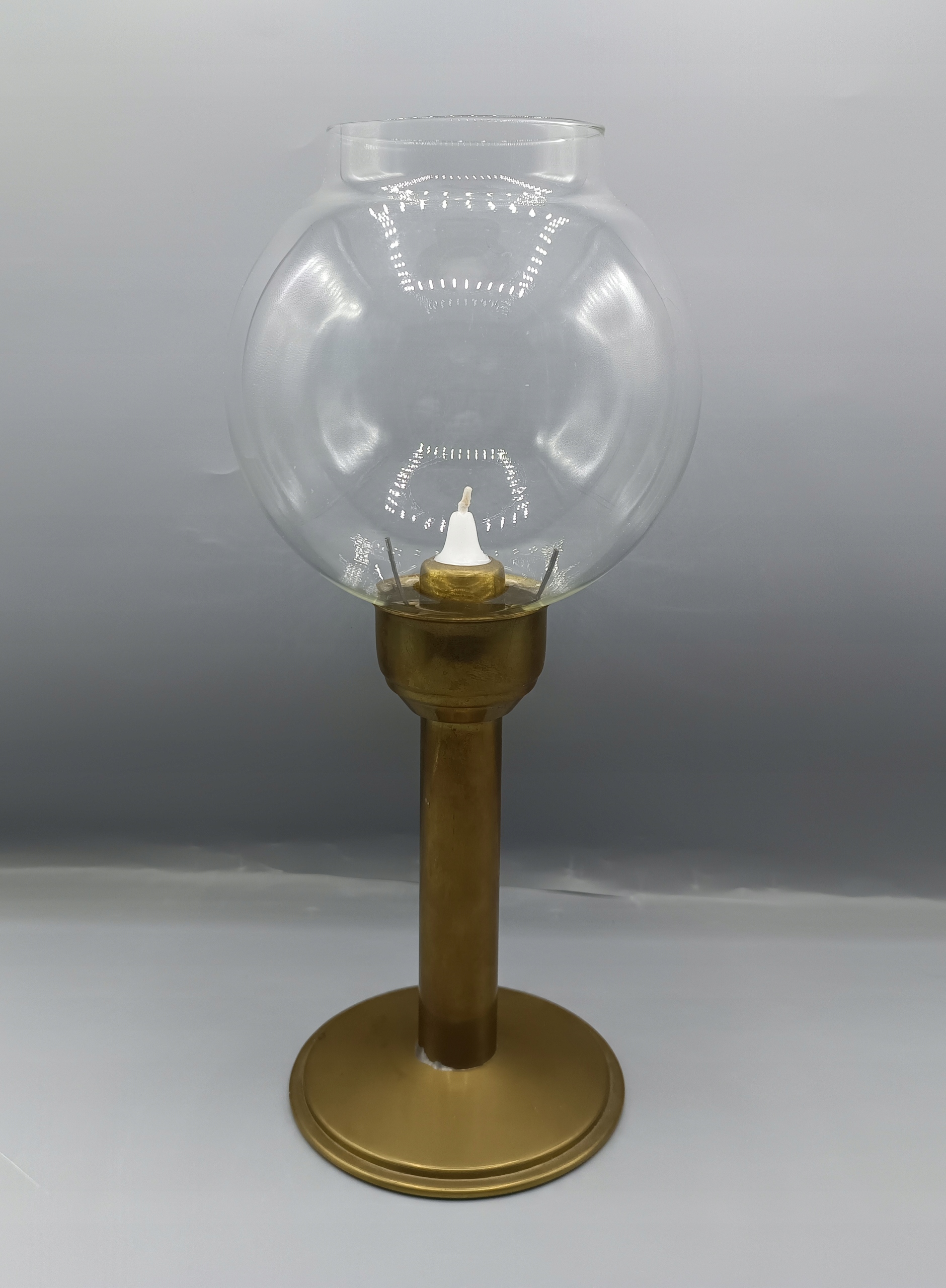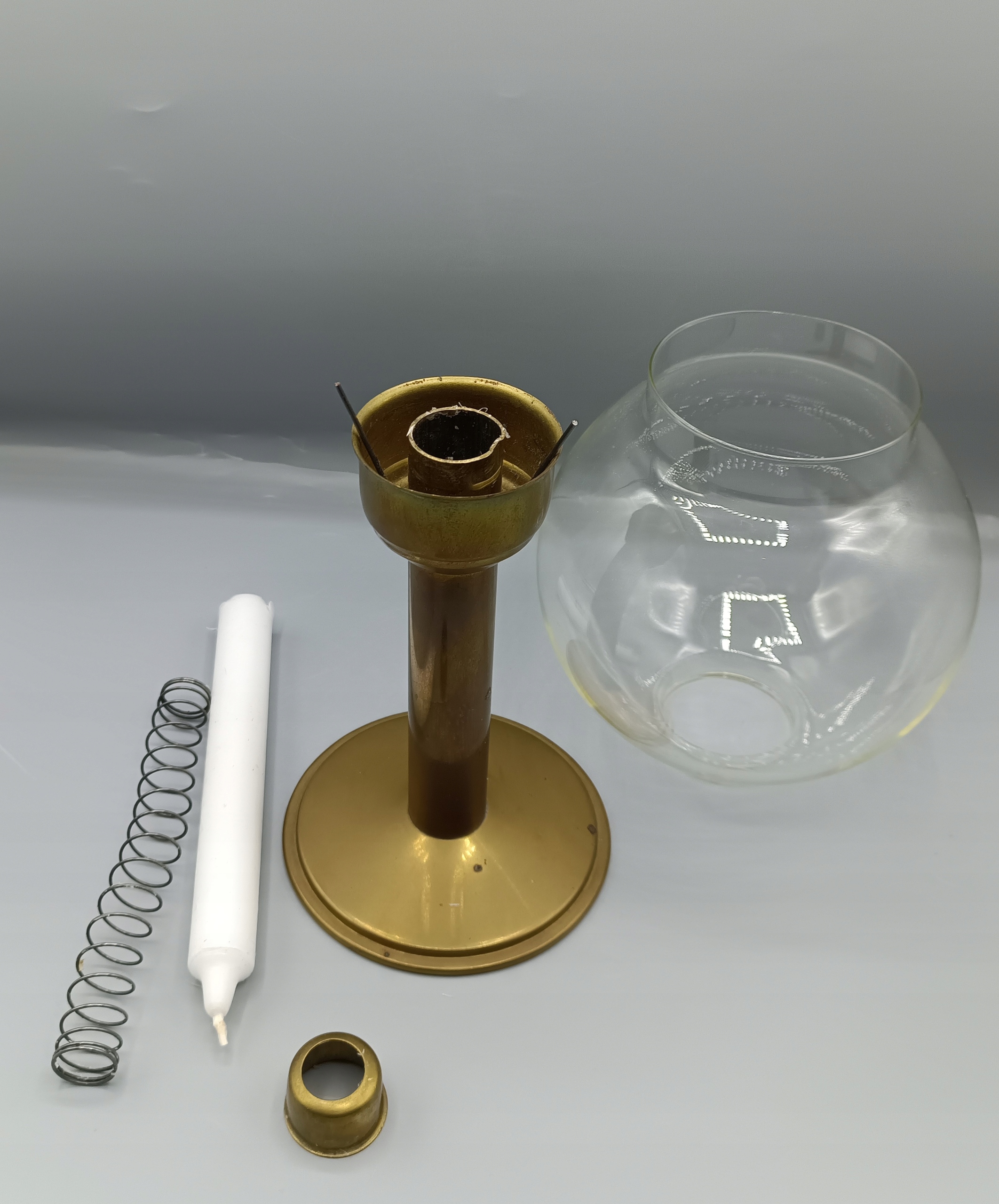 - очень интересный необычный подсвечник, выглядит как масляная лампа и находится на обычной свече. Внутри медной трубки есть пружина, в то время как свеча горит вверх! Вся нога с основанием сделана из латуни, красивого стеклянного абажура без недостатков. Очень хорошая старая вещь, утилитарная и коллекционера, я рекомендую