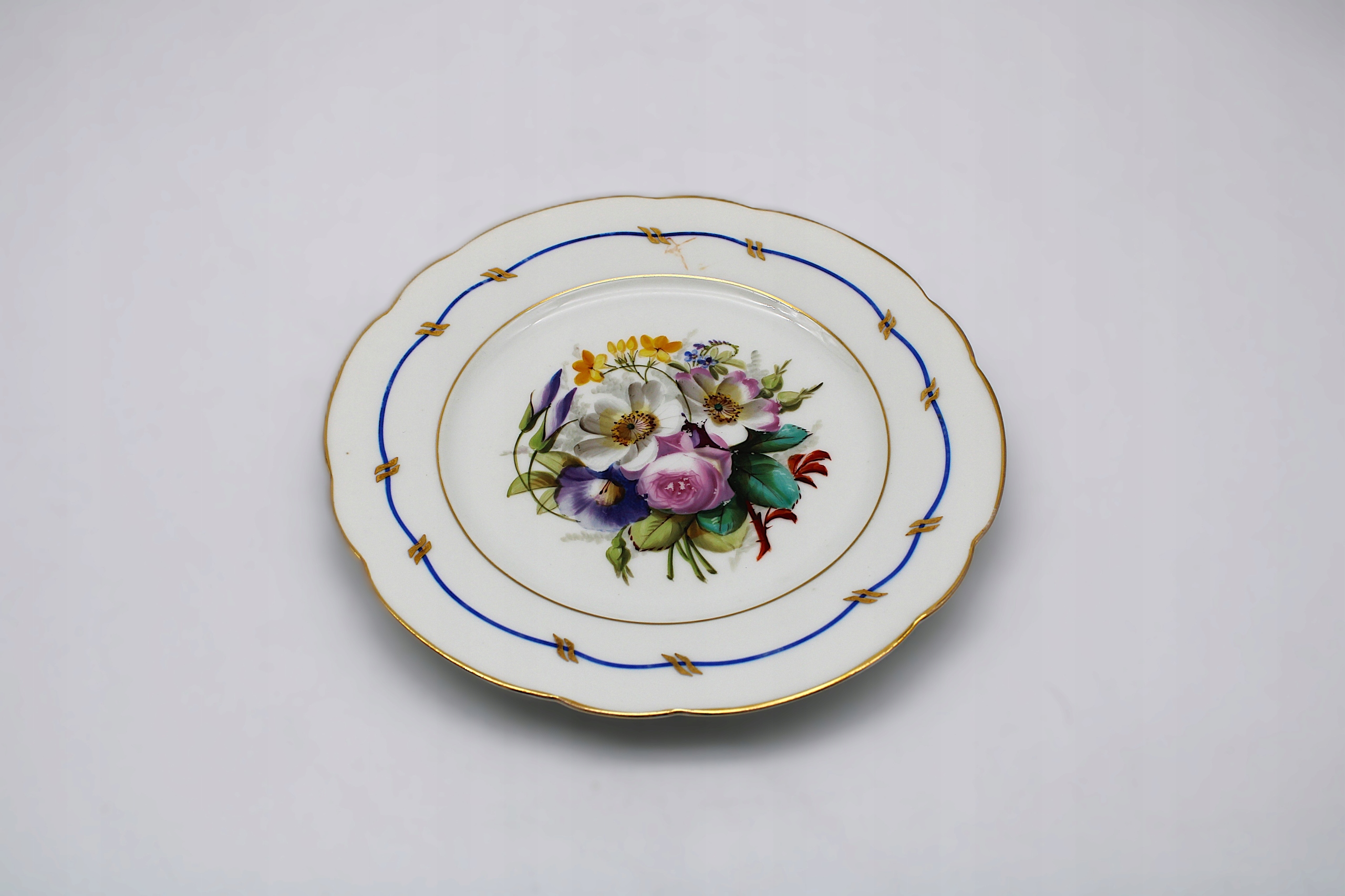 Я рекомендую старую древнюю пластину, ручную фарфору примерно с 1900 года, Старая Силезия? Состояние, как на сканировании, имеет только естественные временные ссадины на малаку на цветах. Позолота и 100 % оригинальная живопись