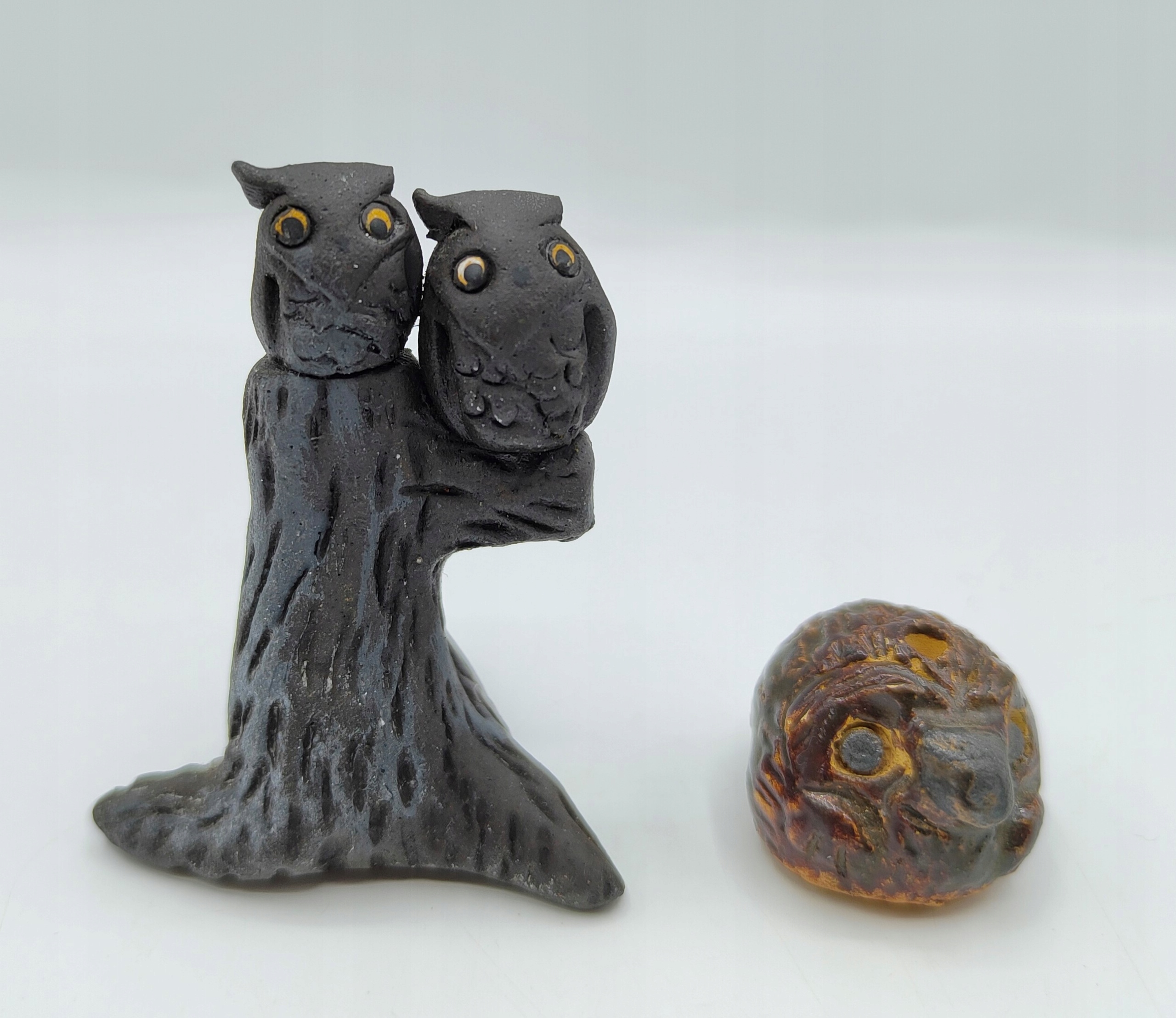 Starodawne ręcznie wykonane z gliny malutkie SÓWKI