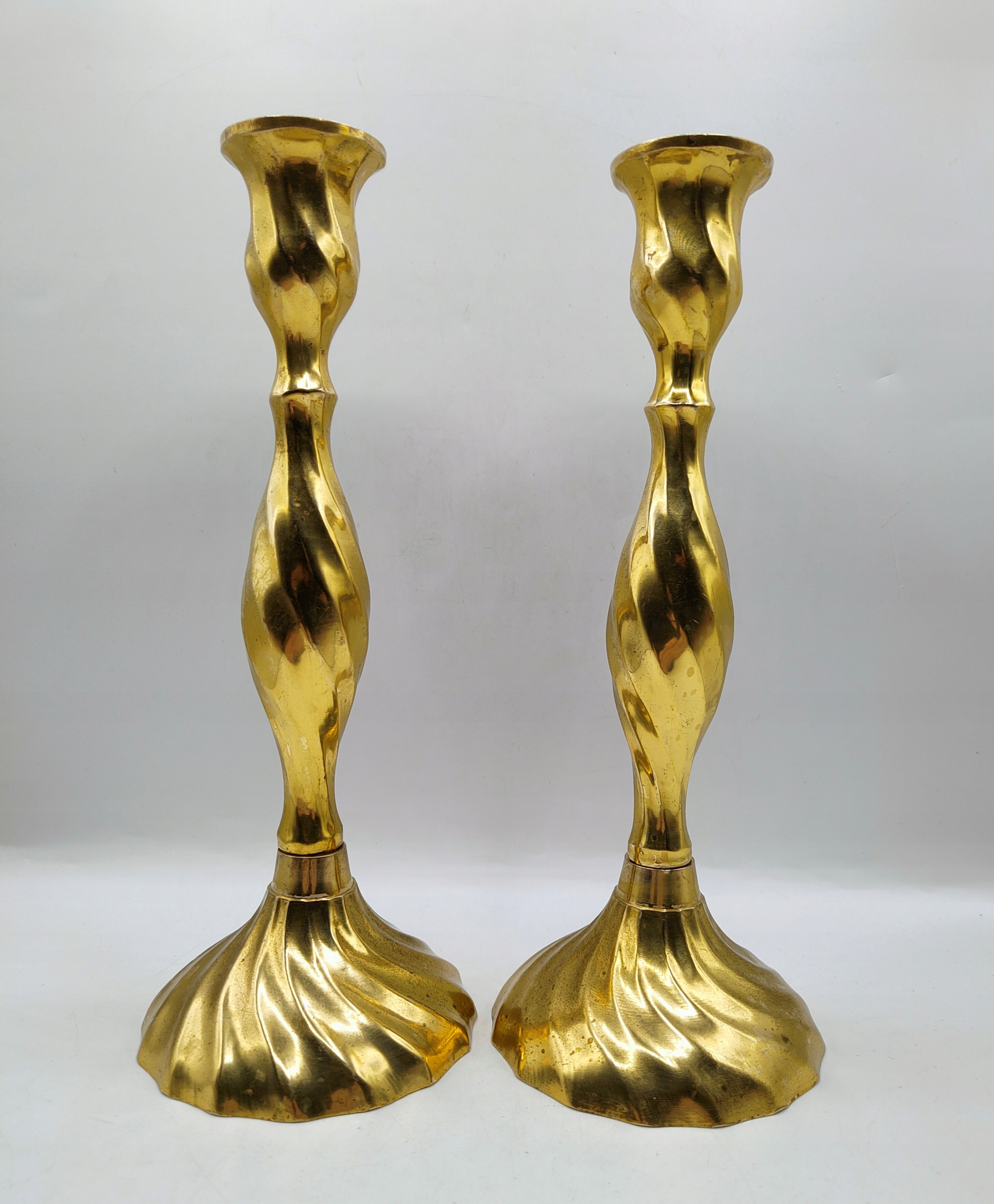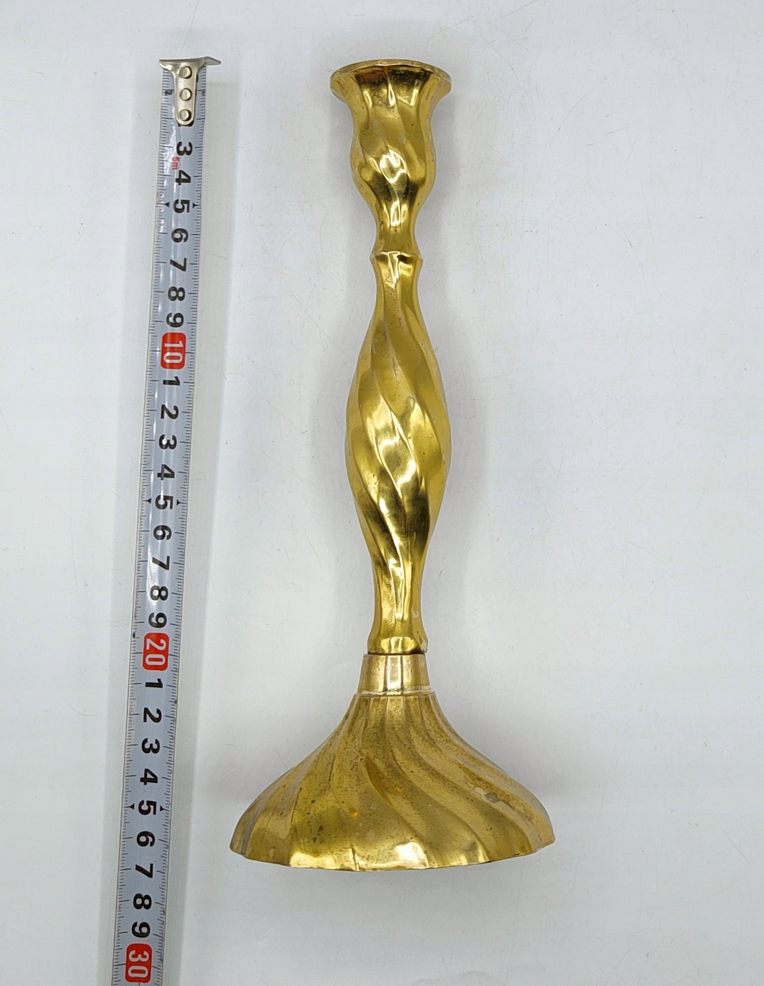 Антикварный СТАРЫЙ латунный ПОДСВЕЧНИК, красиво скрученный, большой 25 см, 1 из 2 "А"