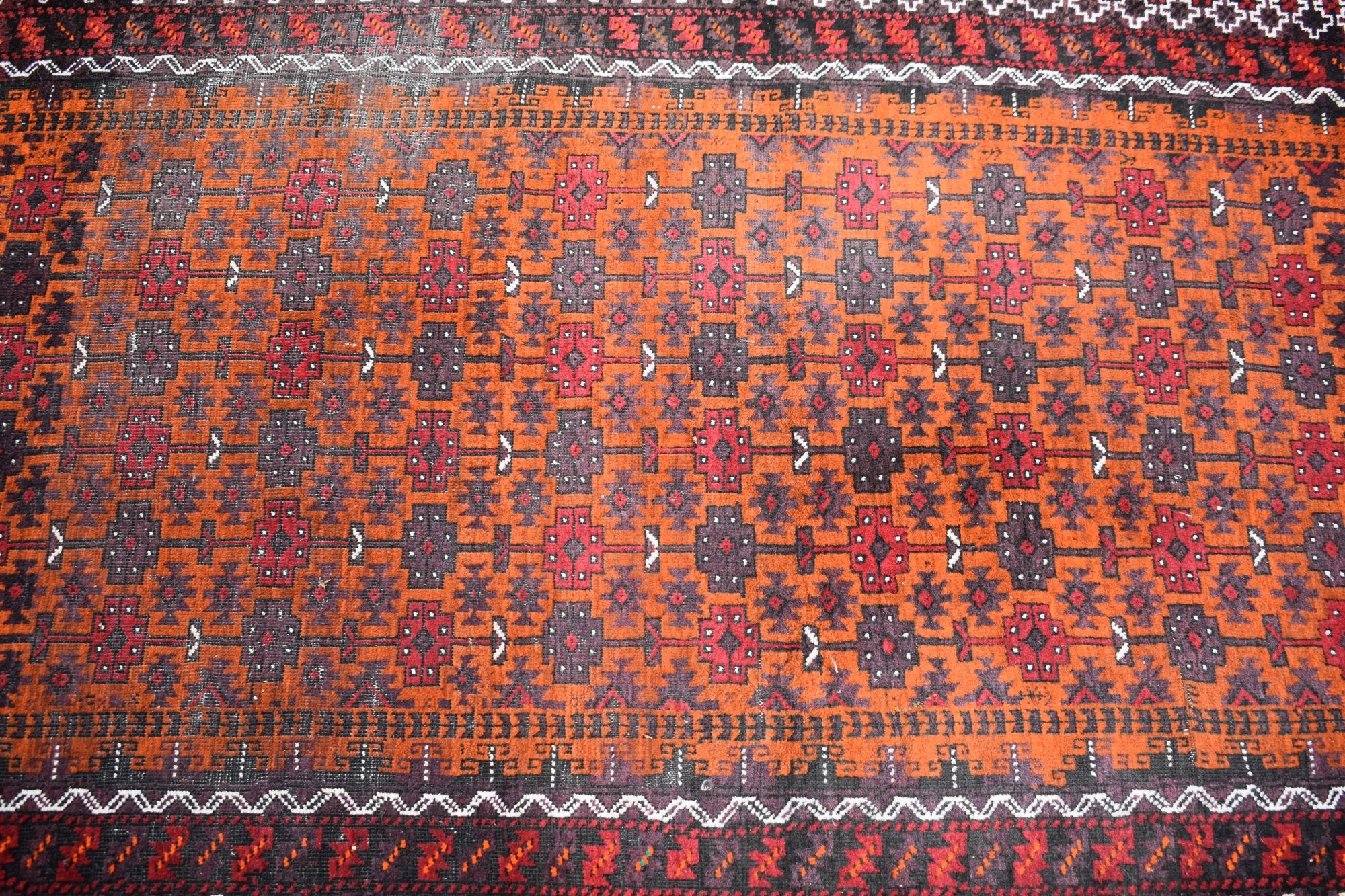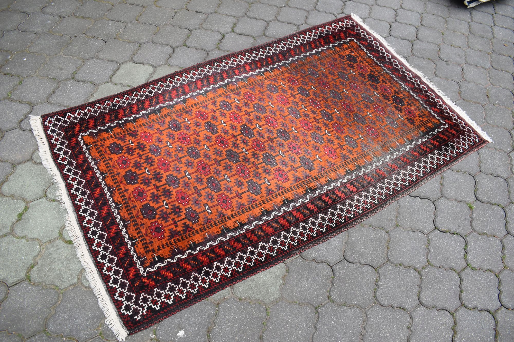 Состояние: Ковер в хорошем состоянии, учитывая его возраст - винтаж - нет дырки, дефекты, неприятный запах. Бахрома слегка повреждена.