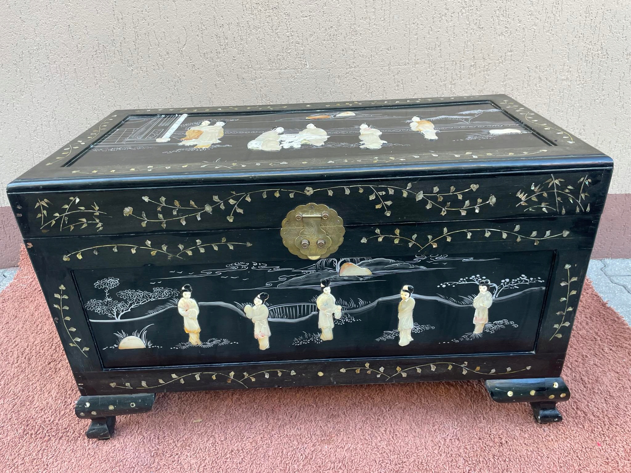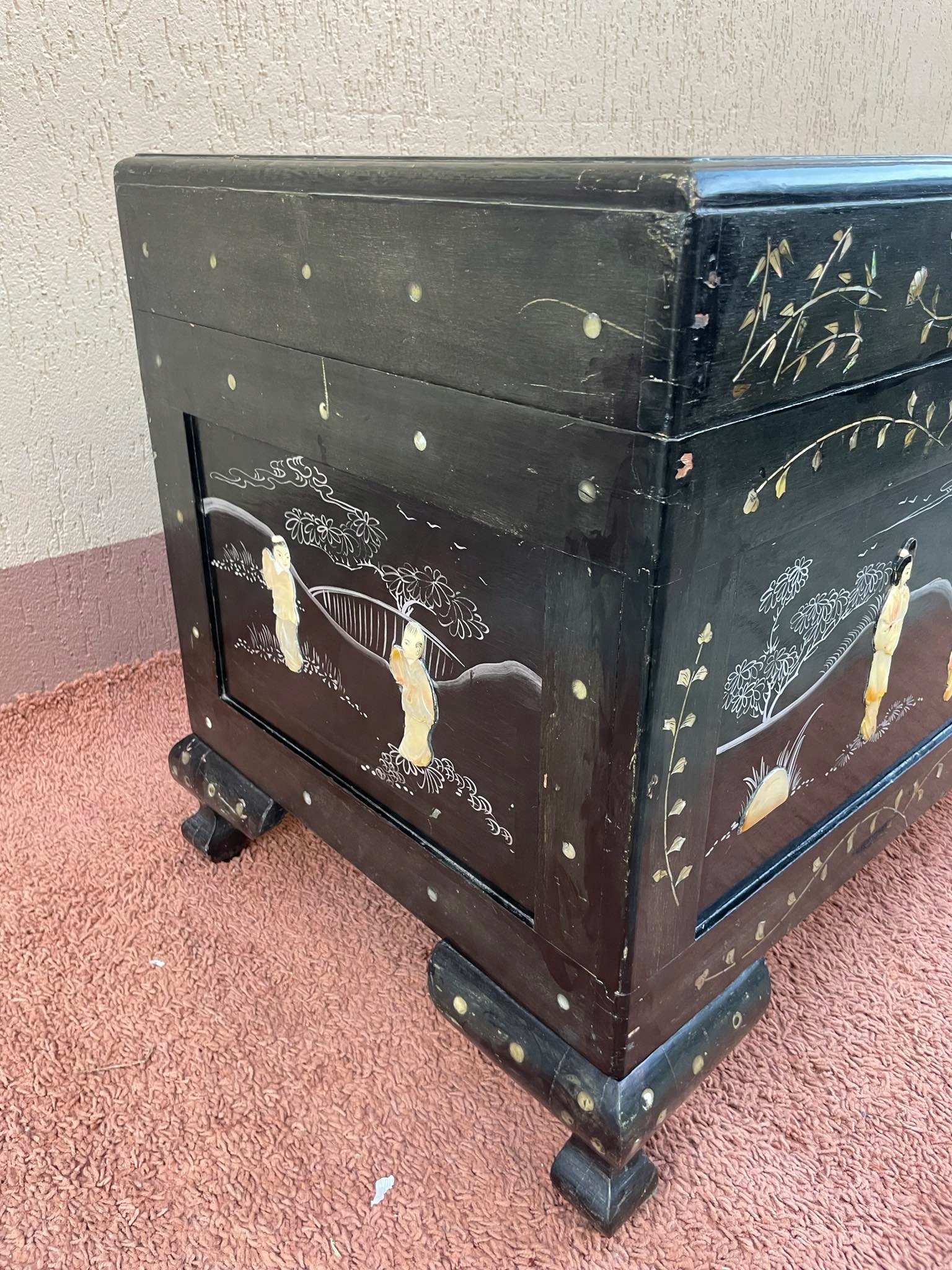 СТАРОВИЙ СХІДНИЙ СКРИНЯ З КИТАЙСЬКИМИ МОТИВАМИ З лаком і перламутром