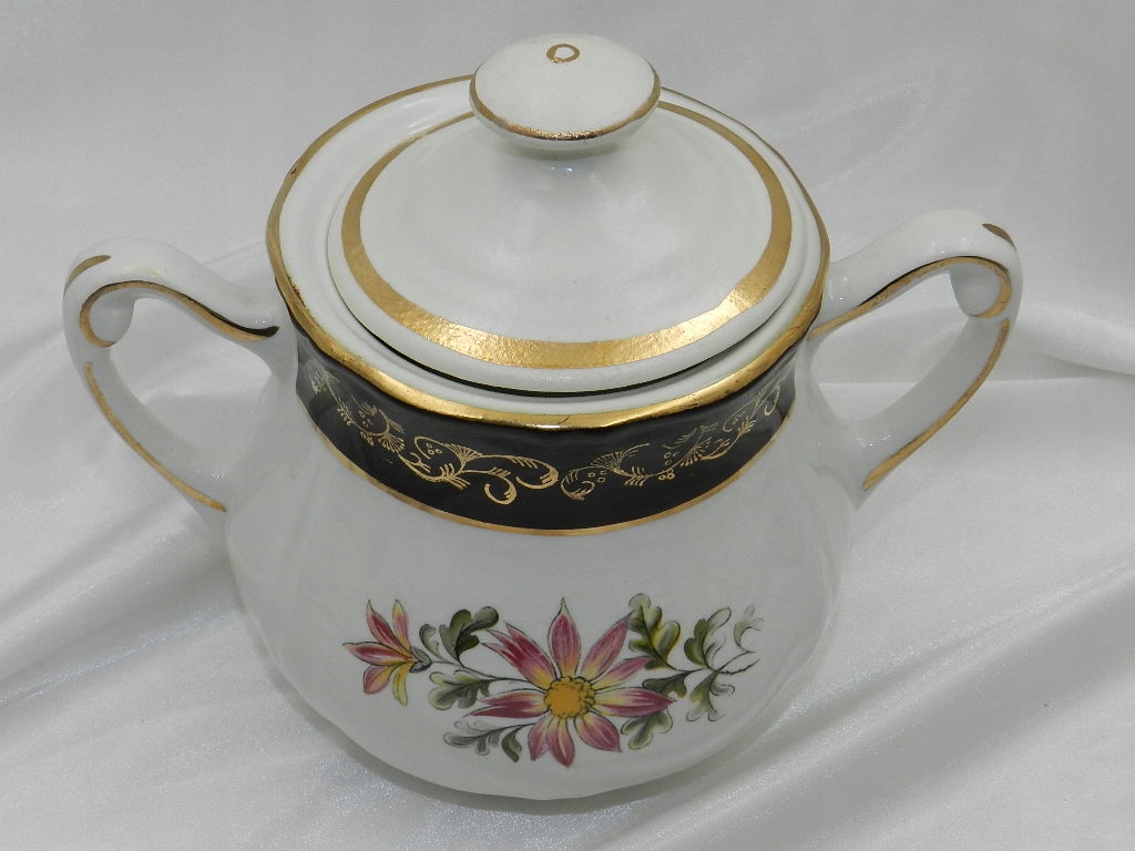 Украшен полосой черной росписи с тонкой позолотой в форме полос.