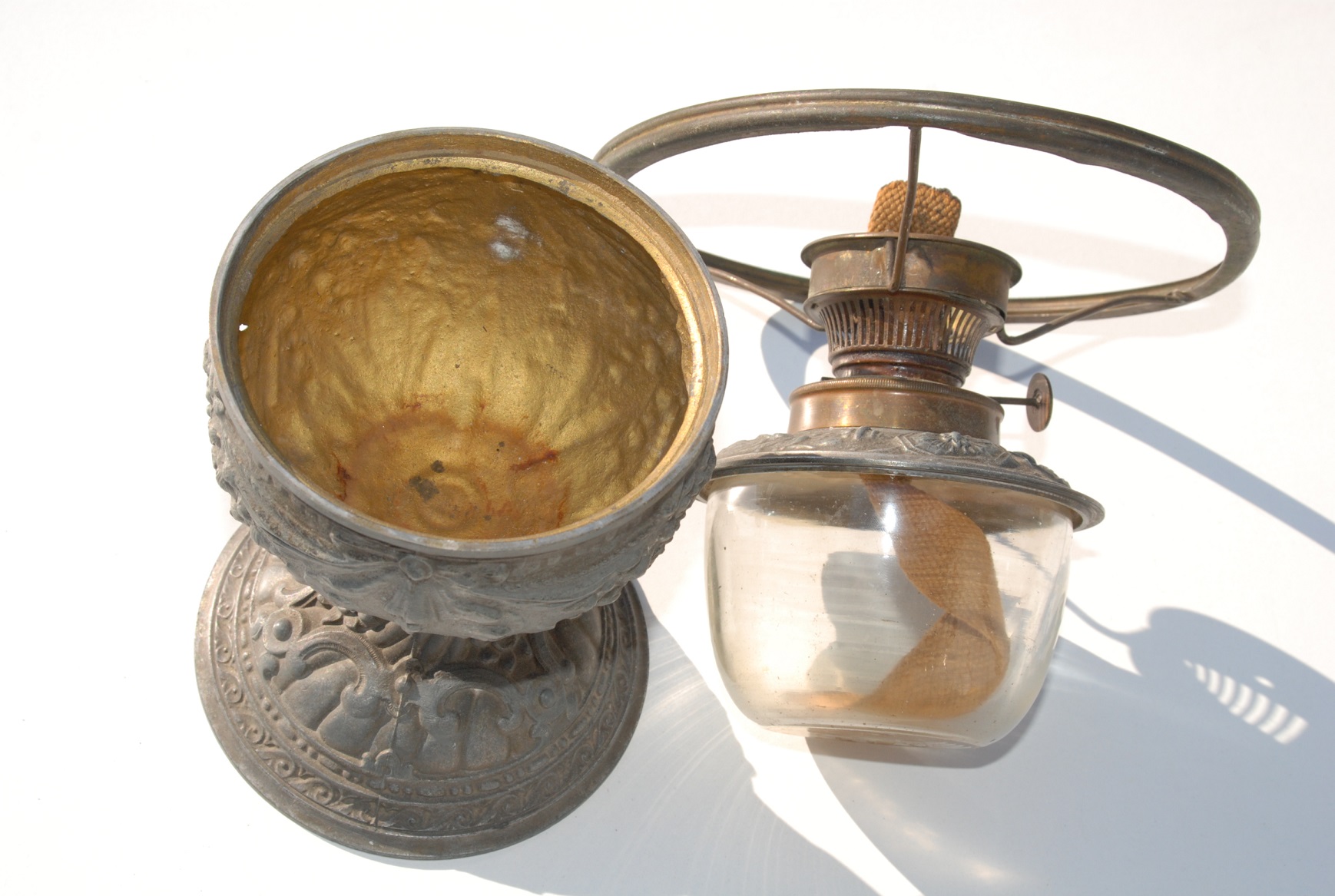 Старый алюминиевая масляная лампа Античный коллектор памятник