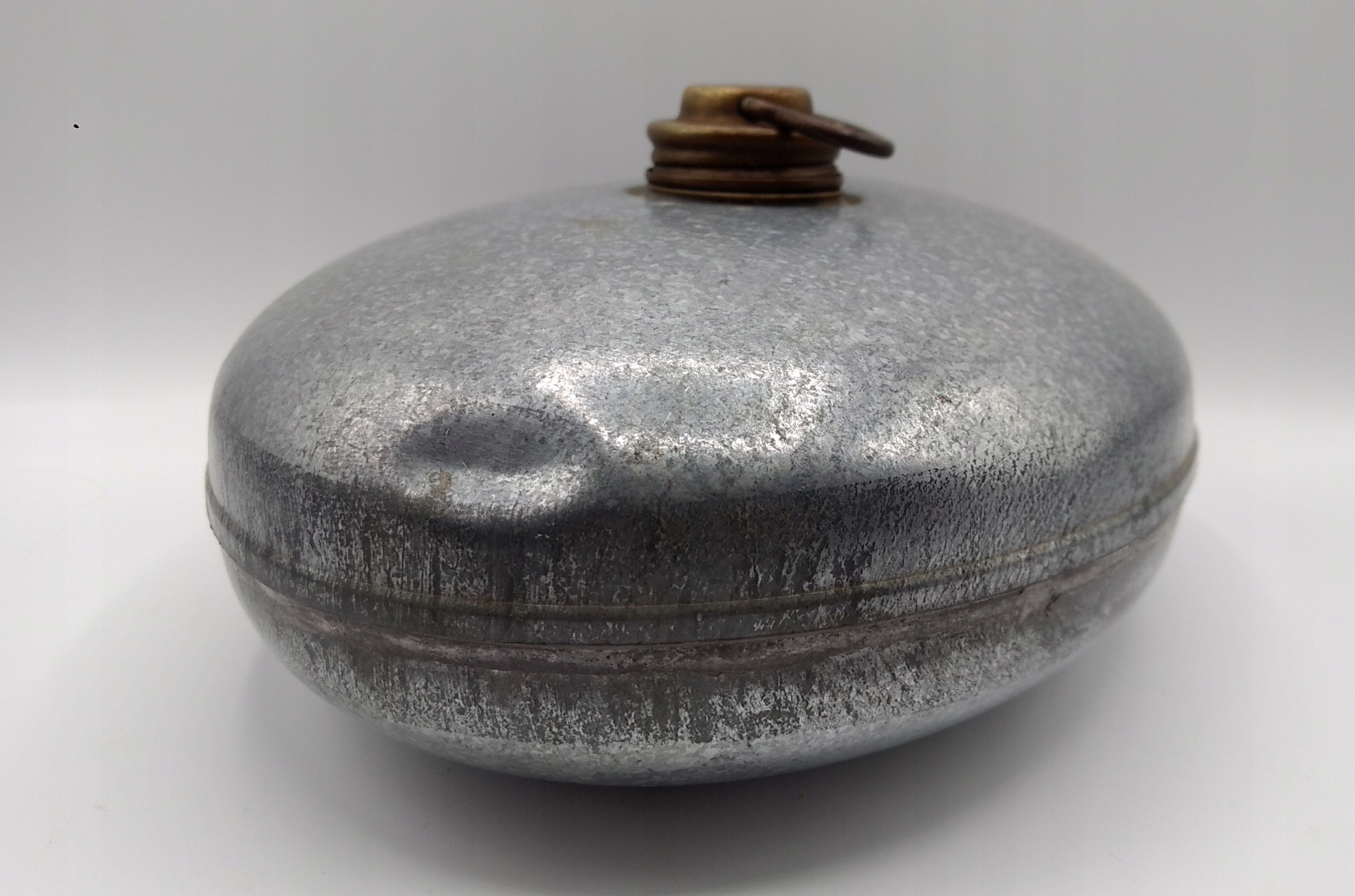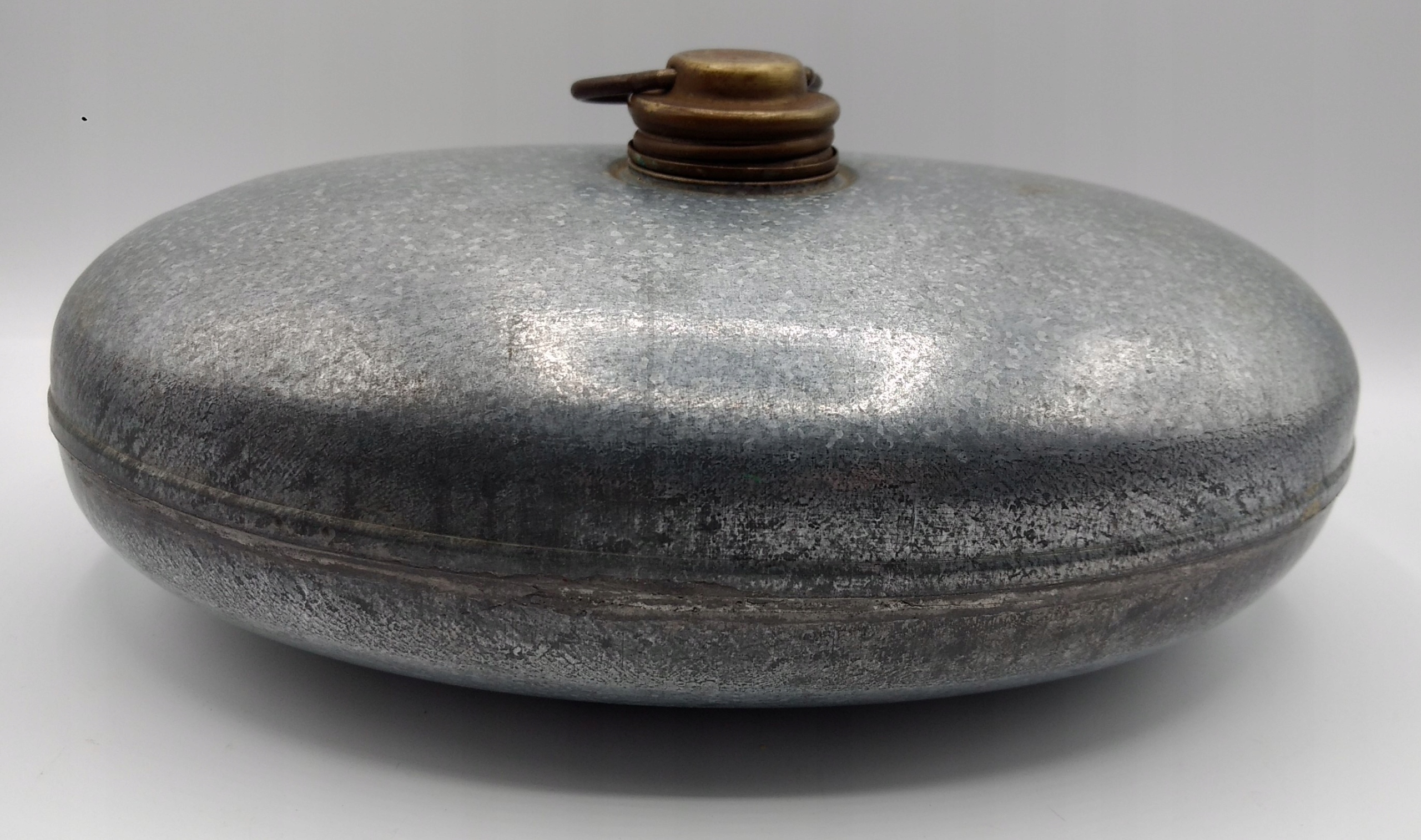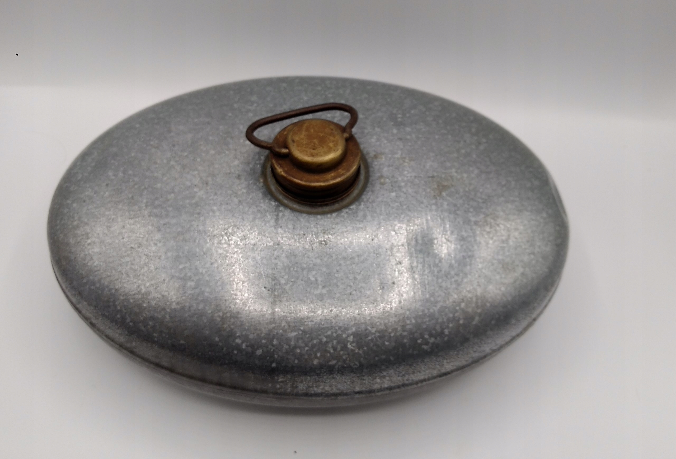 Размеры: 27см/12см/12см, вес около 0,6 кг, вместимость более 3 литров. j изготовлен из оцинкованного листового металла, пробка медная, все очень прочное, бутылочка внутри герметичная, чистая и без запаха (предполагаю, что ни разу не использовалась). Состояние как на фотографиях (три небольшие вмятины - которые не влияют на функциональность грелки, а только добавляют ей очарования.