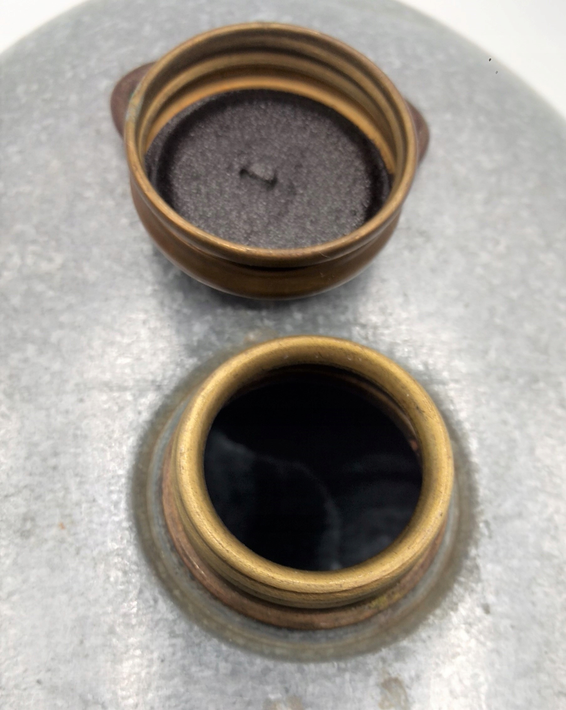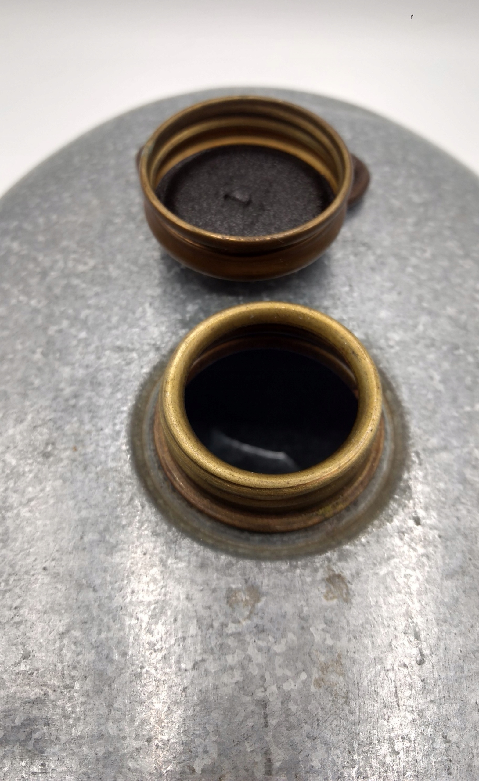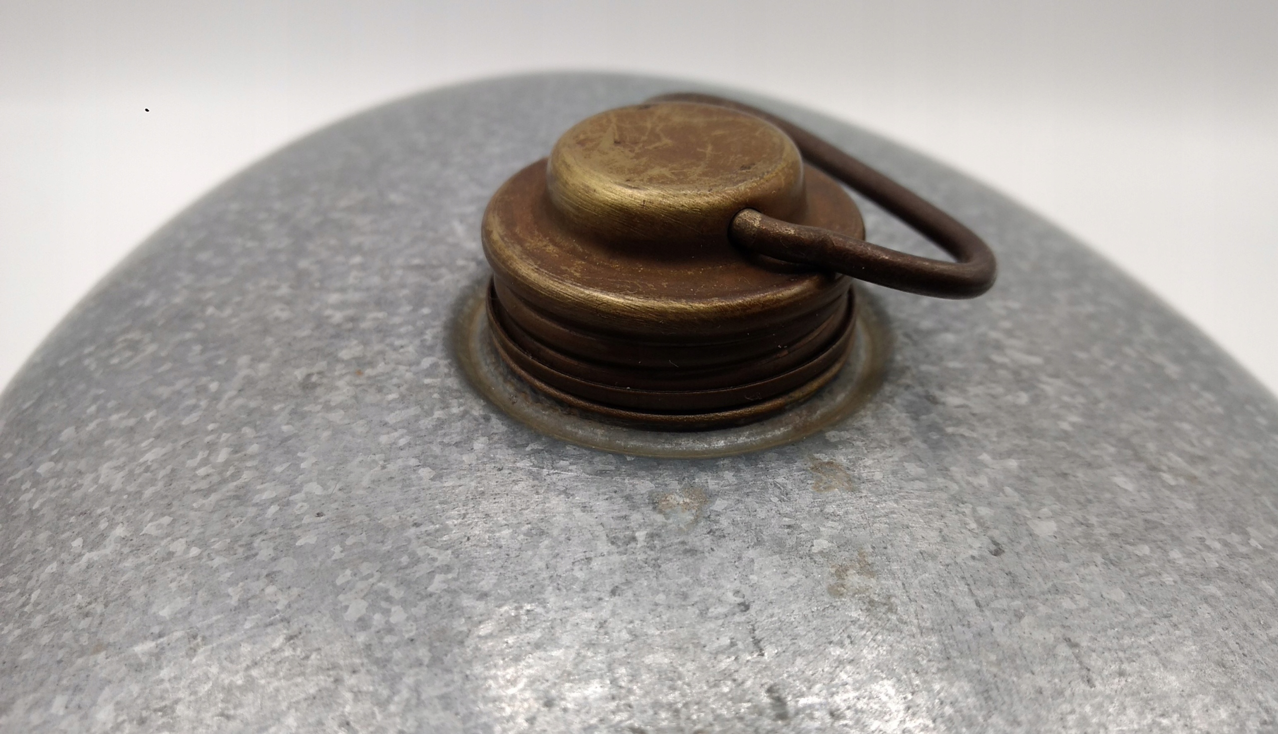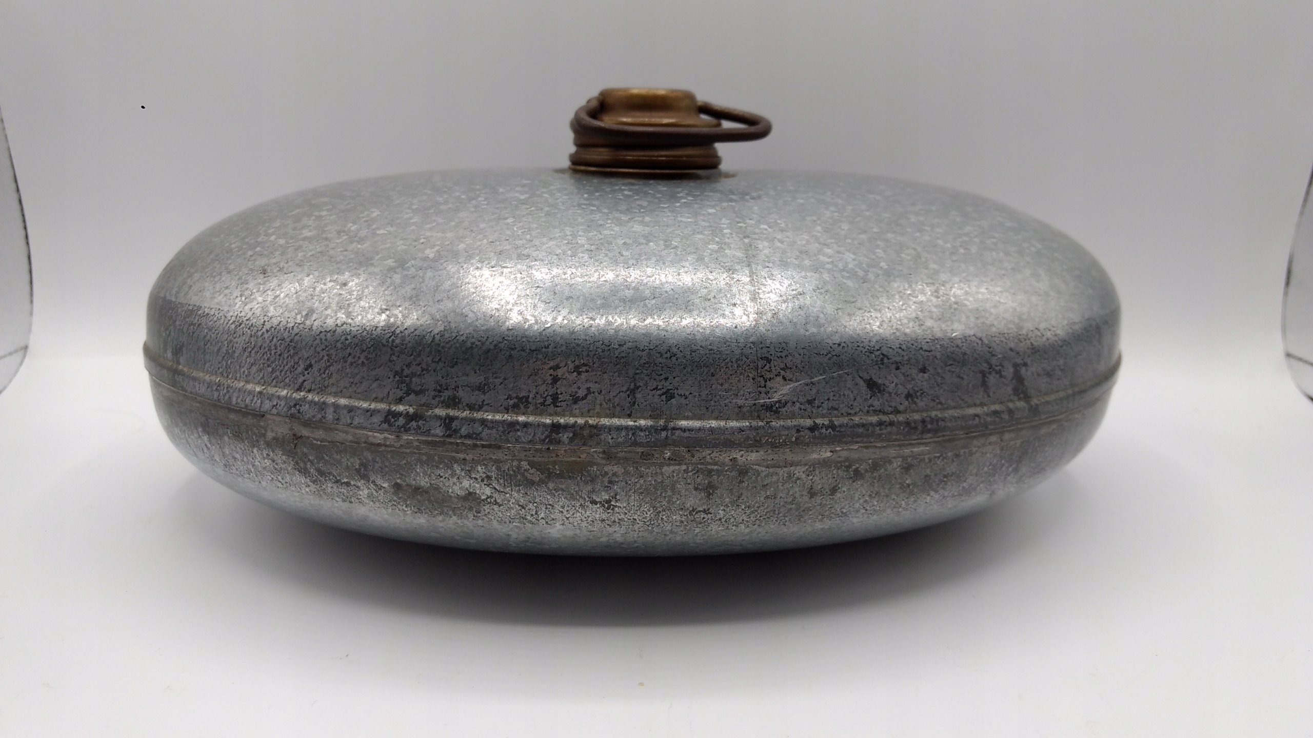 Размеры: 27см/12см/12см, вес около 0,6 кг, вместимость более 3 литров. j изготовлен из оцинкованного листового металла, пробка медная, все очень прочное, бутылочка внутри герметичная, чистая и без запаха (предполагаю, что ни разу не использовалась). Состояние как на фотографиях (три небольшие вмятины - которые не влияют на функциональность грелки, а только добавляют ей очарования.