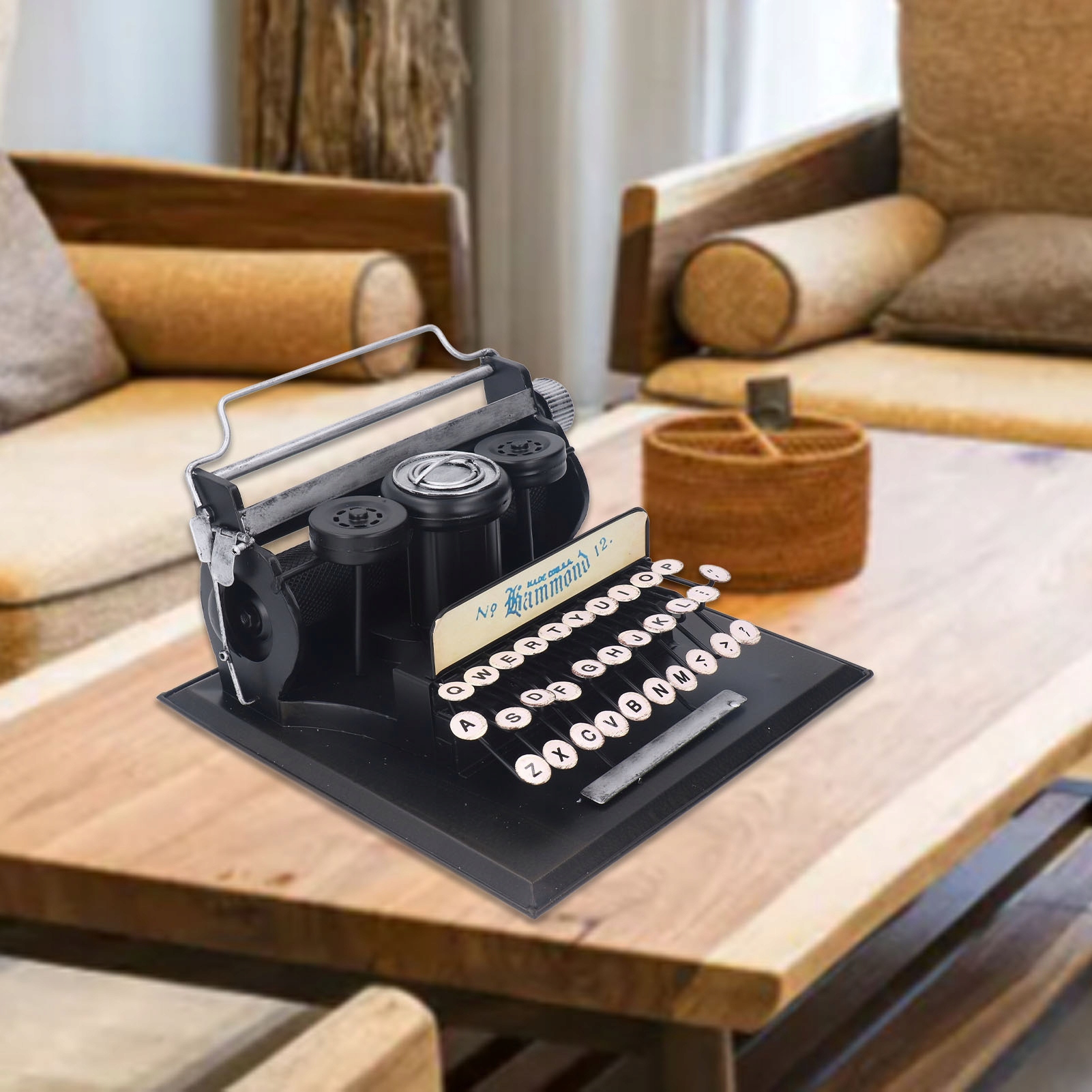 1. РУЧНАЯ РАБОТА: старинная пишущая машинка была изготовлена вручную с особым вниманием к деталям, включая ручную полировку и антикварную обработку, что придает ей современный, но в то же время винтажный и художественный вид.