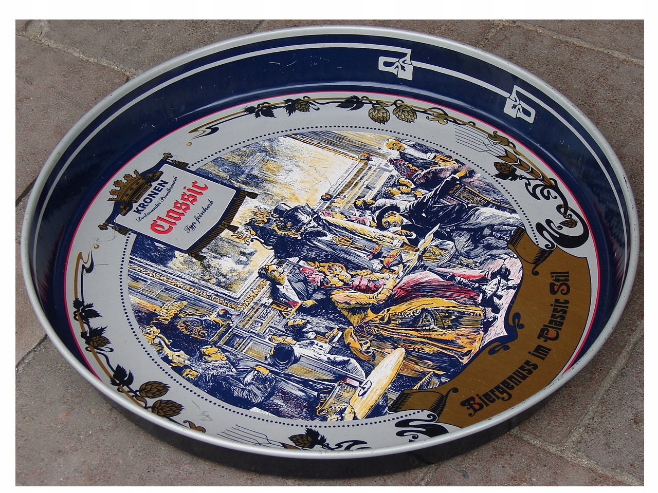 Vintage - оловянный поднос для рекламы пива Kronen Classic