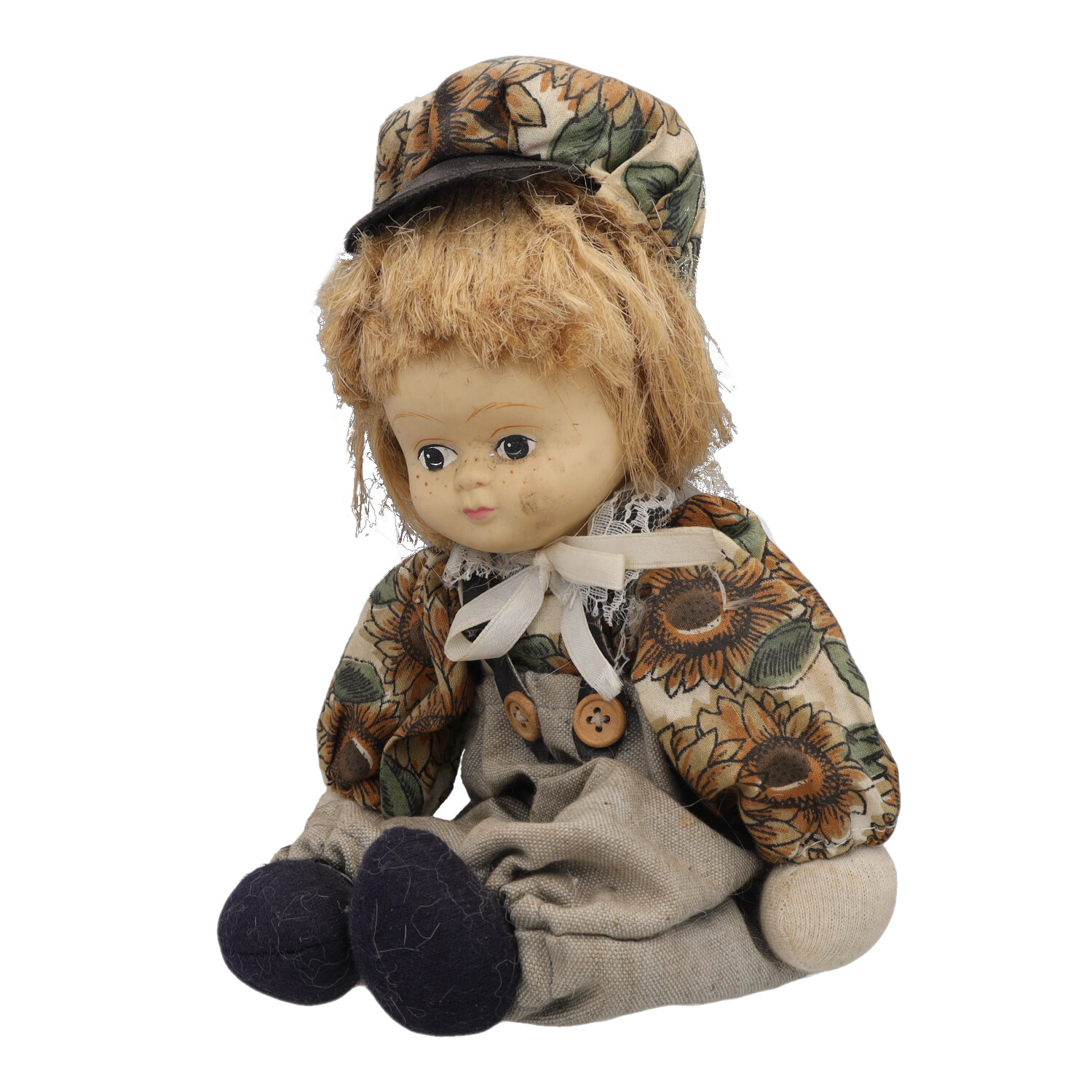 Кукла, вероятно, периода Польской Народной Республики. Фарфоровая голова. Ноги и руки, туловище ткань. Следы использования. Размеры: высота 27 см. Рекомендую коллекционерам