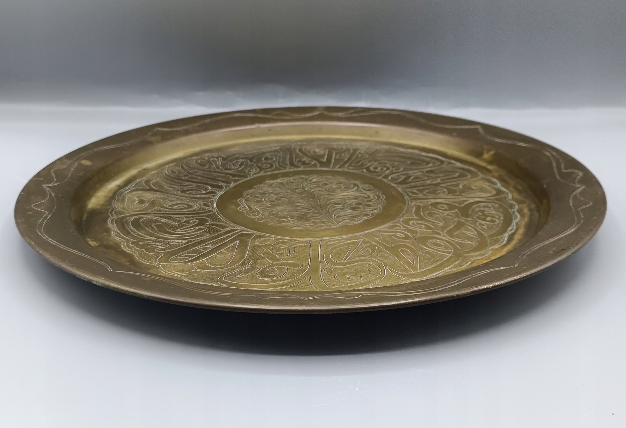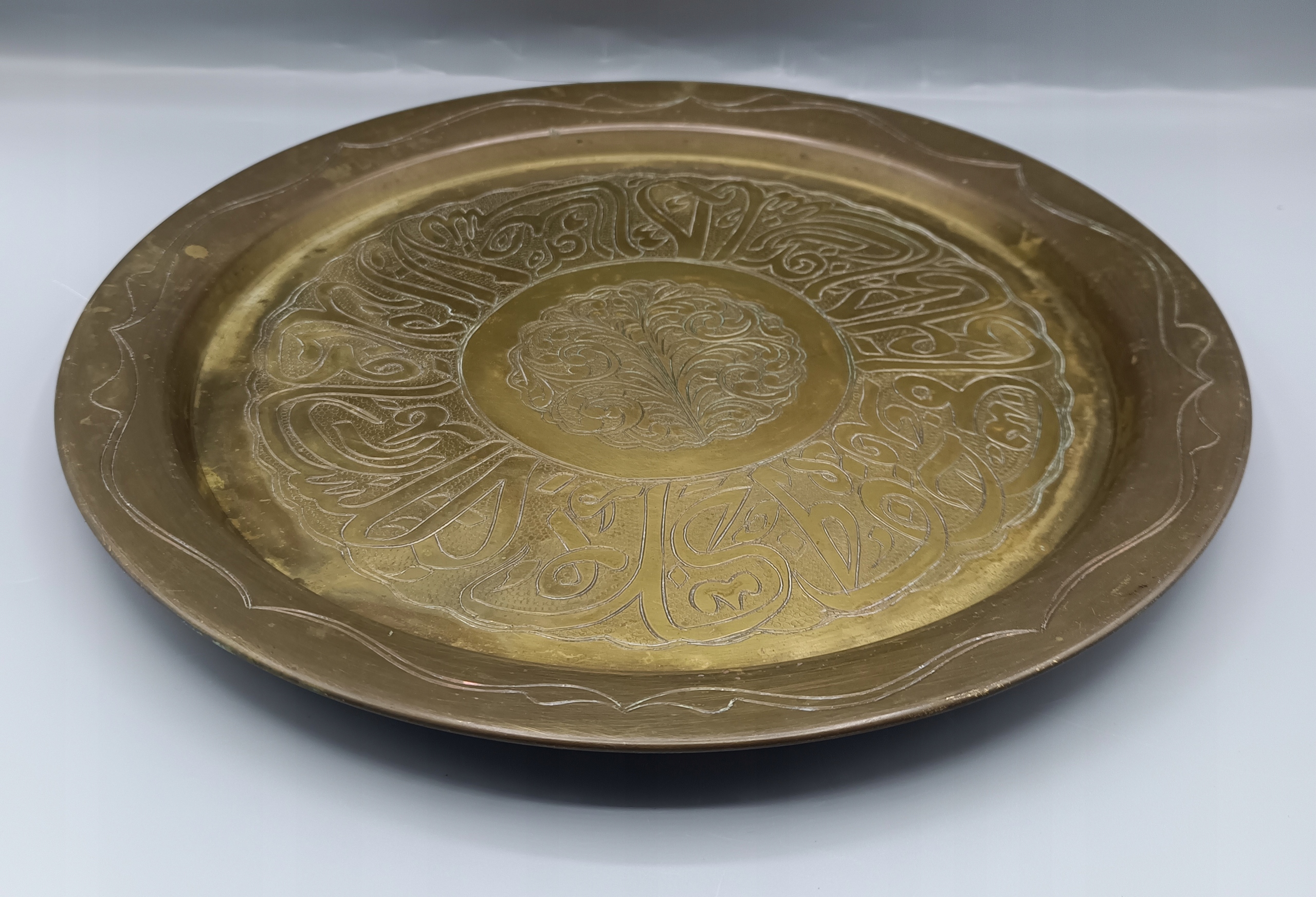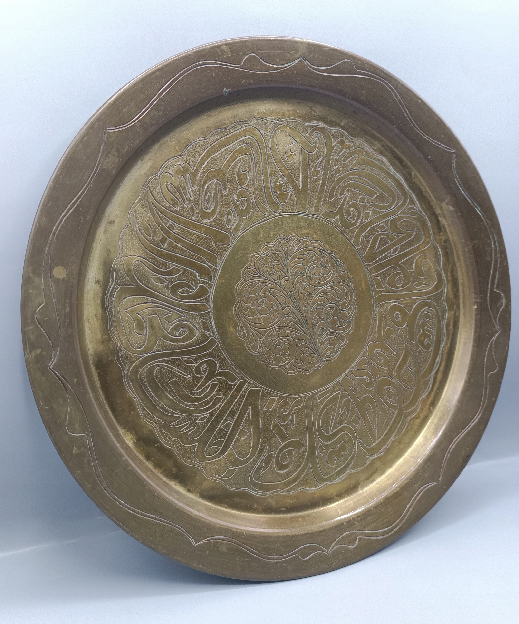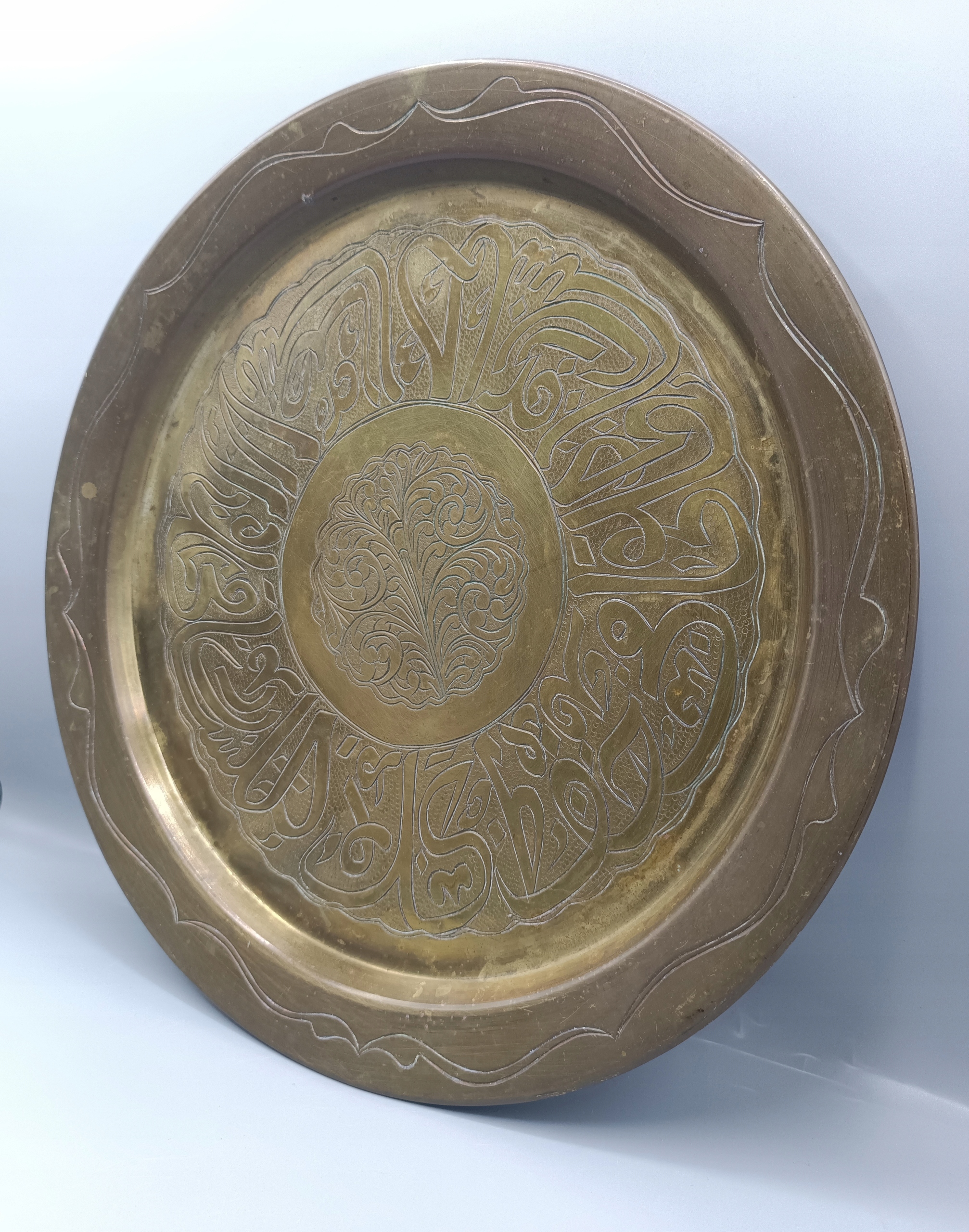 - Поднос, тарелка из латуни - ручной работы с гравированными арабскими надписями внутри!
