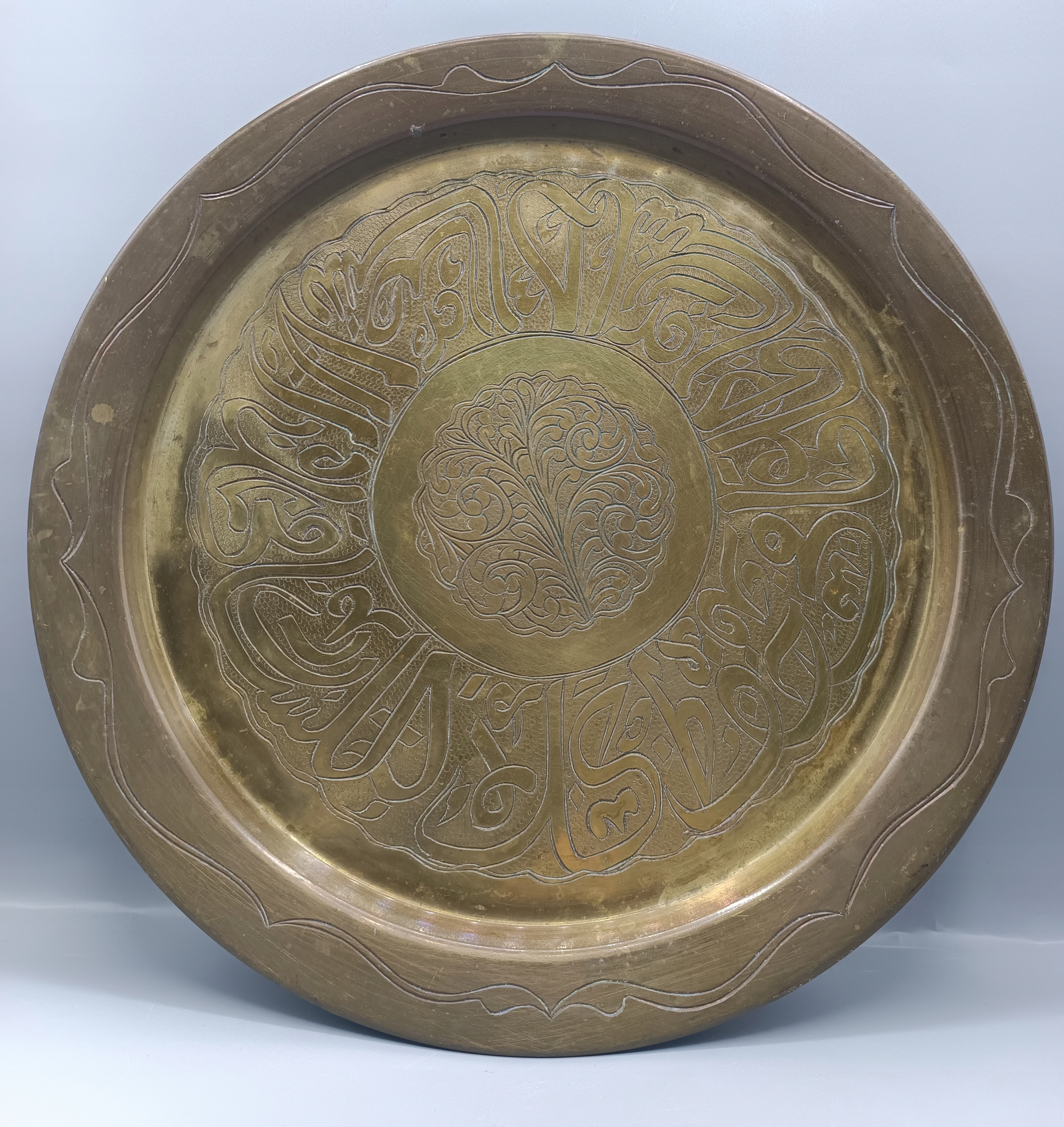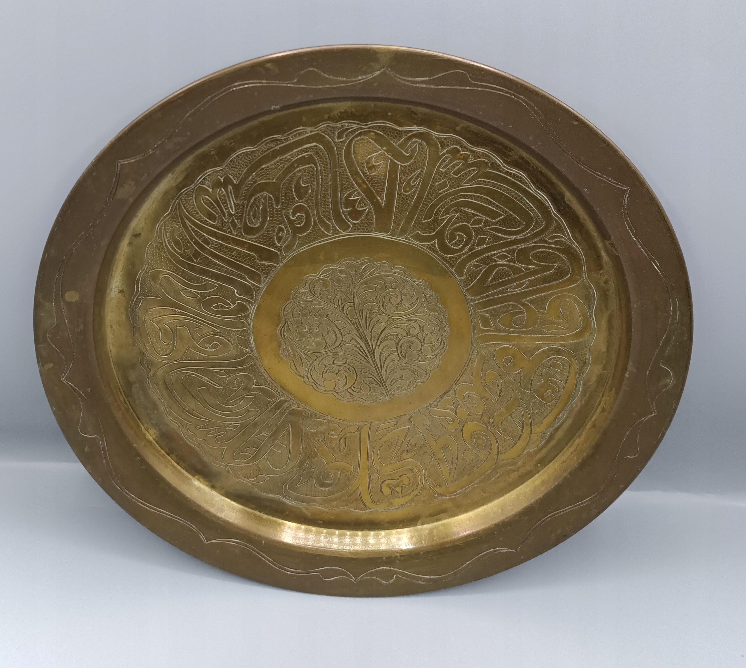 Винтажная старинная интересная латунная тарелка-поднос с арабскими надписями 29см