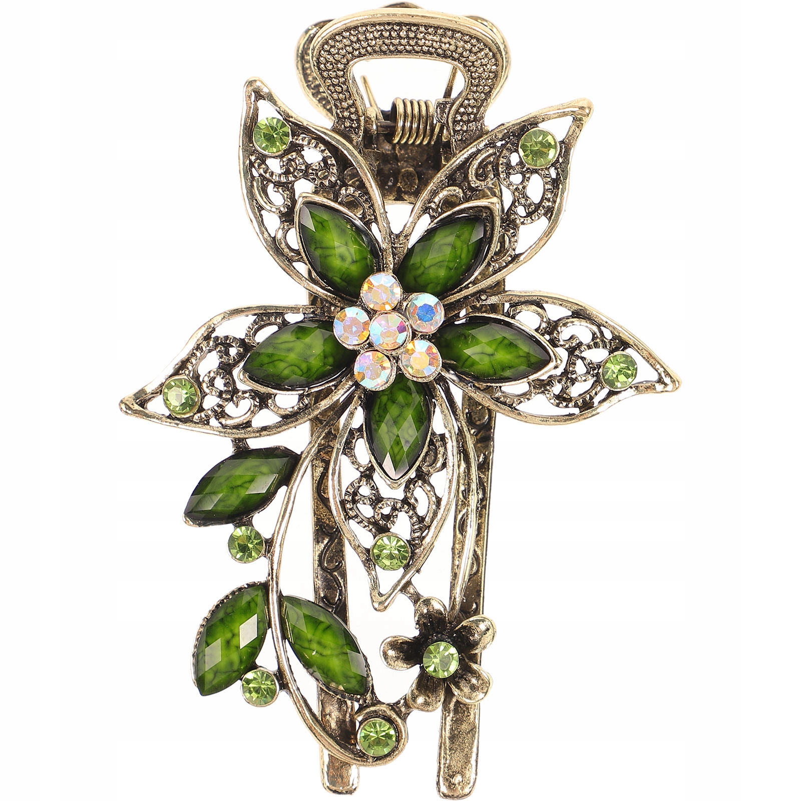 ✅1 x винтажные женские цветочные хрустальные запонки для волос Barrettes аксессуары для волос (зеленый) p>