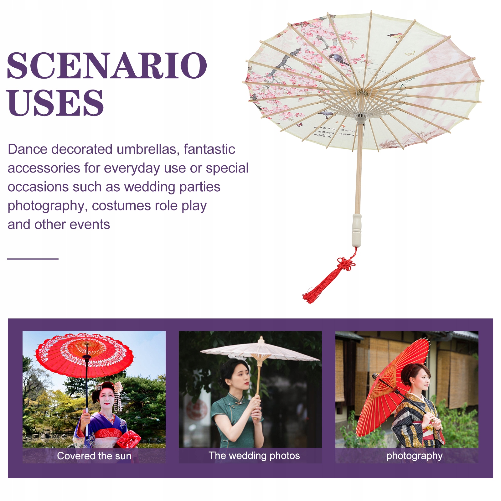 ✅ Это классический зонт нефтяной бумаги в китайском стиле. Комплексный зонт отлично подходит для украшения магазина. Широко используется во внутренних украшениях, сценическом украшении. Его можно использовать в качестве фотографической опоры, бумажного зонта или фестивального шоу традиционного китайского ремесла.