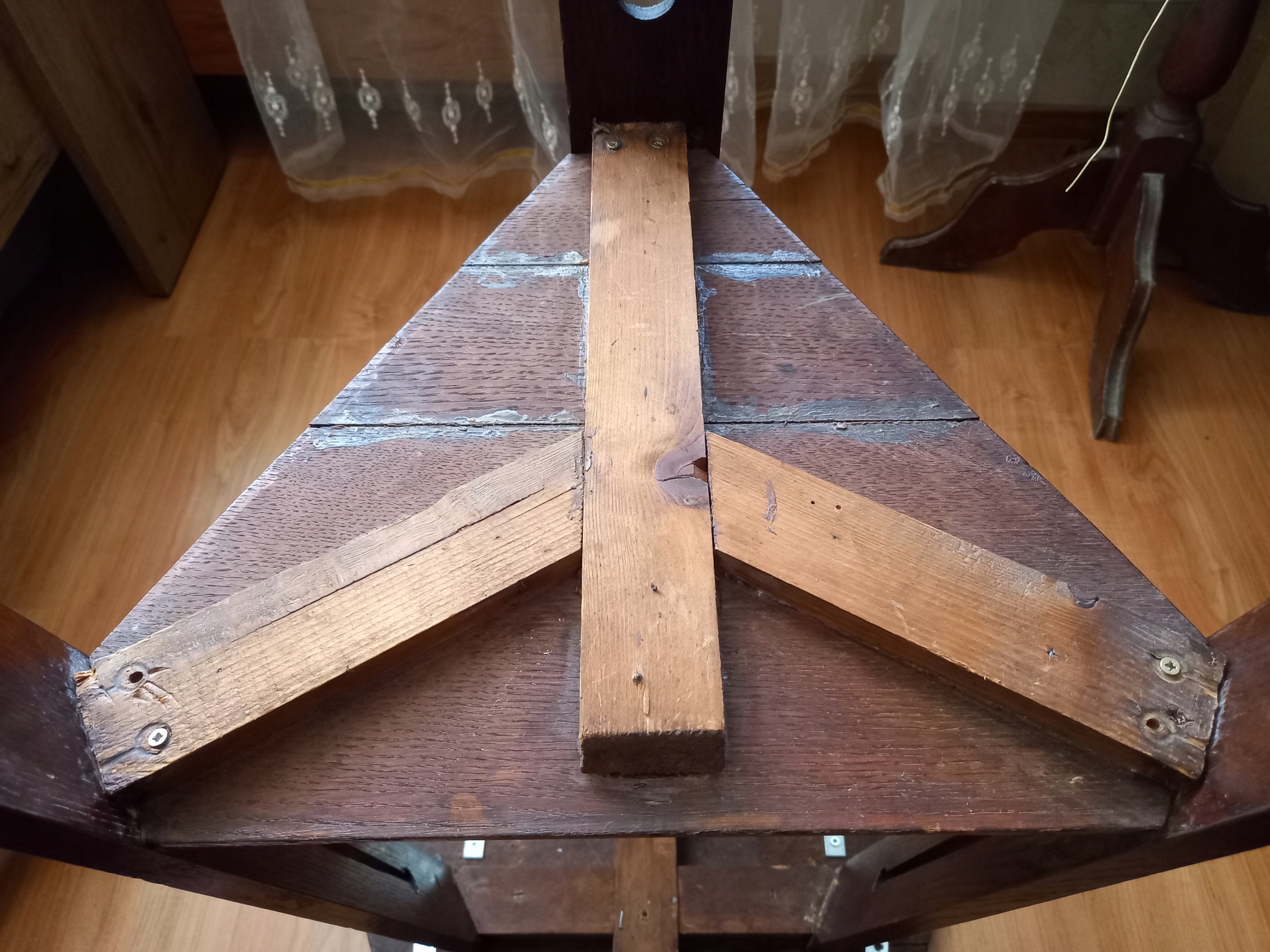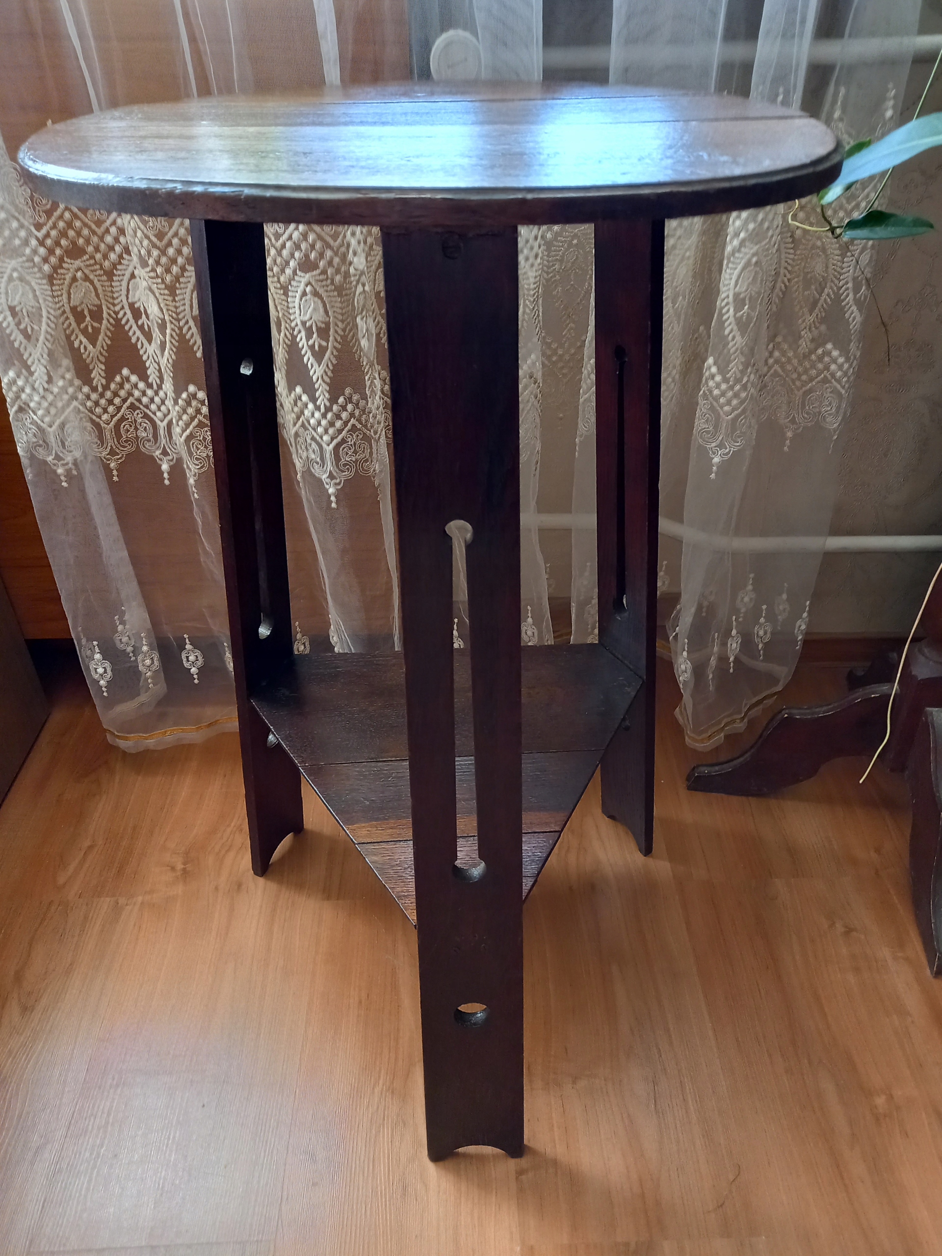 старинный деревянный стол, довоенная подставка для цветов