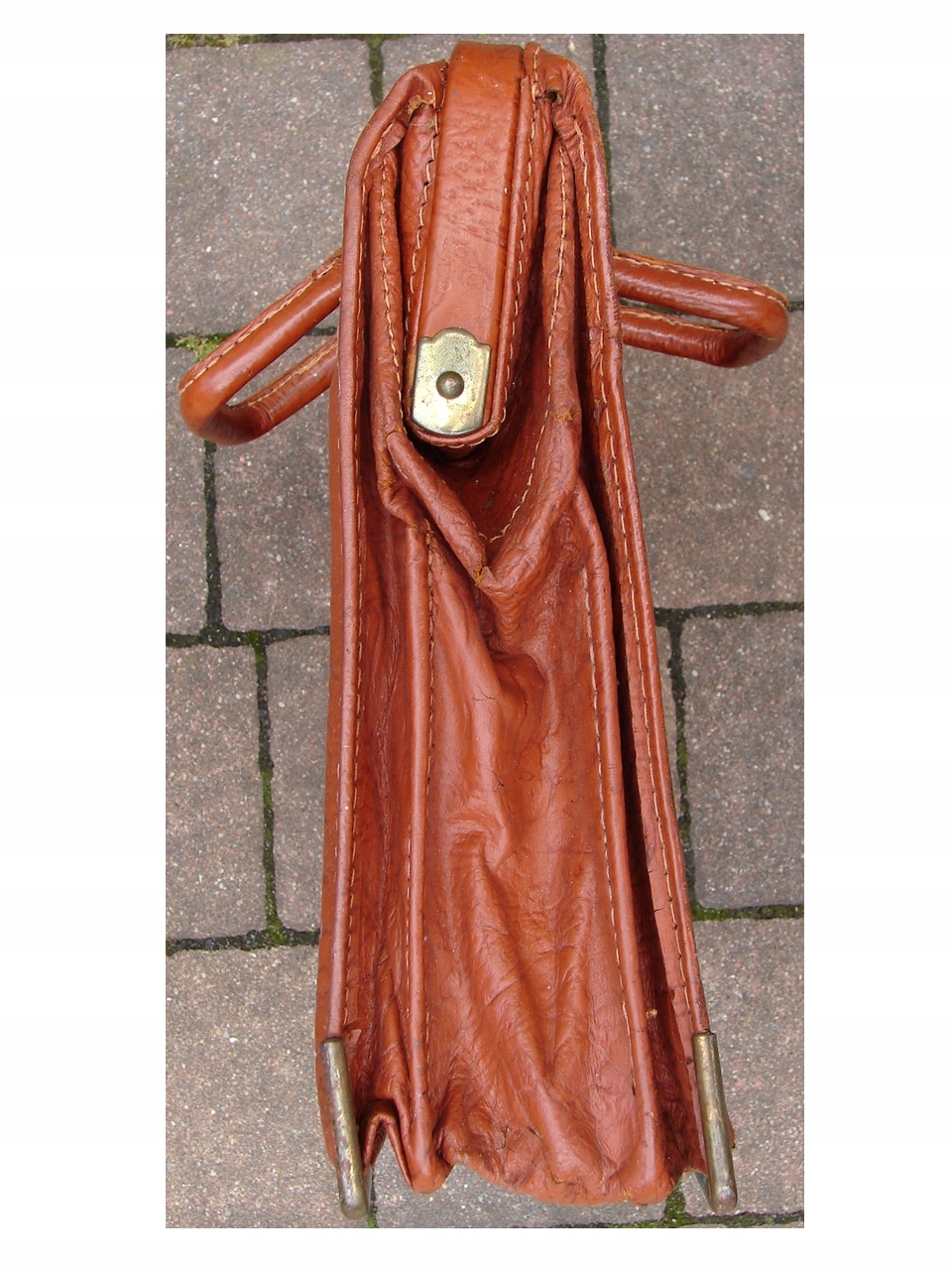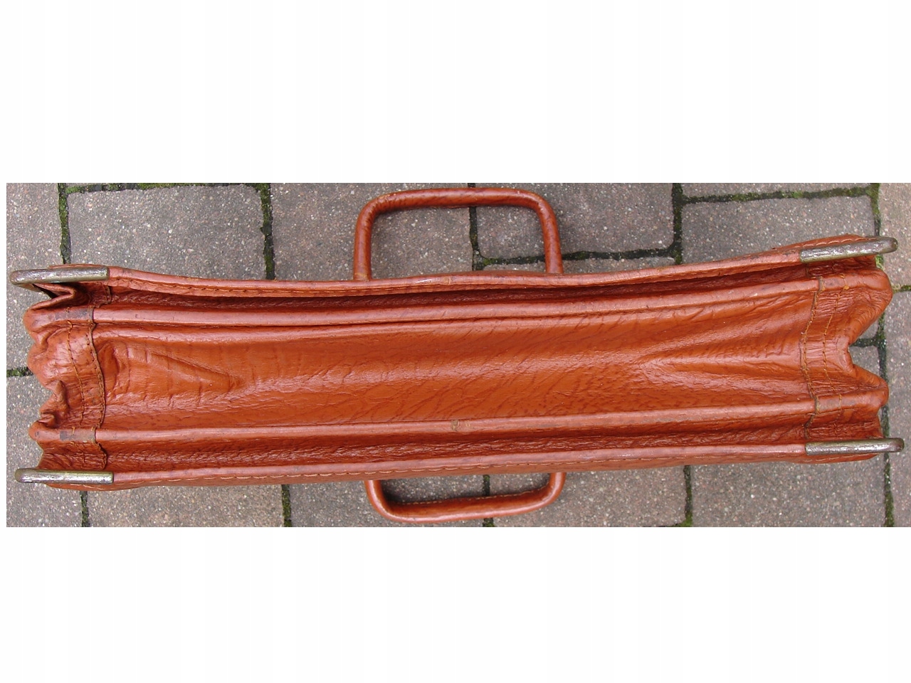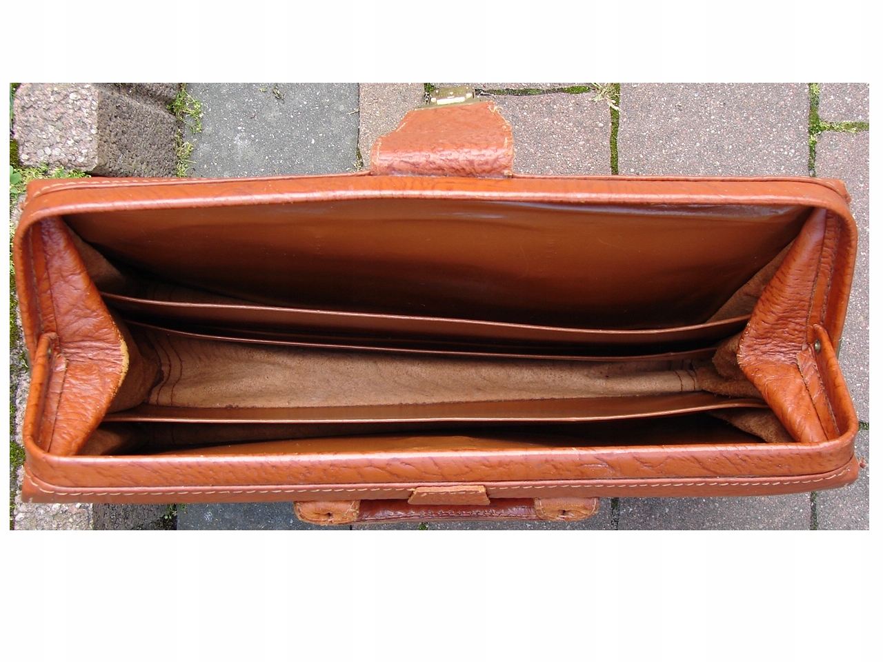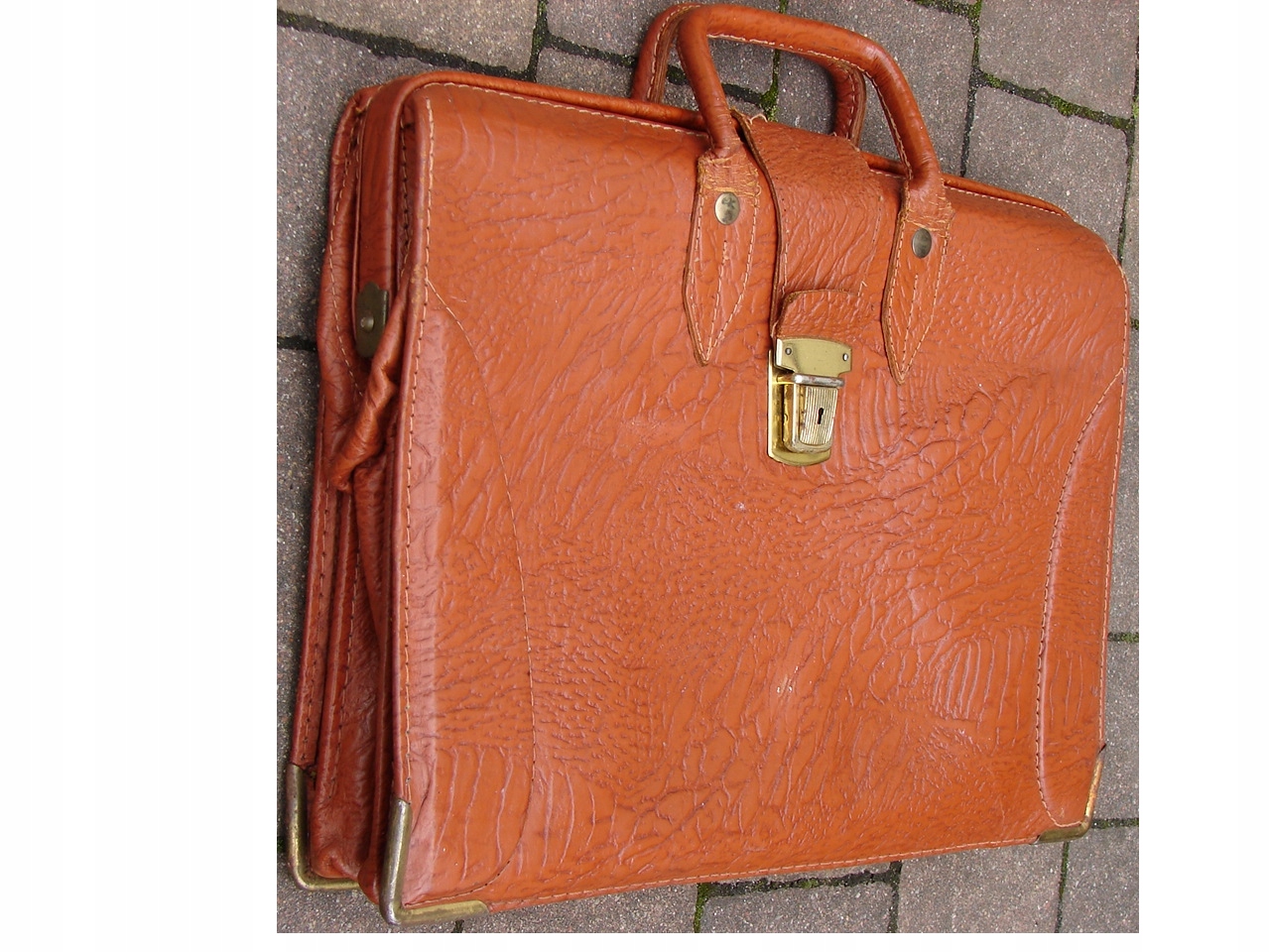 Винтажная старая немецкая сумка - портфель из натуральной кожи во внутренней части, портфель, покрытый искусственной отделкой на основе металлических фитингов, похожей на кожа.