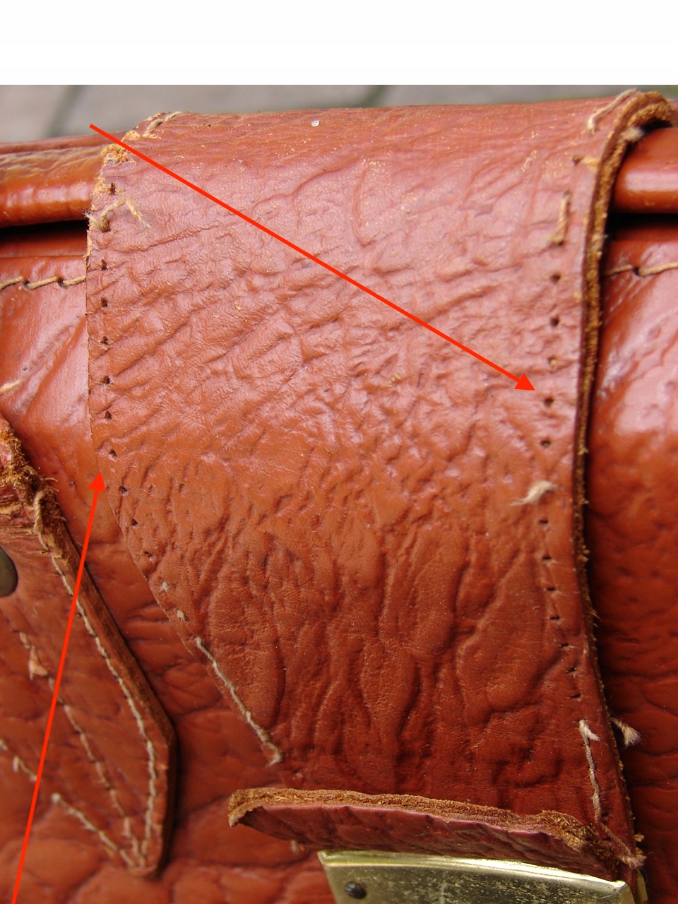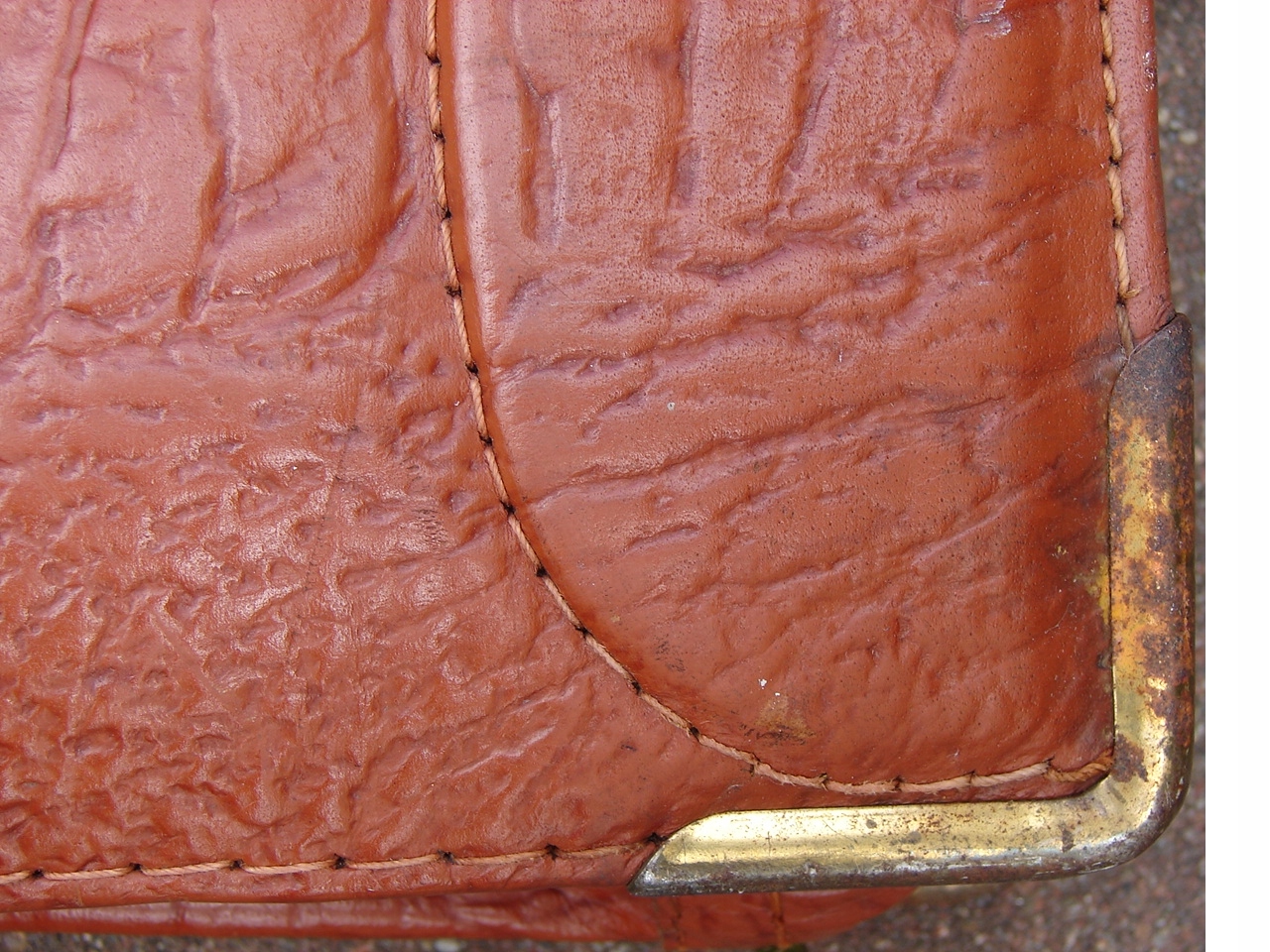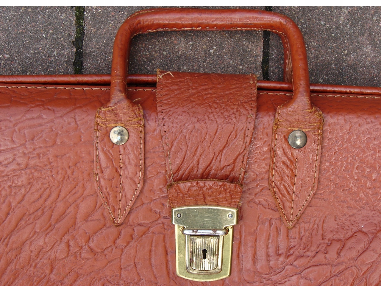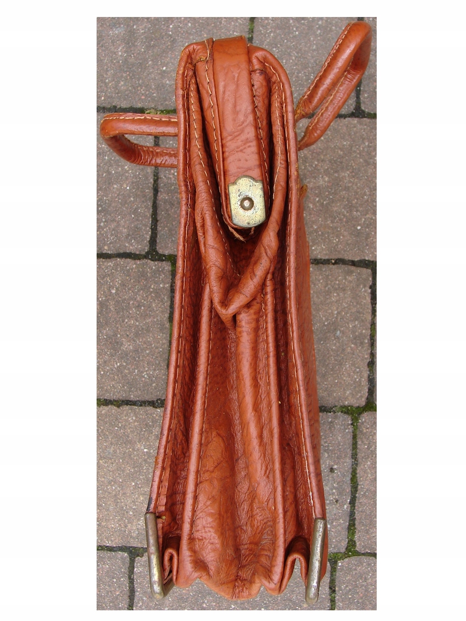 Винтажная старая немецкая сумка - портфель из натуральной кожи во внутренней части, портфель, покрытый искусственной отделкой на основе металлических фитингов, похожей на кожа.