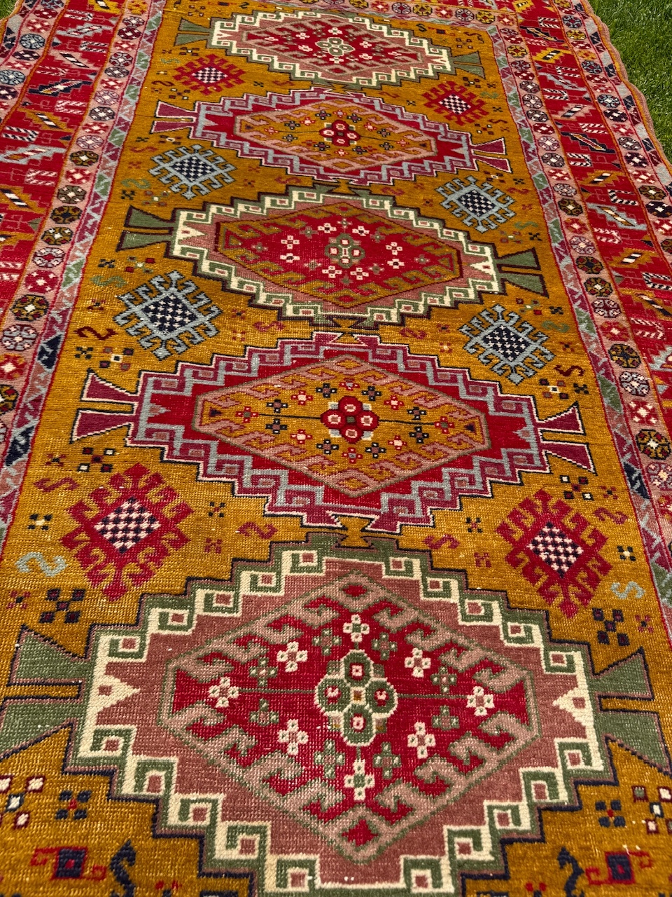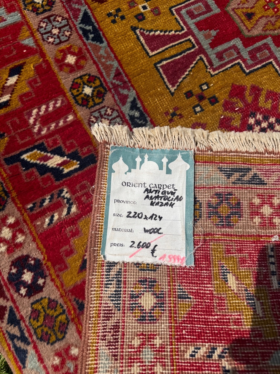 Субъект: Кавказская ковер -рука -Woven. Оригинальный восточный турецкий Казак. По запросу есть тег под ковром + бумажным сертификатом. В галерее, до скидки, это стоило 2600 евро или около 11 000 человек. уникален из -за его шаблона. Это очень высокий коврик.