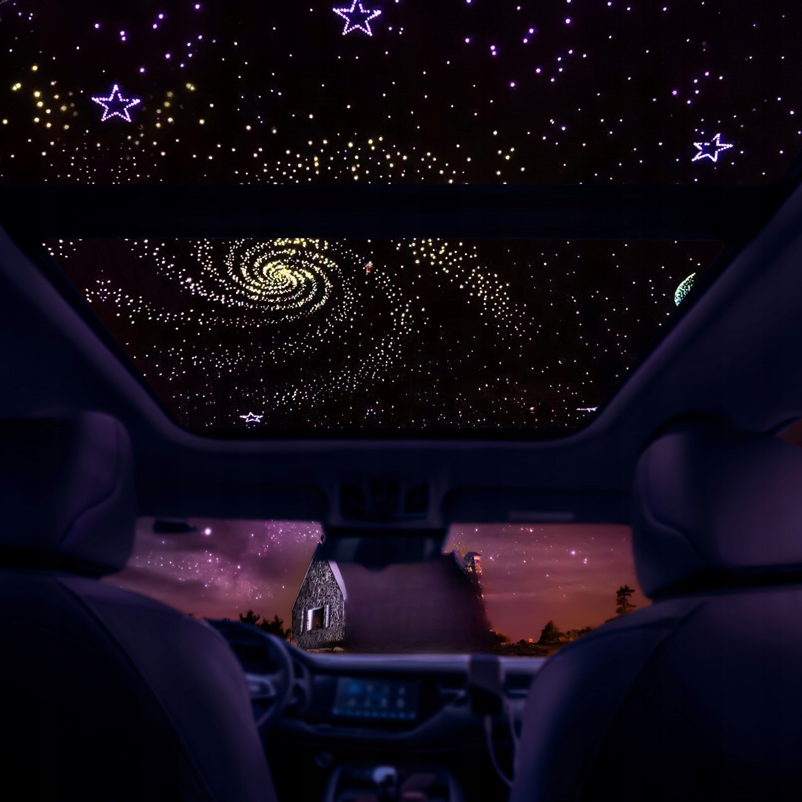 Добавьте волшебный эффект своему автомобилю с помощью комплекта освещения крыши автомобиля — системы оптоволоконного проектора. Этот комплект идеально подходит для автолюбителей, роскошных обновлений или уникальных праздничных подарков. Он добавит сверкающий звездный свет, динамические метеоритные эффекты и настраиваемые цвета на обшивку крыши - всем этим можно легко управлять с помощью пульта дистанционного управления, приложения или голоса.